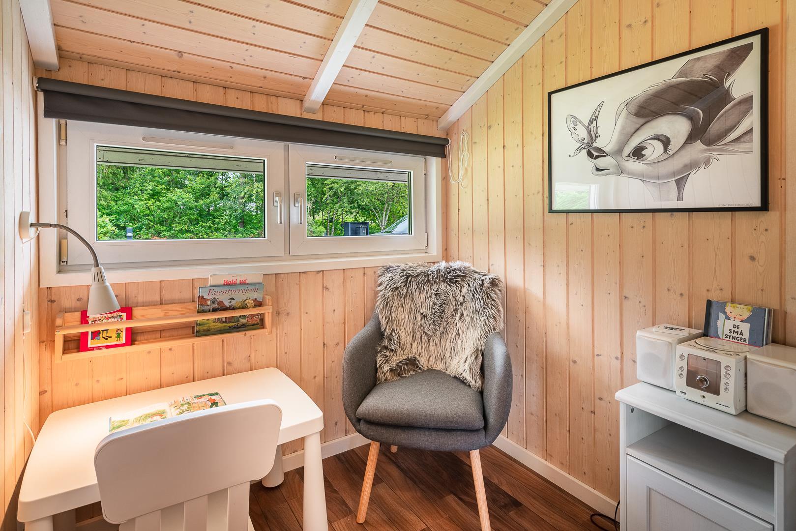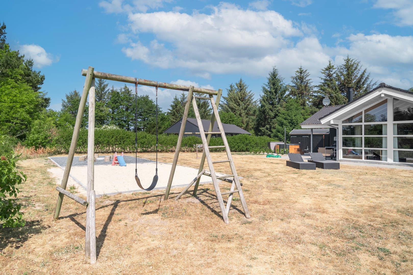 Børnene kan more sig med gynge og sandkasse, og der er god plads på grunden til leg og boldspil.