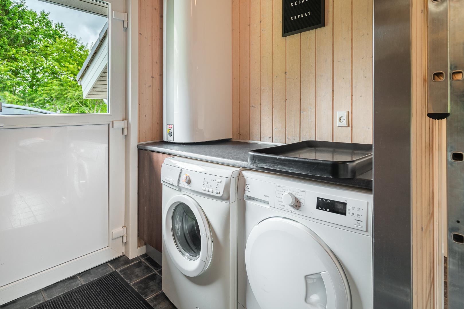 Praktiske faciliteter som vaskemaskine, tørretumbler, energibesparende varmepumpe samt inkluderet vandforbrug bidrager til en bekvem og ubekymret ferie.