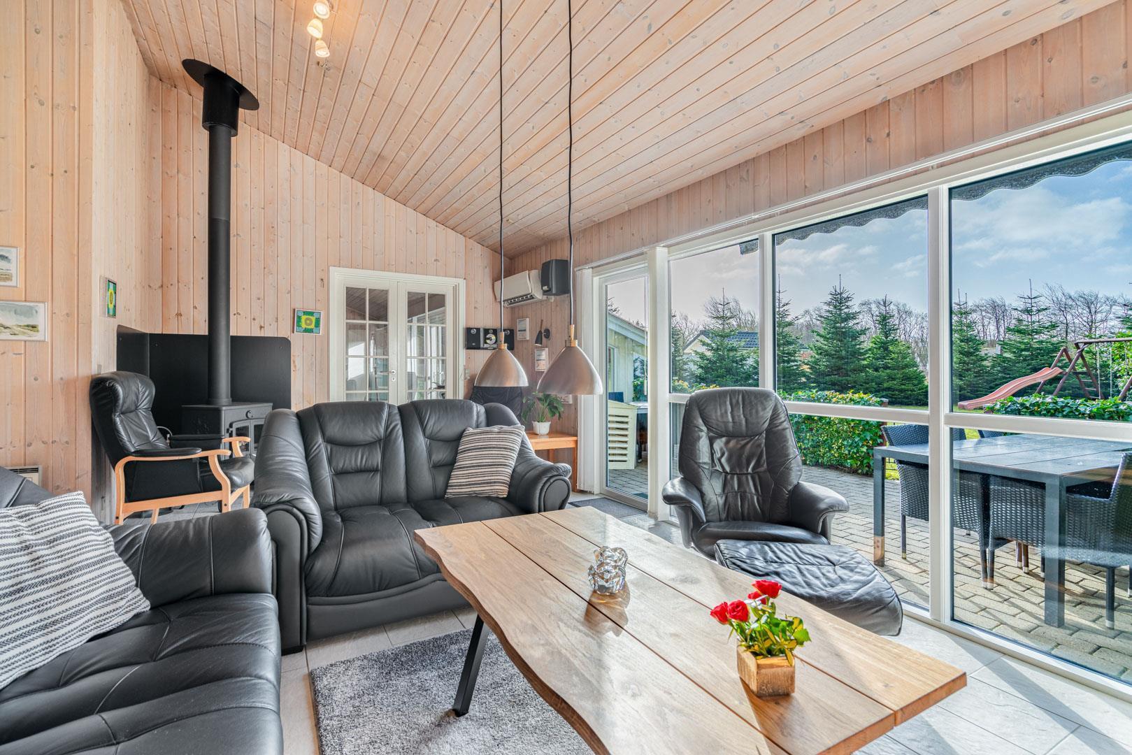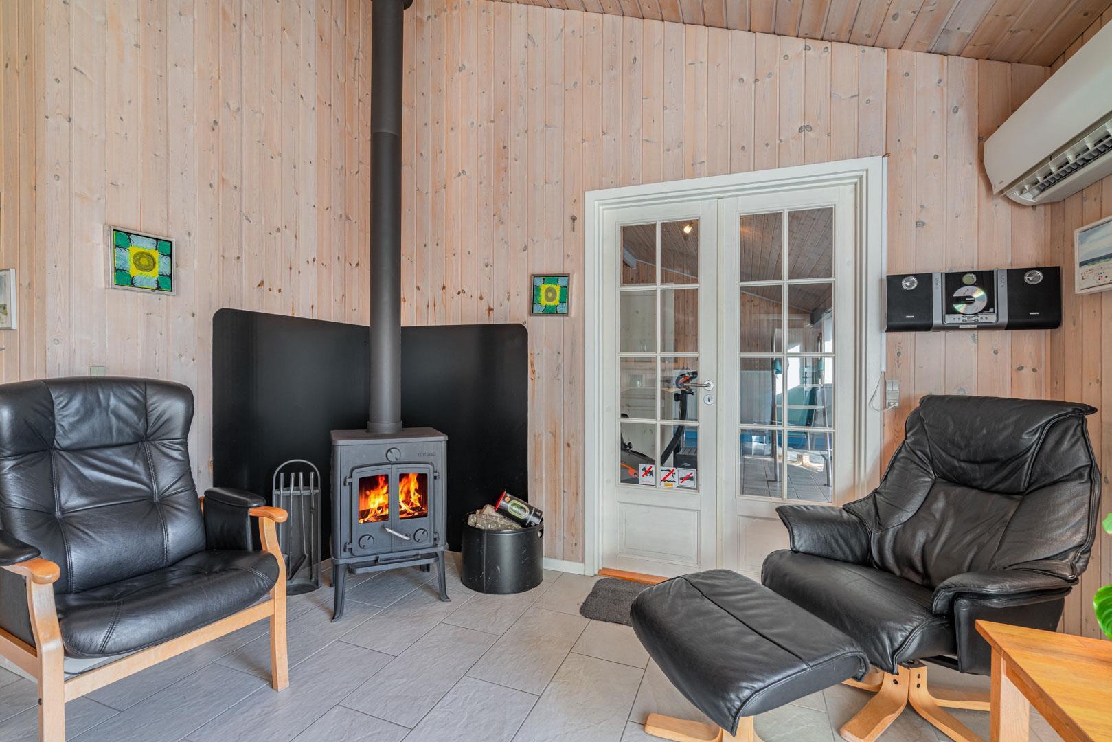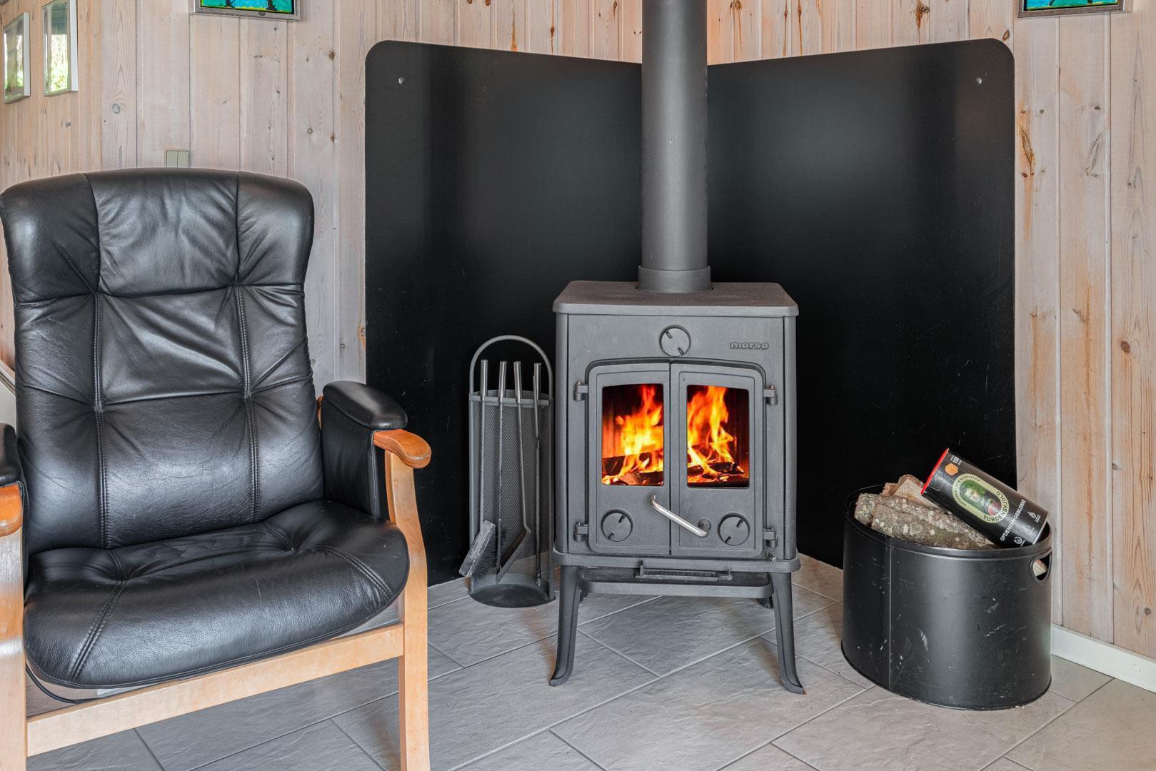Den lyse og åbne stue med gulvvarme indbyder til afslapning. Tænd op i brændeovnen, se en film via Chromecast, og nyd den hyggelige atmosfære.