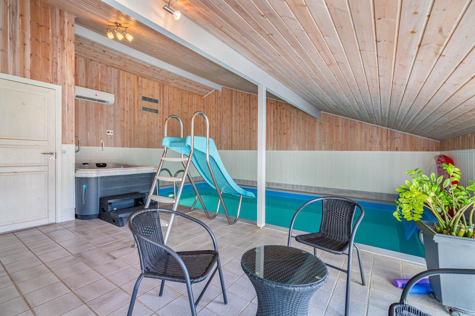 Efter en dag ved stranden kan I slappe af i spaen, tage en tur i saunaen eller svømme i den private pool med modstrømsanlæg og rutsjebane – et hit for både børn og voksne. Vandforbruget er allerede inkluderet i lejen.