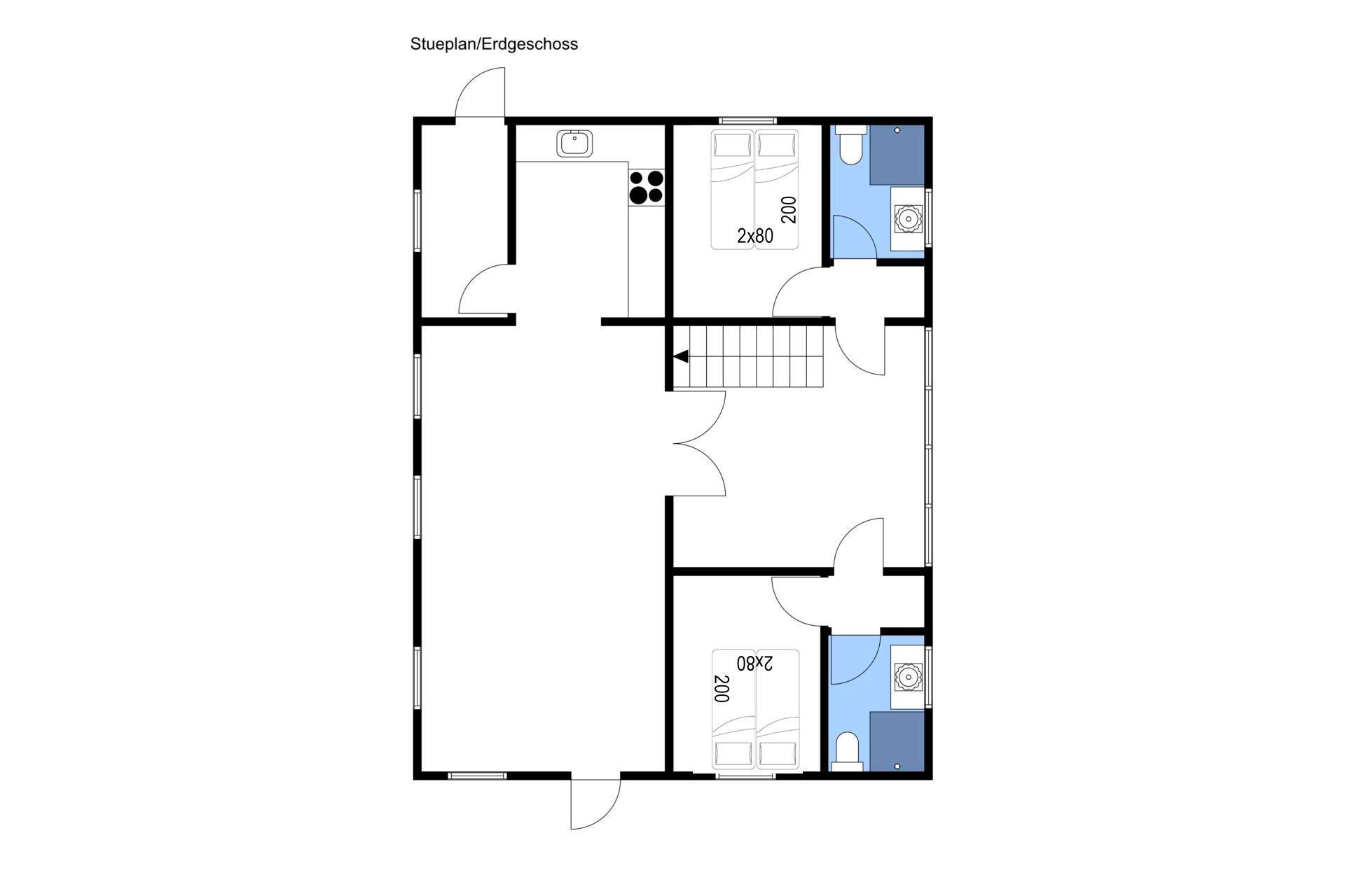 Sengestørrelse: 6 dobbeltsenge med 2 madrasser 80 x 200 cm.