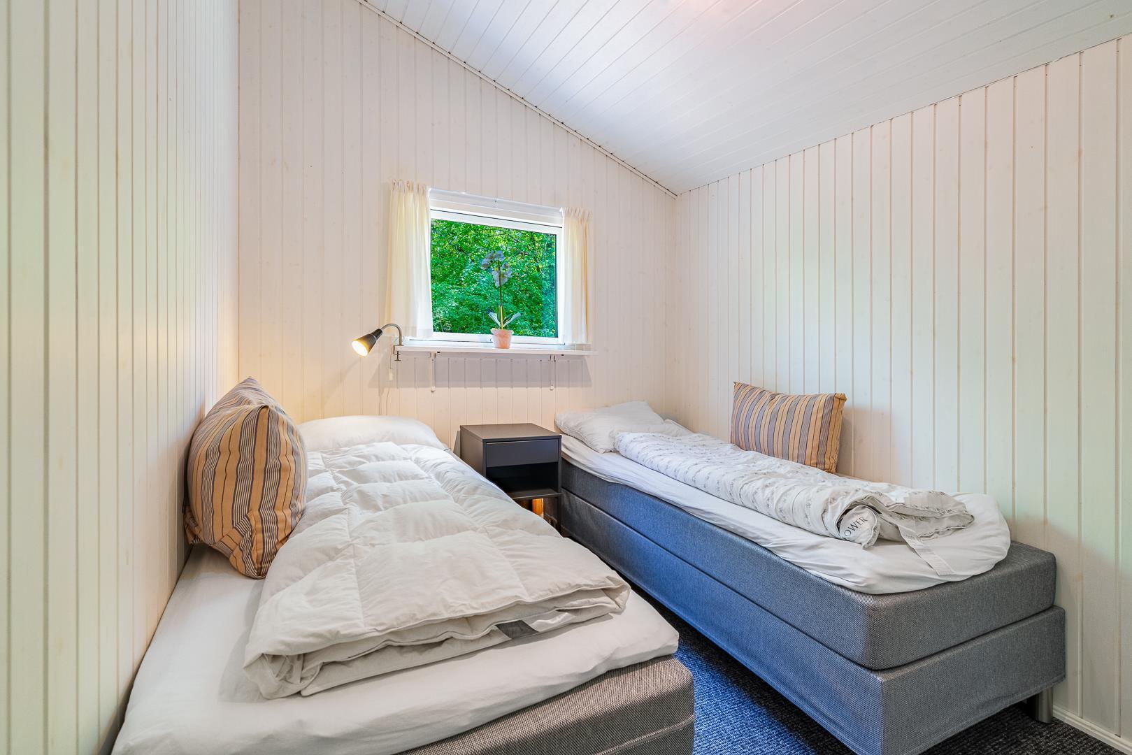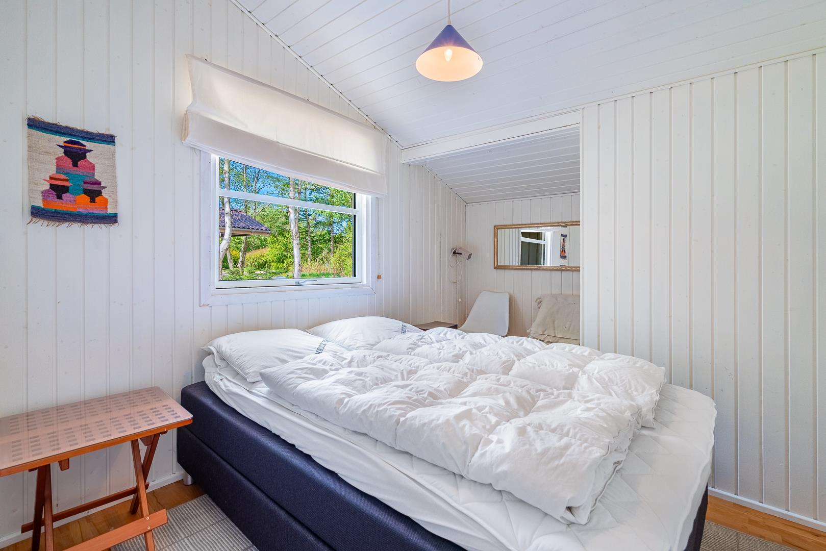 Sommerhuset råder over fire lyse soveværelser – to med dobbeltsenge og to med enkeltsenge. Her kan I sove godt og vågne udhvilede til endnu en dejlig feriedag i Jegum.