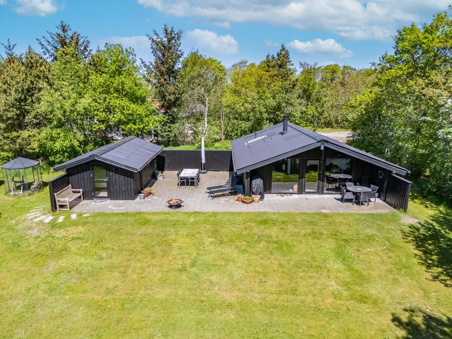 Den overdækkede terrasse indbyder til hyggelige stunder – uanset om det er morgenkaffen i solen eller aftensmaden i ly for vinden. Terrassen bliver hurtigt et naturligt samlingspunkt under ferien.