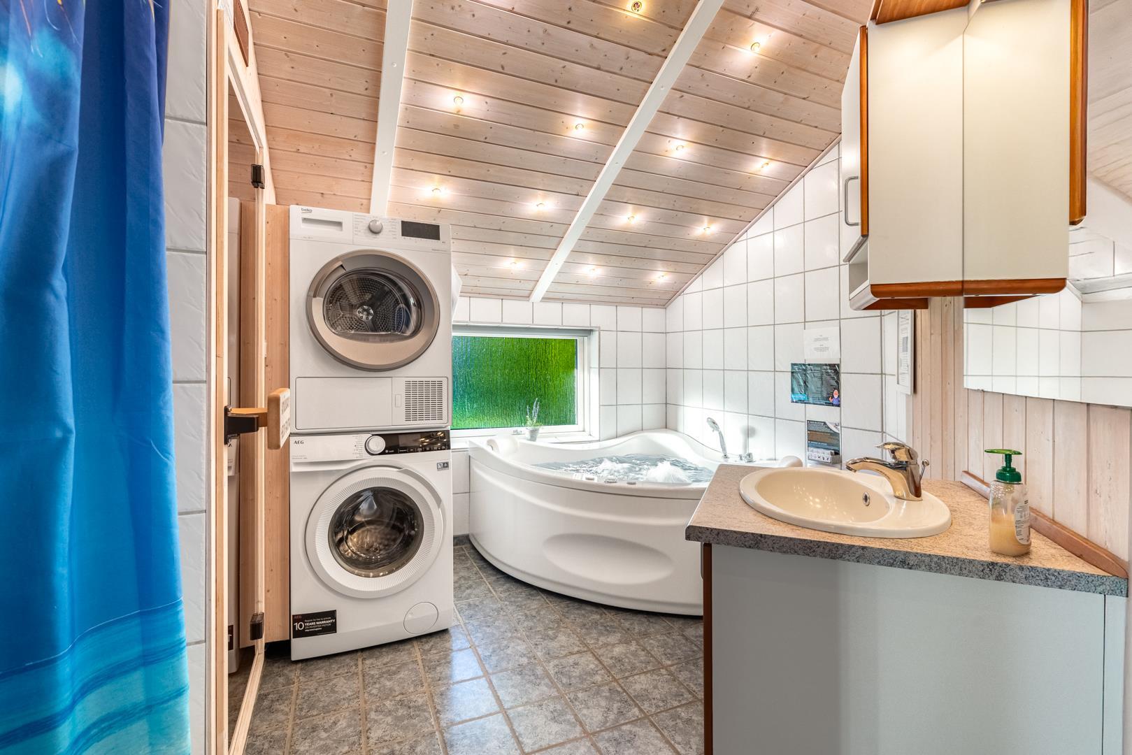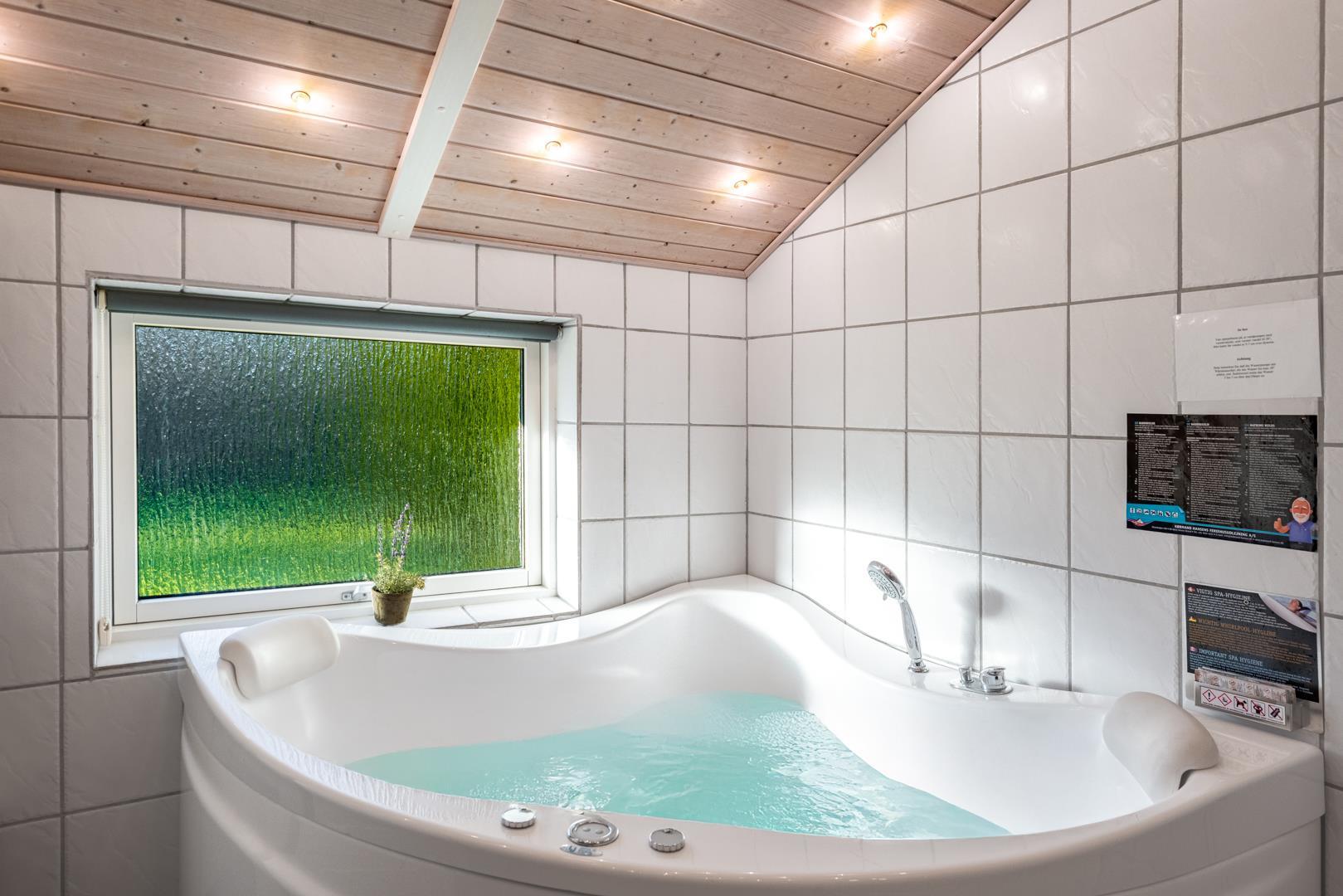 Velholdt feriehus med spa, sauna og stor naturgrund i Jegum Ferieland nær indkøb og aktivitetscenter.
