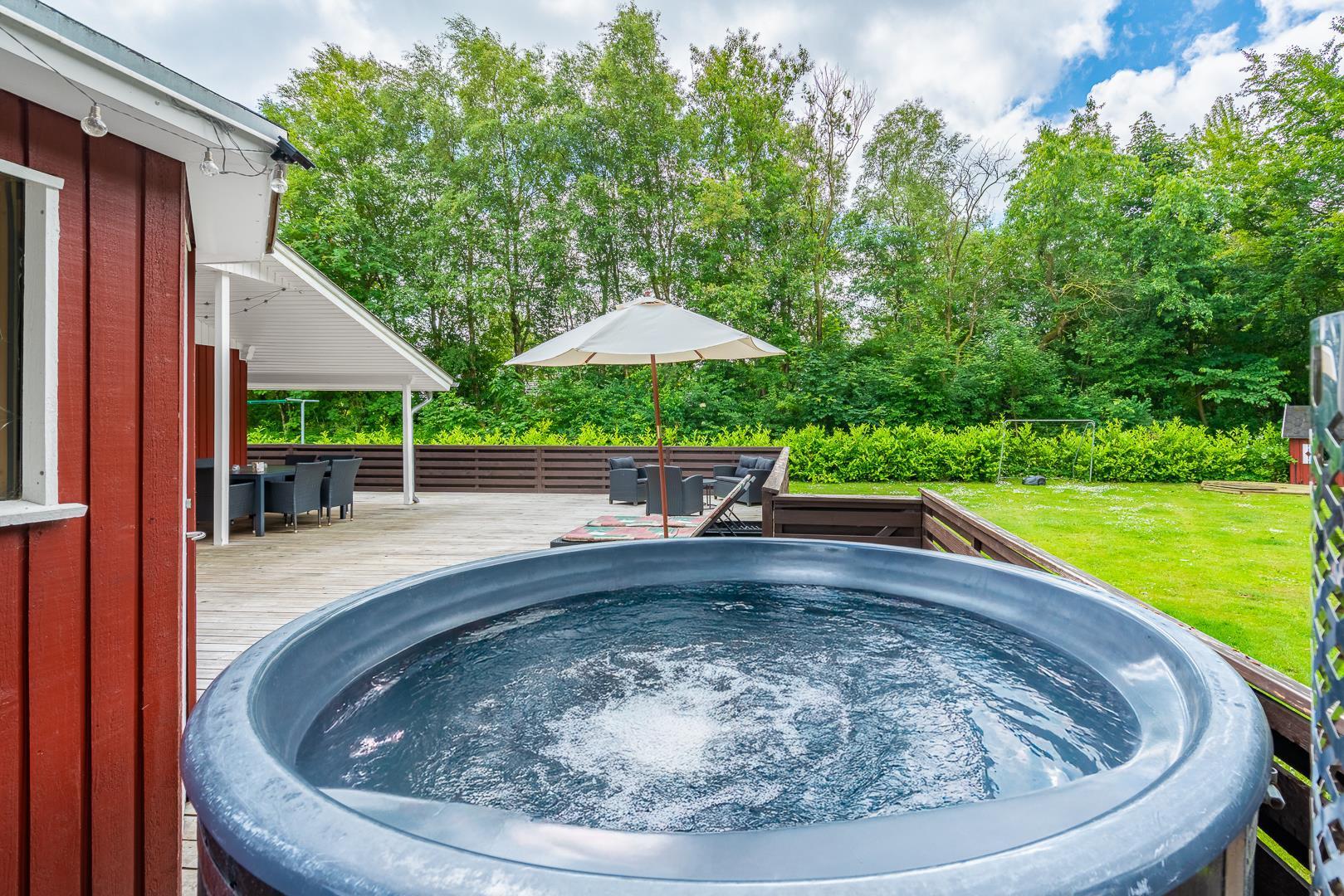 Sommerhus med ude wellness faciliteter som vildmarksspa og sauna beliggende på adressen Nøddehaven 10, Jegum Ferieland. Sommerhuset fremstår i lyse farver, som er med til at give en god atmosfære omkring husets midtpunkt køkken/alrummet. Her er det opsat brændeovn samt varmepumpe og der er direkte udgang til stor delvis overdækket indhegnet terrasse. Sommerhuset er beliggende på en stor ugenert naturgrund med gode aktivitetsmuligheder for de mindste og som trygt kan lege omkring huset, mens forældrene hygger sig på sommerhusets store ugenerte terrasse.
