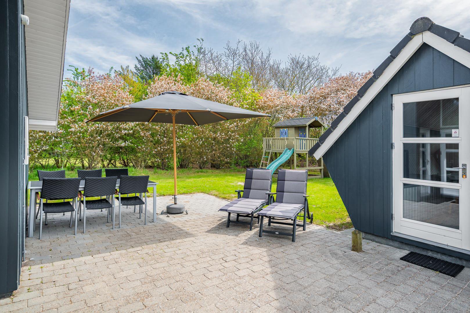 Brombærvangen 15 danner de ideelle rammer om en afslappende ferie med masser af plads, komfort og natur – et sted, I hurtigt vil føle jer hjemme.