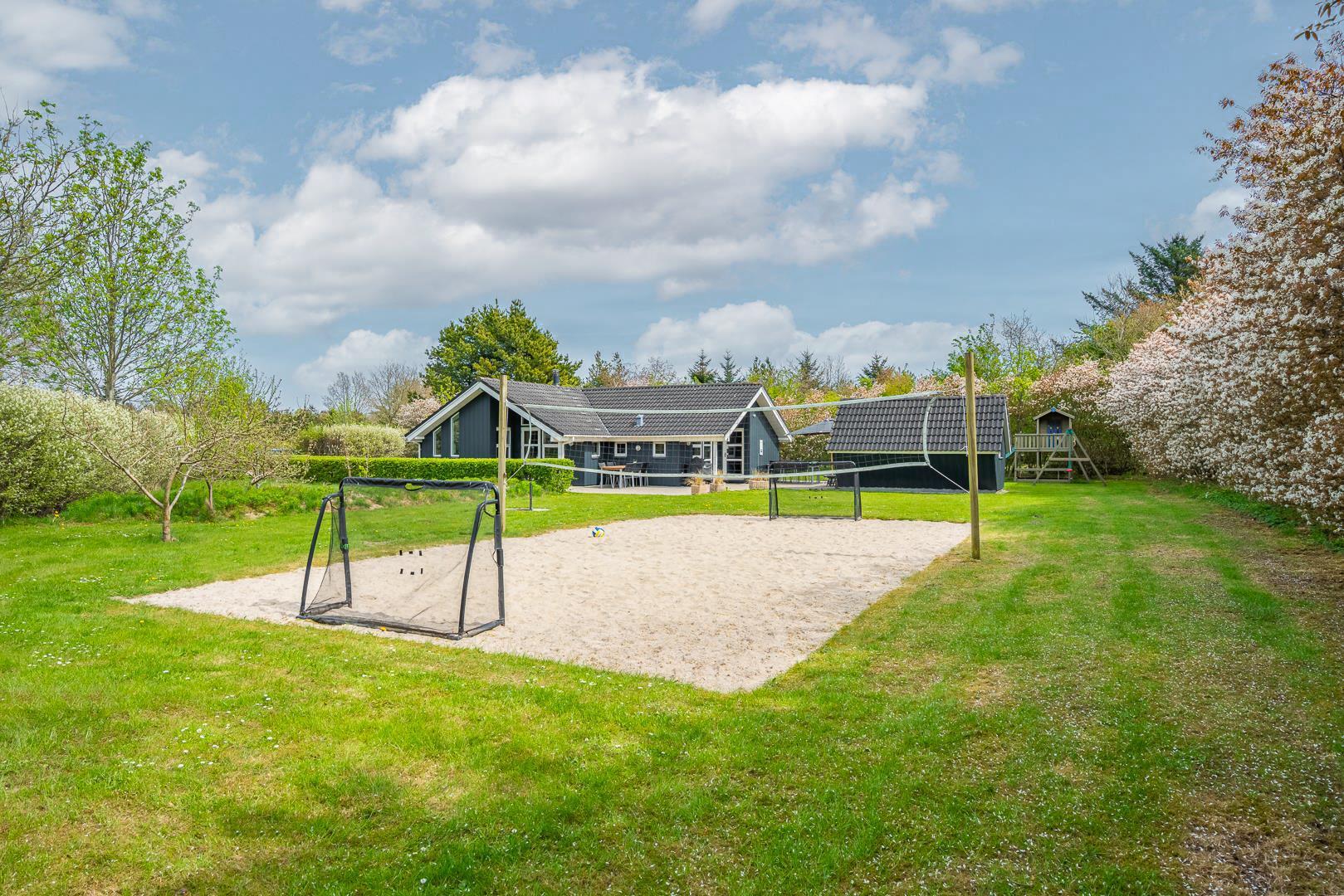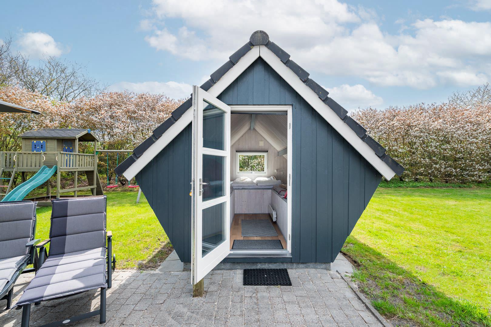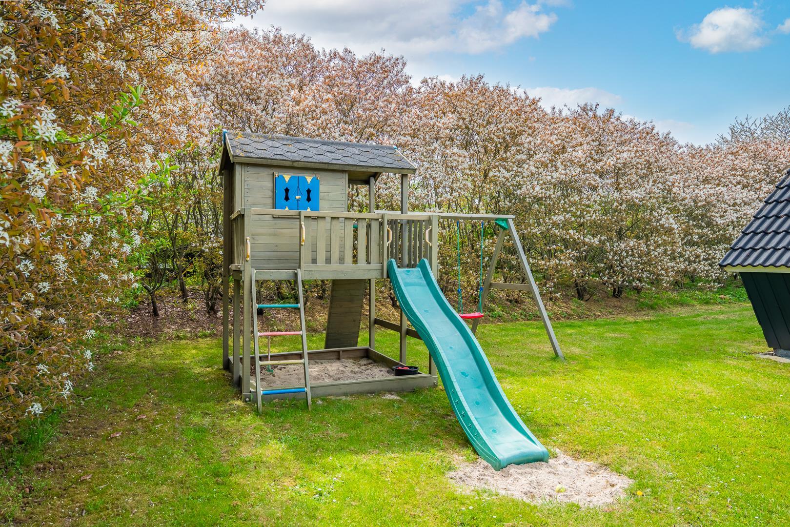 Op til to hunde er meget velkomne (flere efter aftale), og den store naturgrund giver masser af plads til leg og bevægelse. De yngste feriegæster kan glæde sig over både sandkasse og gynge – her er der tænkt på hele familien.