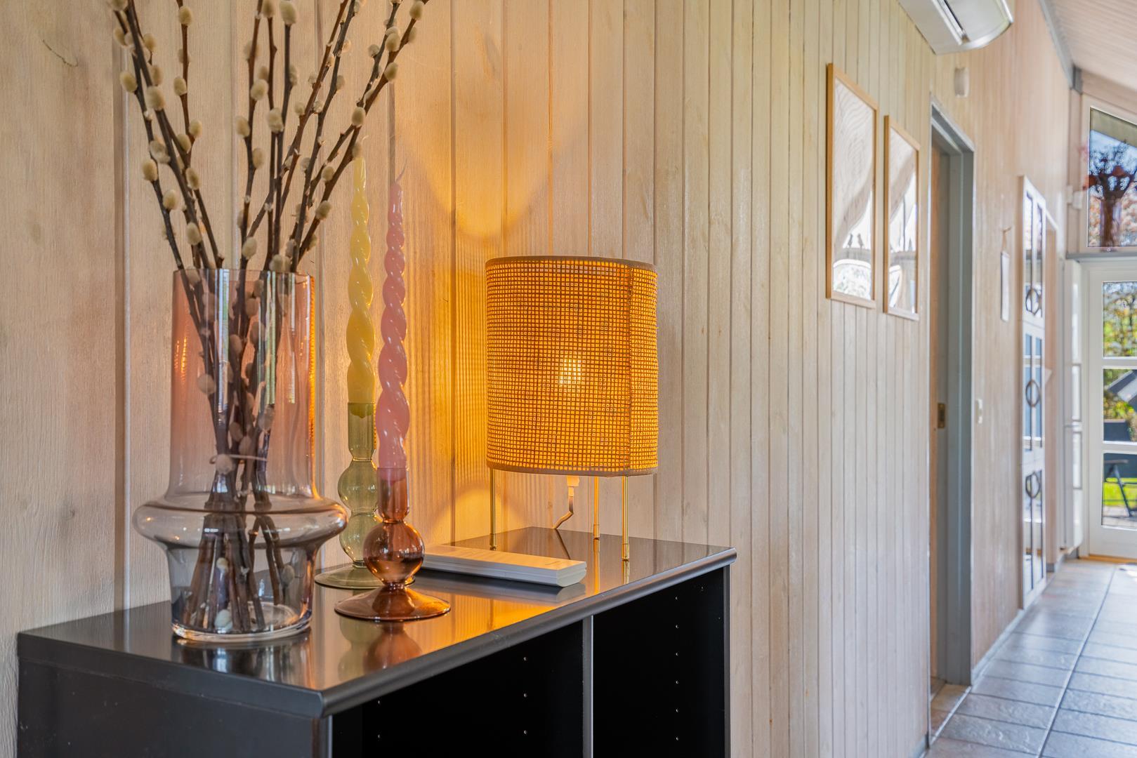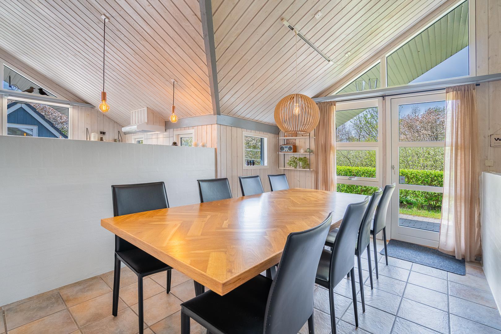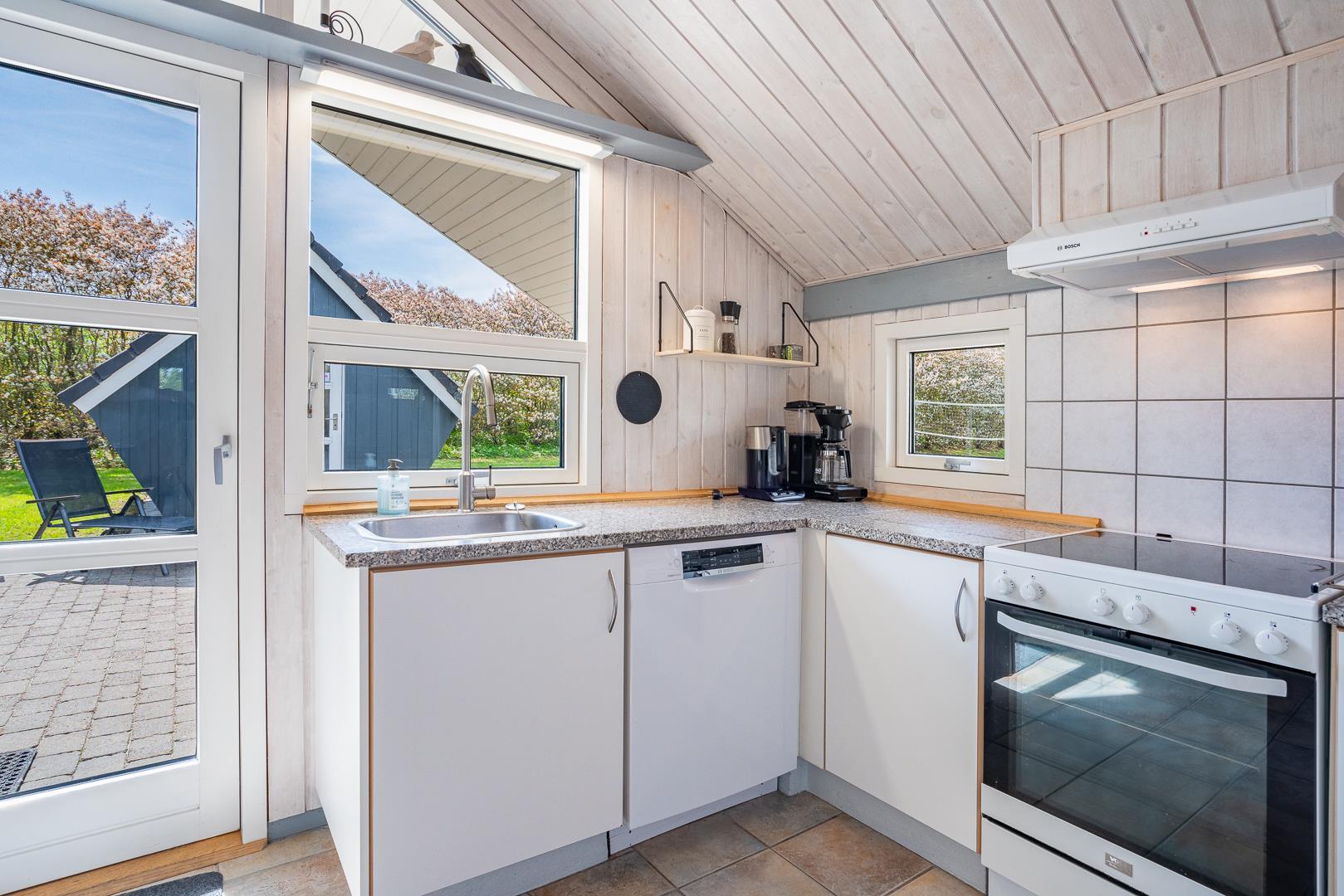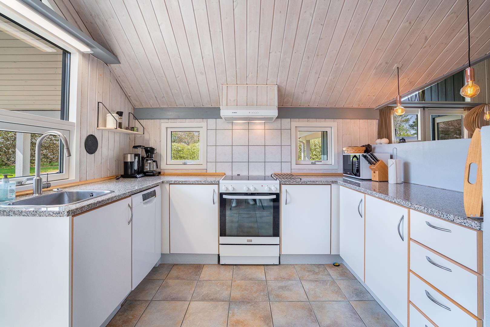 Husets naturlige samlingspunkt er den indbydende opholdsstue med brændeovn og gulvvarme, som skaber en behagelig varme – også på køligere dage. Det åbne køkken er ligeledes udstyret med gulvvarme, opvaskemaskine og alt, hvad I behøver til fælles madlavning. Her er der plads til nærvær, gode samtaler og lange, afslappede aftener.