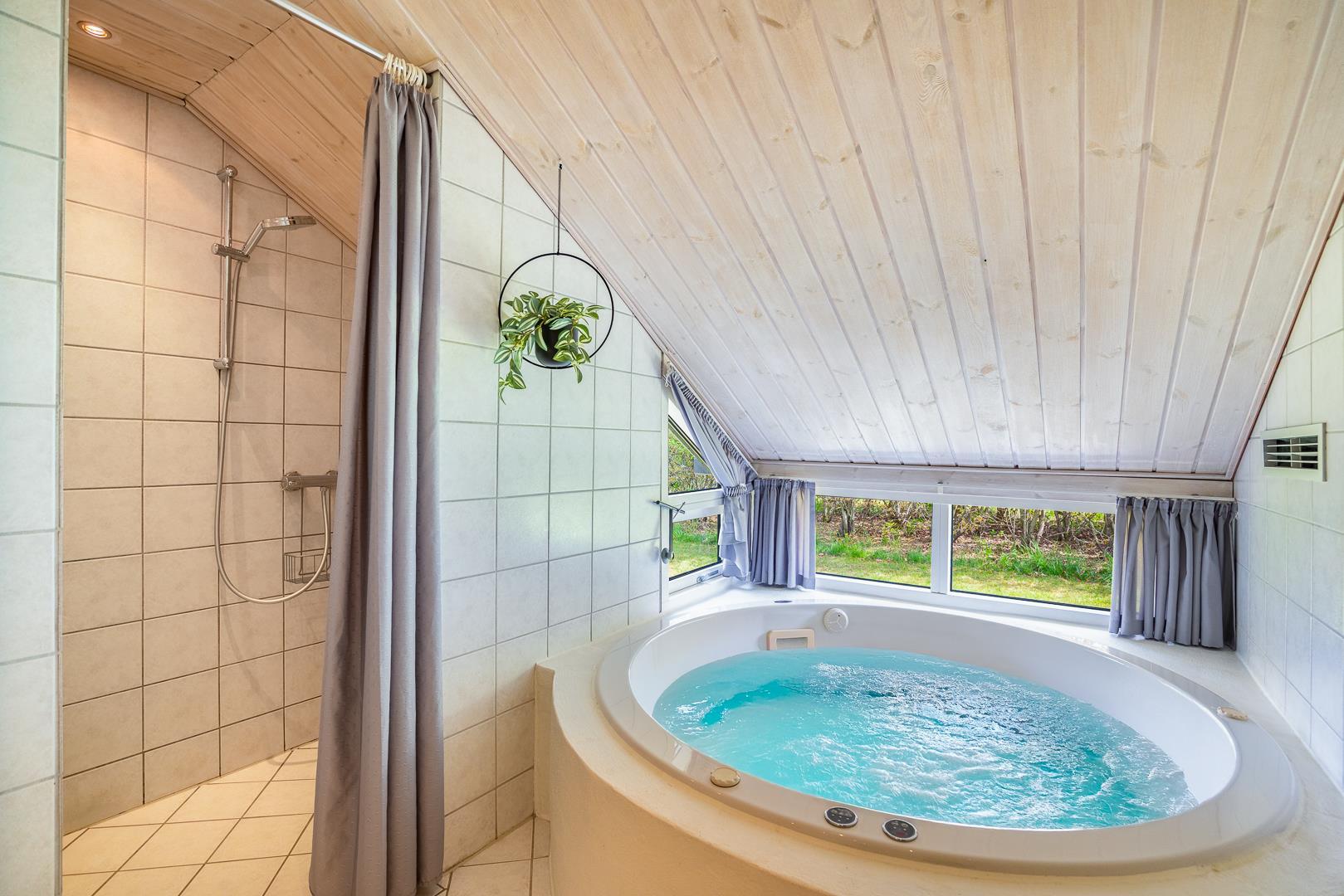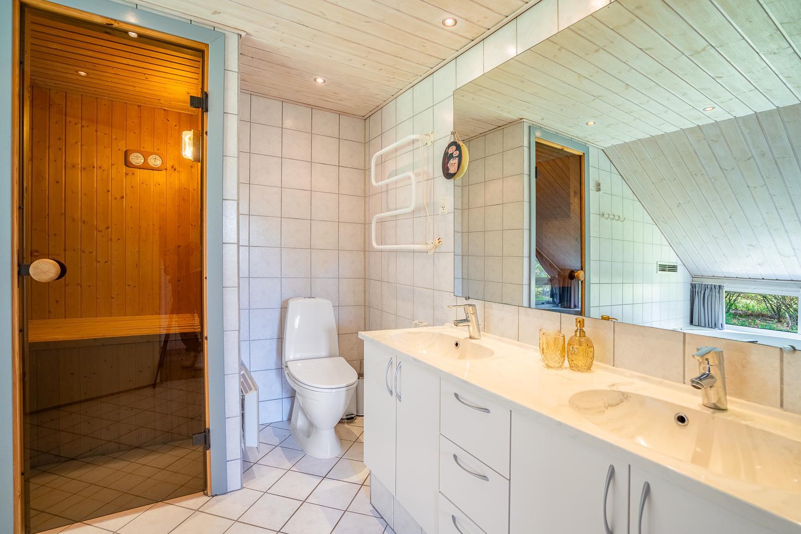 Sovepladserne er fordelt på tre soveværelser i hovedhuset samt et hyggeligt anneks, som især er populært blandt større børn og unge. På den måde får alle mulighed for både fællesskab og privatliv. De to moderne badeværelser byder på ekstra forkælelse – det ene med gulvvarme, sauna og spabad, hvor I kan slappe helt af og lade batterierne op.