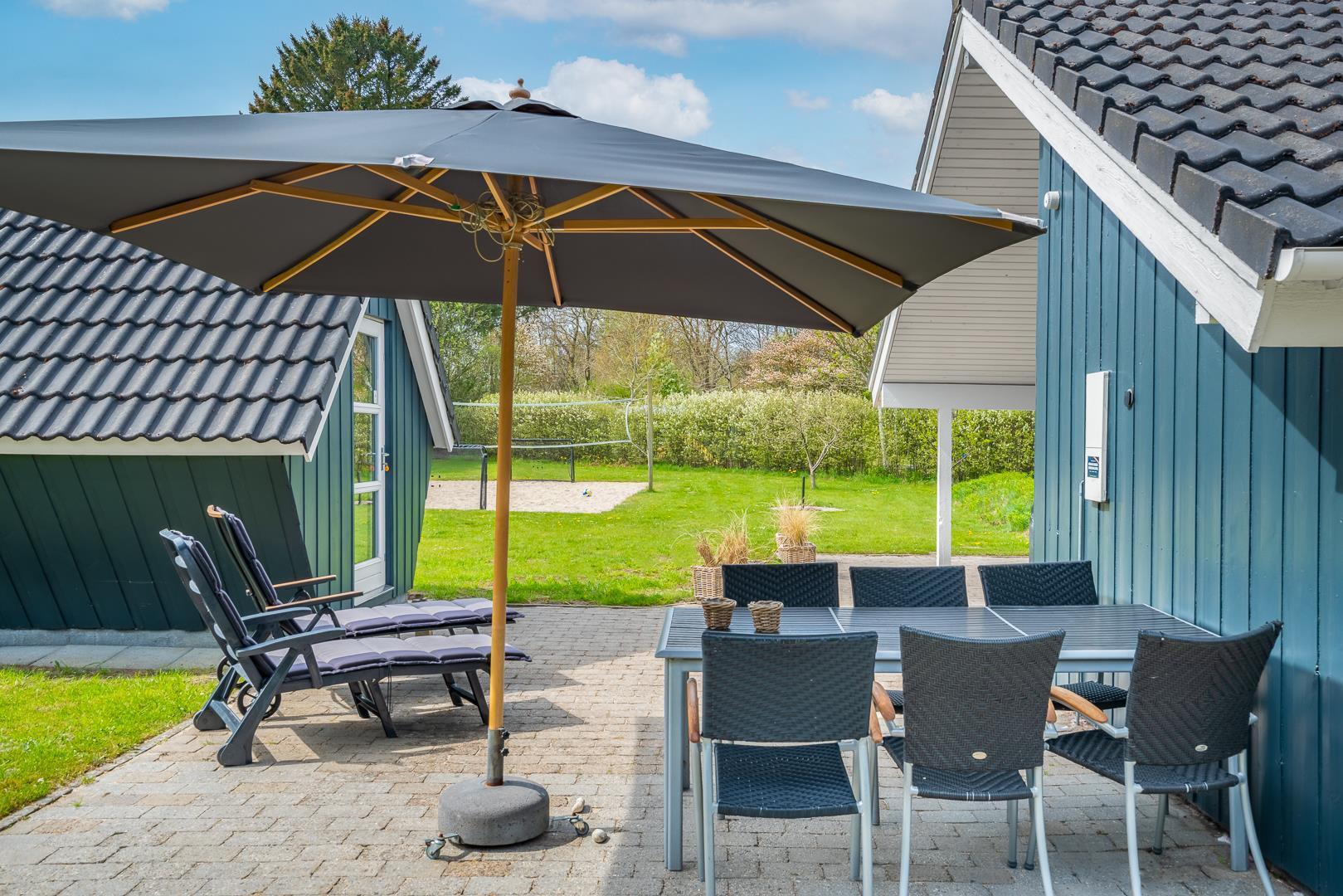Feriehuset har et stort og rummeligt køkken/alrum med gulvvarme og med direkte udgang til flere gode læ fulde og delvis overdækkede terrasser. Den hyggelige og børnevenlige fritliggende, store anneks med 2 enkelt senge er udstyret med ekstra tv samt playstation2.