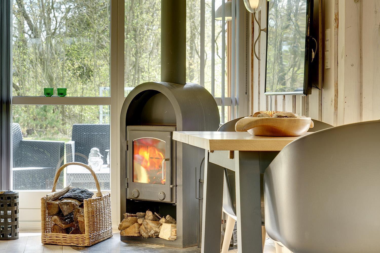 Det åbne køkken er veludstyret med opvaskemaskine, moderne køkkenredskaber og gulvvarme – så her er både funktionalitet og komfort. Ved spisebordet kan hele familien samles til hyggelige måltider eller brætspil efter en dag i naturen.