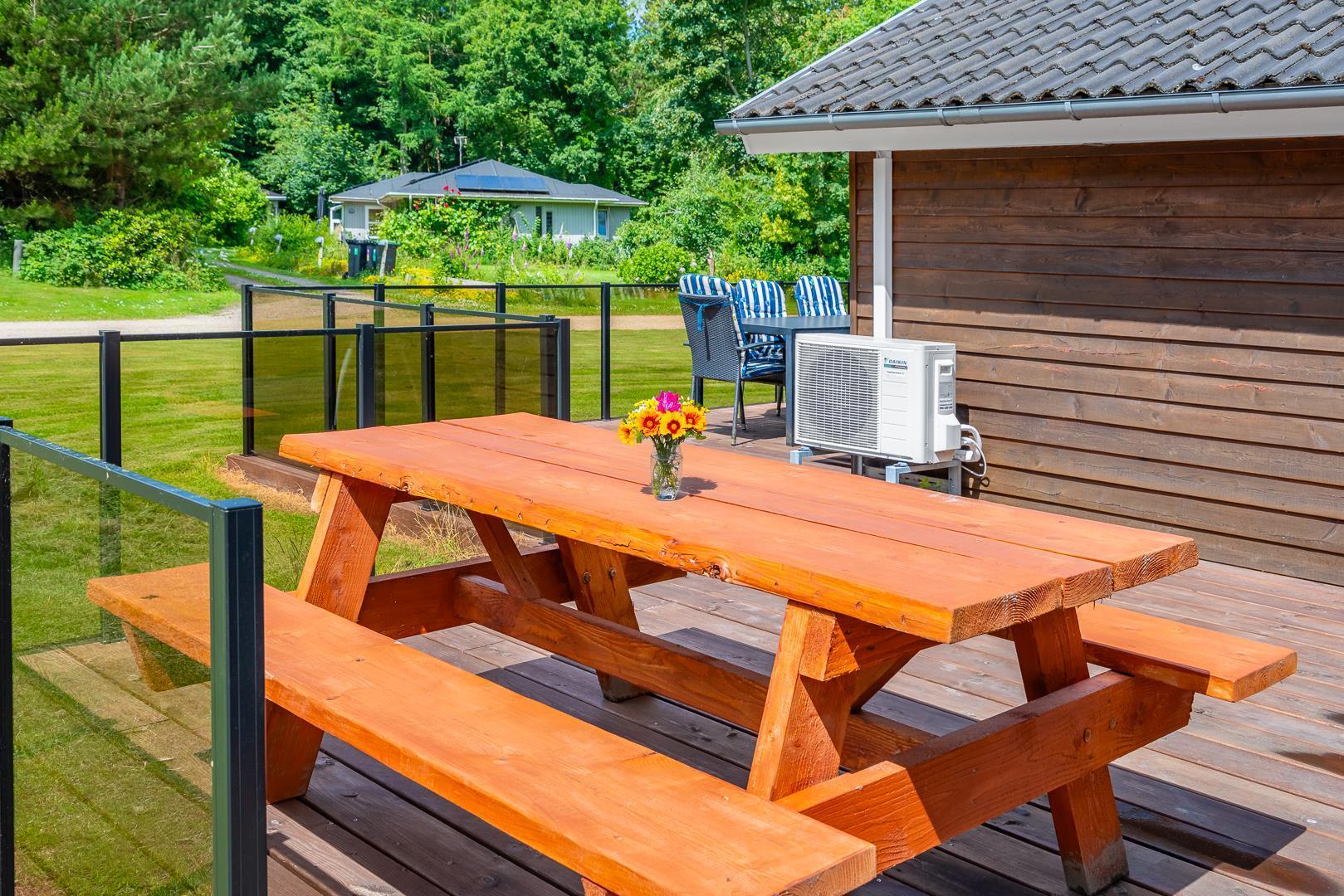 Der er desuden moderne faciliteter som internetadgang, brændeovn, varmepumpe og vaskemaskine, hvilket sikrer et behageligt ophold i naturskønne omgivelser tæt på indkøb.