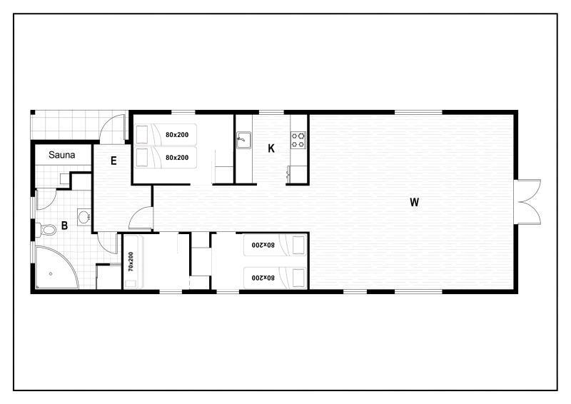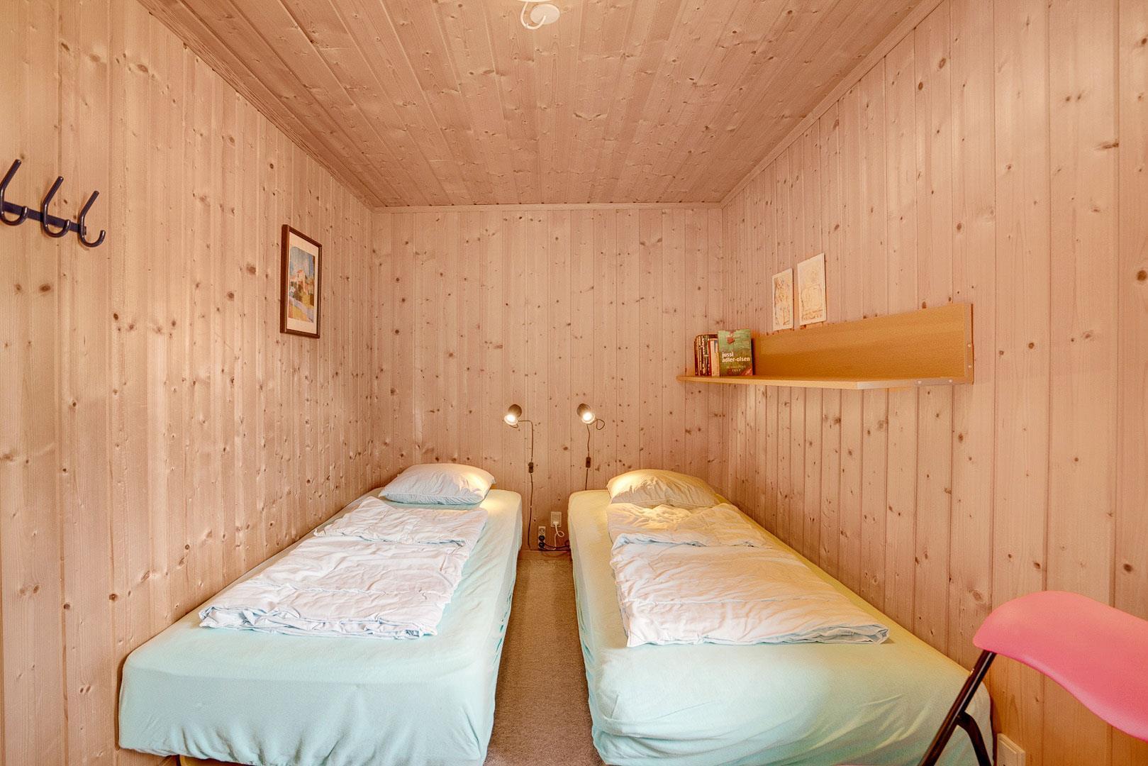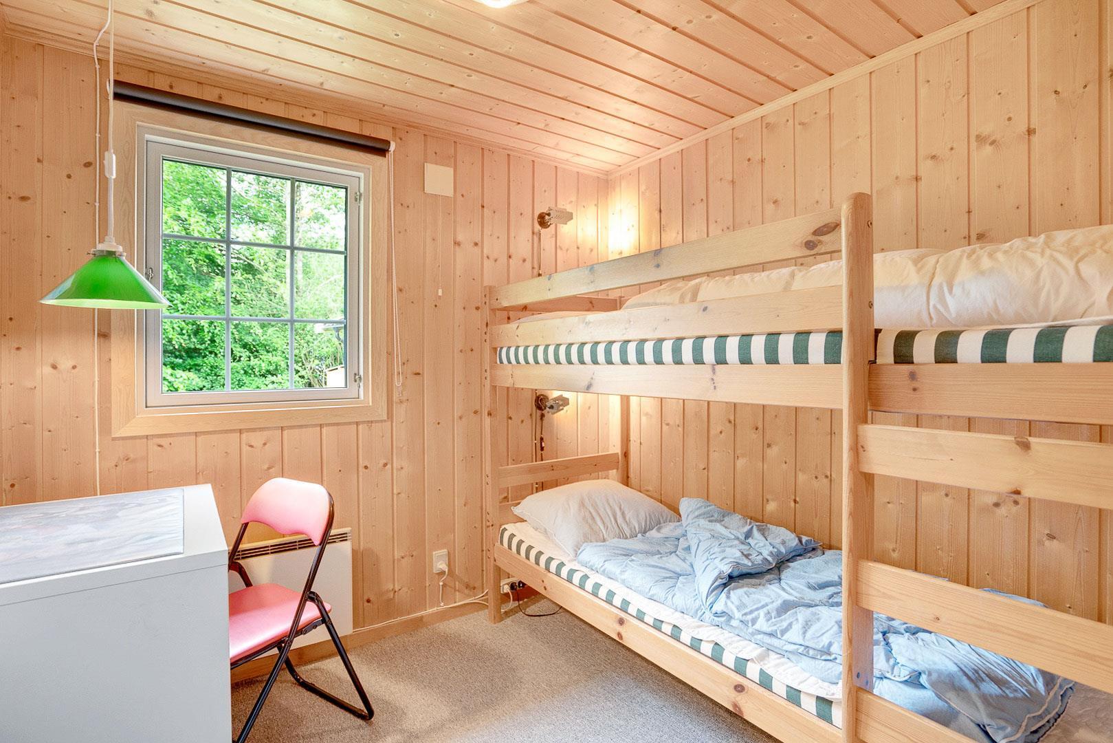 Sengestørrelse: 1 dobbeltseng med 2 madrasser 80 x 200 cm + 2 enkeltsenge 80 x 200 cm + 1 køjeseng 70 x 200 cm.