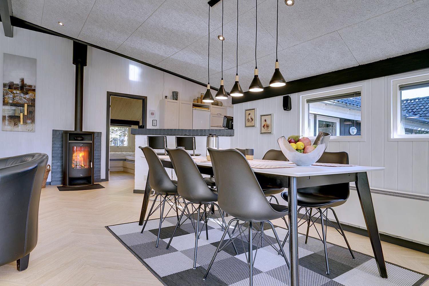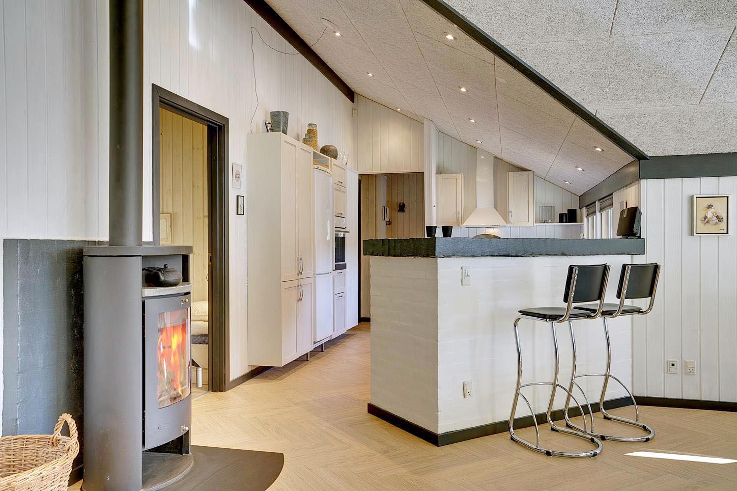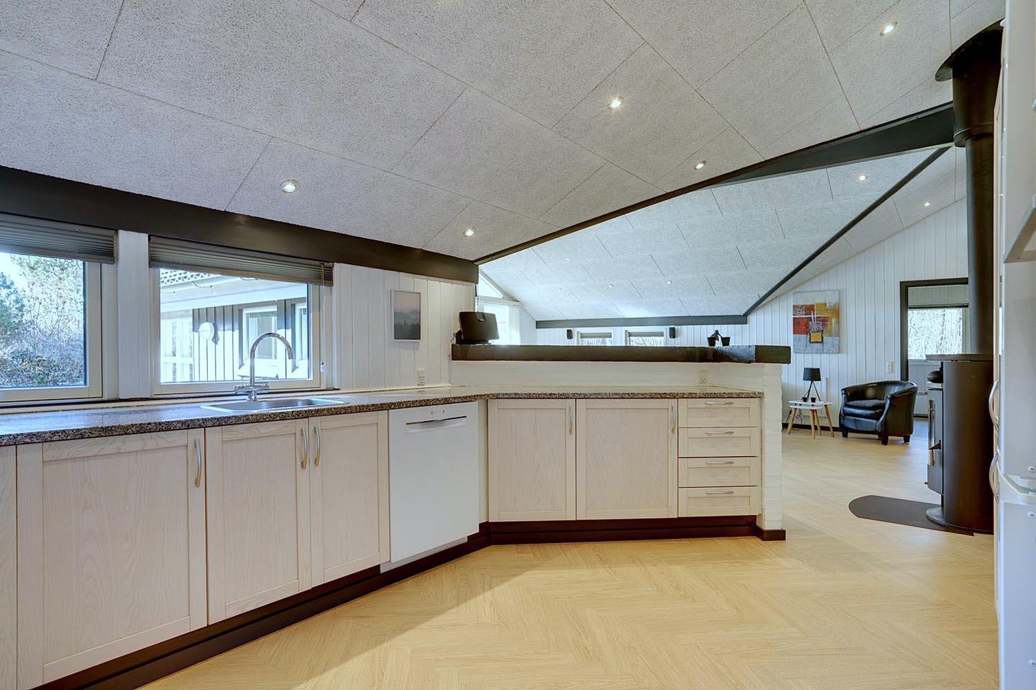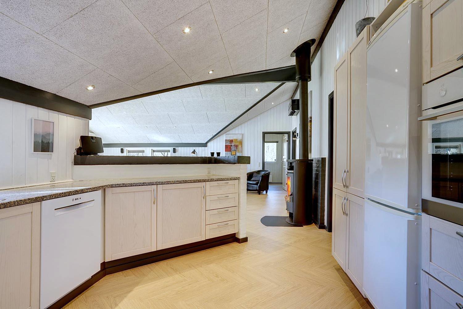 Indendørs dejligt bryggers med vaskemaskine og tørretumbler. 4 gode soverum, 3 med dobbeltsenge og 1 med enkelt senge. På 3 af værelserne er der tv og DVD. Meget rummeligt og velindrettet køkken med separat fryser på 50 liter og opvaskemaskine i åben forbindelse til stue og spiseplads. I stuen finder I brændeovn og et 37' fladskærms TV og WII. 2 badeværelser - det ene med stor standvand spa og sauna. Det andet er handikapvenligt. Desuden er der indrettet kontor og huset har naturligvis WIFI. Huset er meget personligt og velholdt, lyst og venligt med klinkegulve og trægulve.