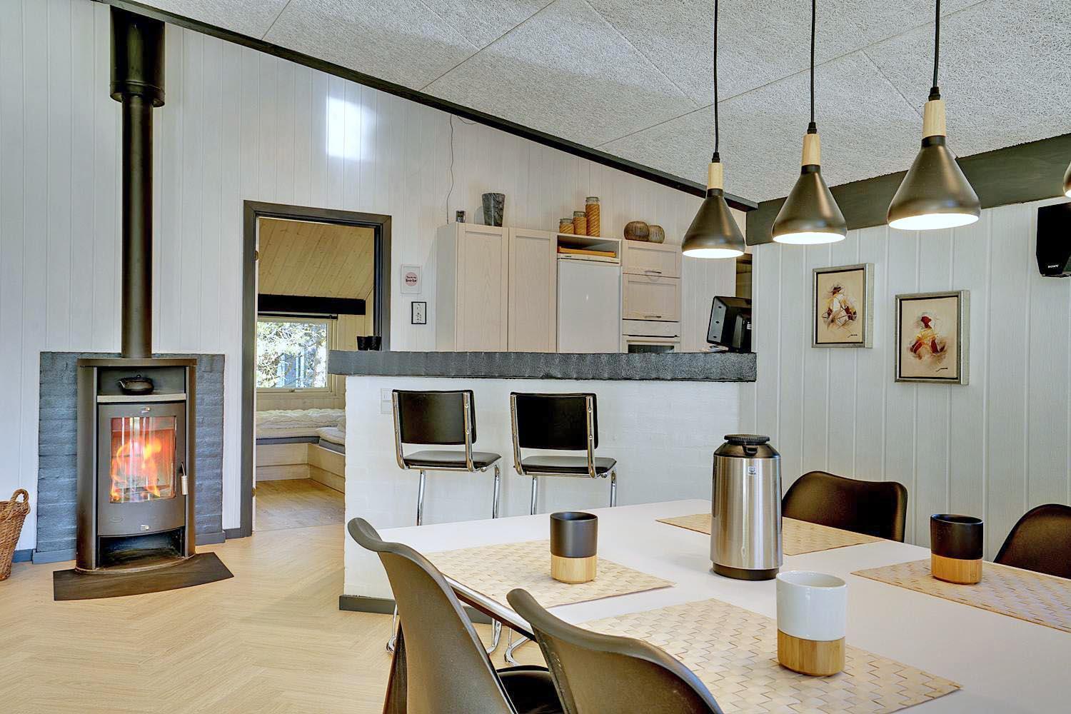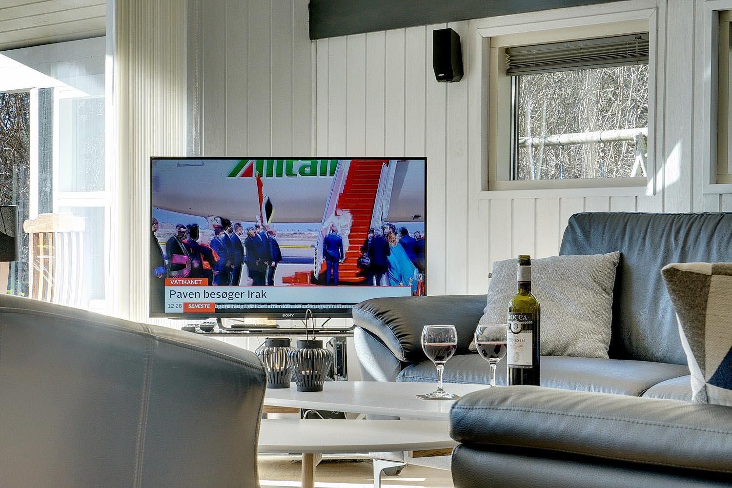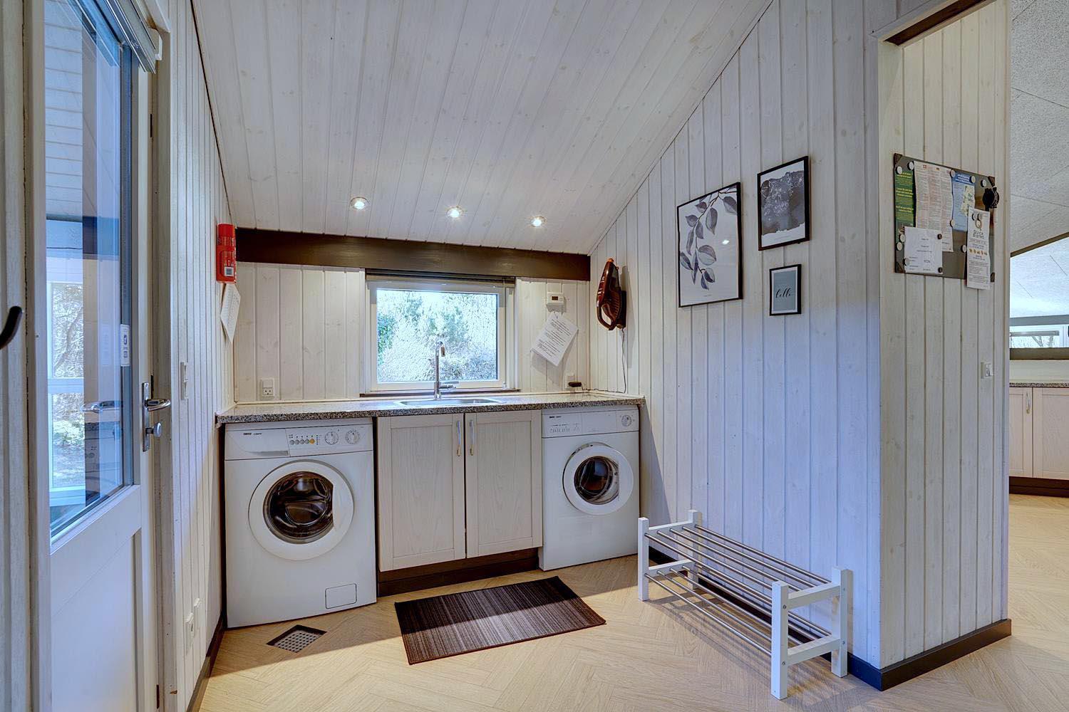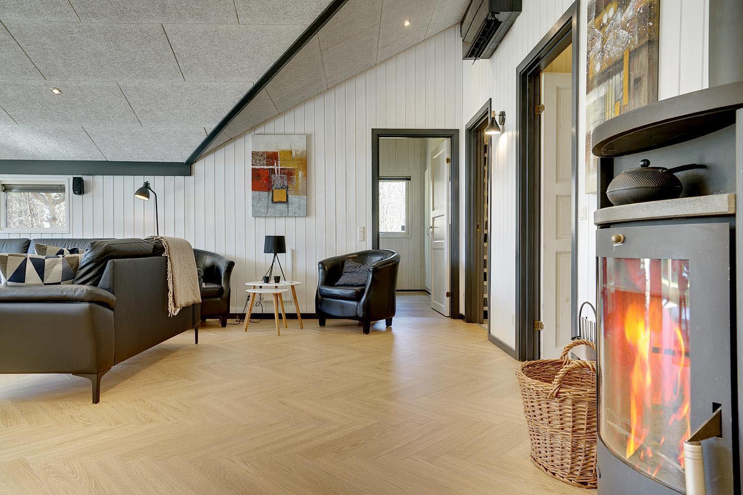 Indendørs dejligt bryggers med vaskemaskine og tørretumbler. 4 gode soverum, 3 med dobbeltsenge og 1 med enkelt senge. På 3 af værelserne er der tv og DVD. Meget rummeligt og velindrettet køkken med separat fryser på 50 liter og opvaskemaskine i åben forbindelse til stue og spiseplads. I stuen finder I brændeovn og et 37' fladskærms TV og WII. 2 badeværelser - det ene med stor standvand spa og sauna. Det andet er handikapvenligt. Desuden er der indrettet kontor og huset har naturligvis WIFI. Huset er meget personligt og velholdt, lyst og venligt med klinkegulve og trægulve.