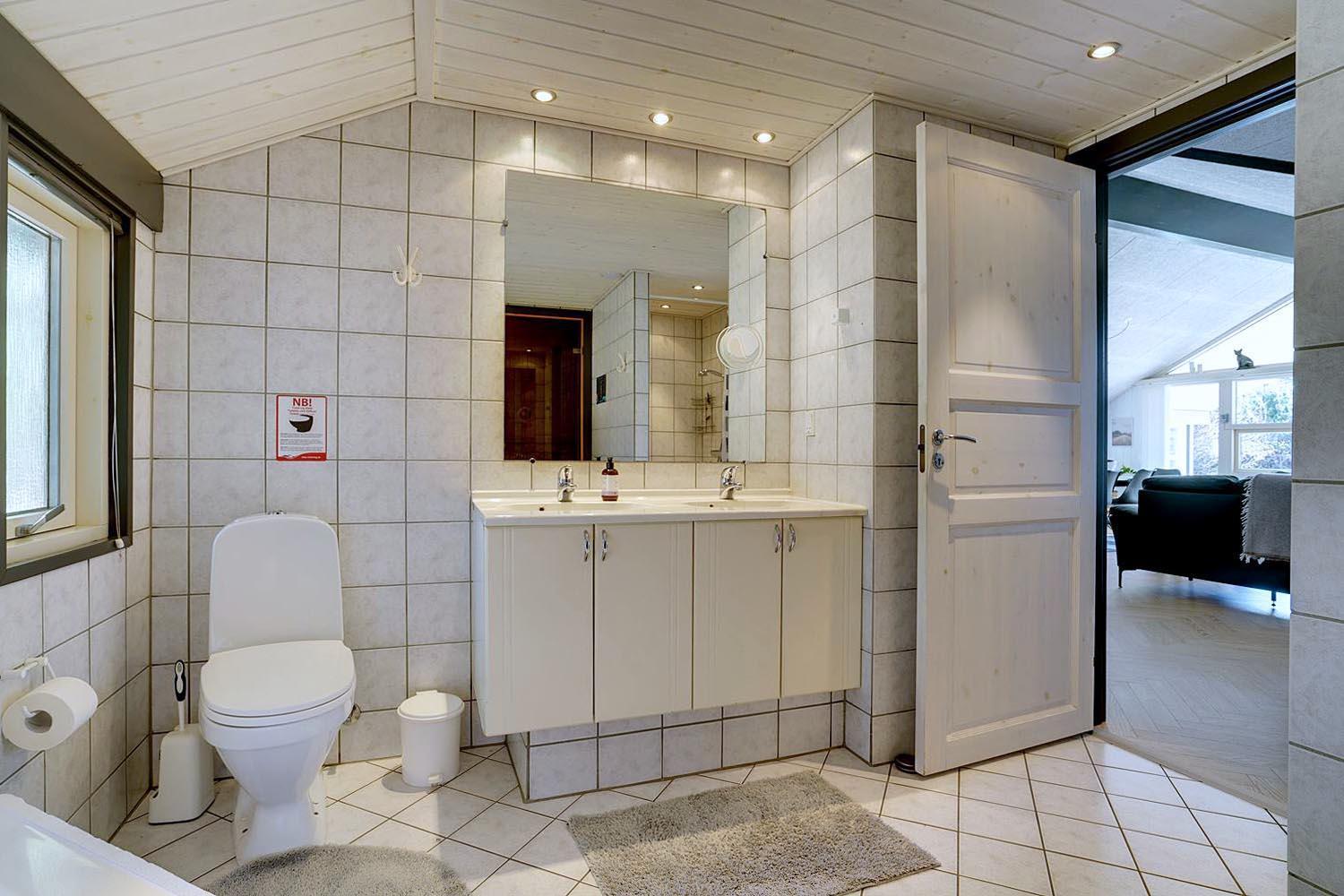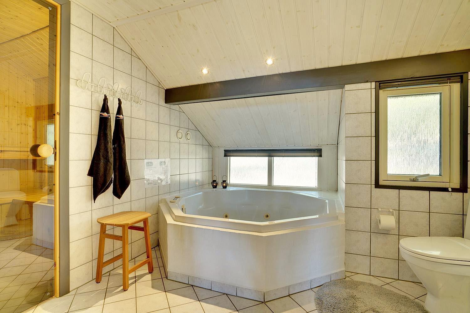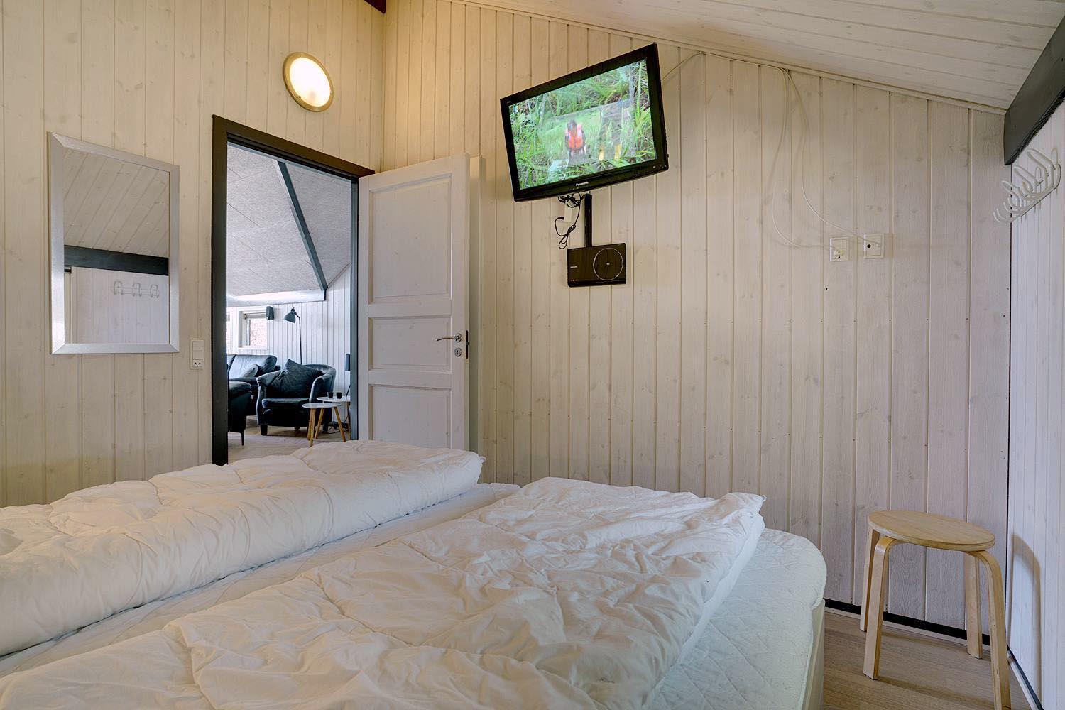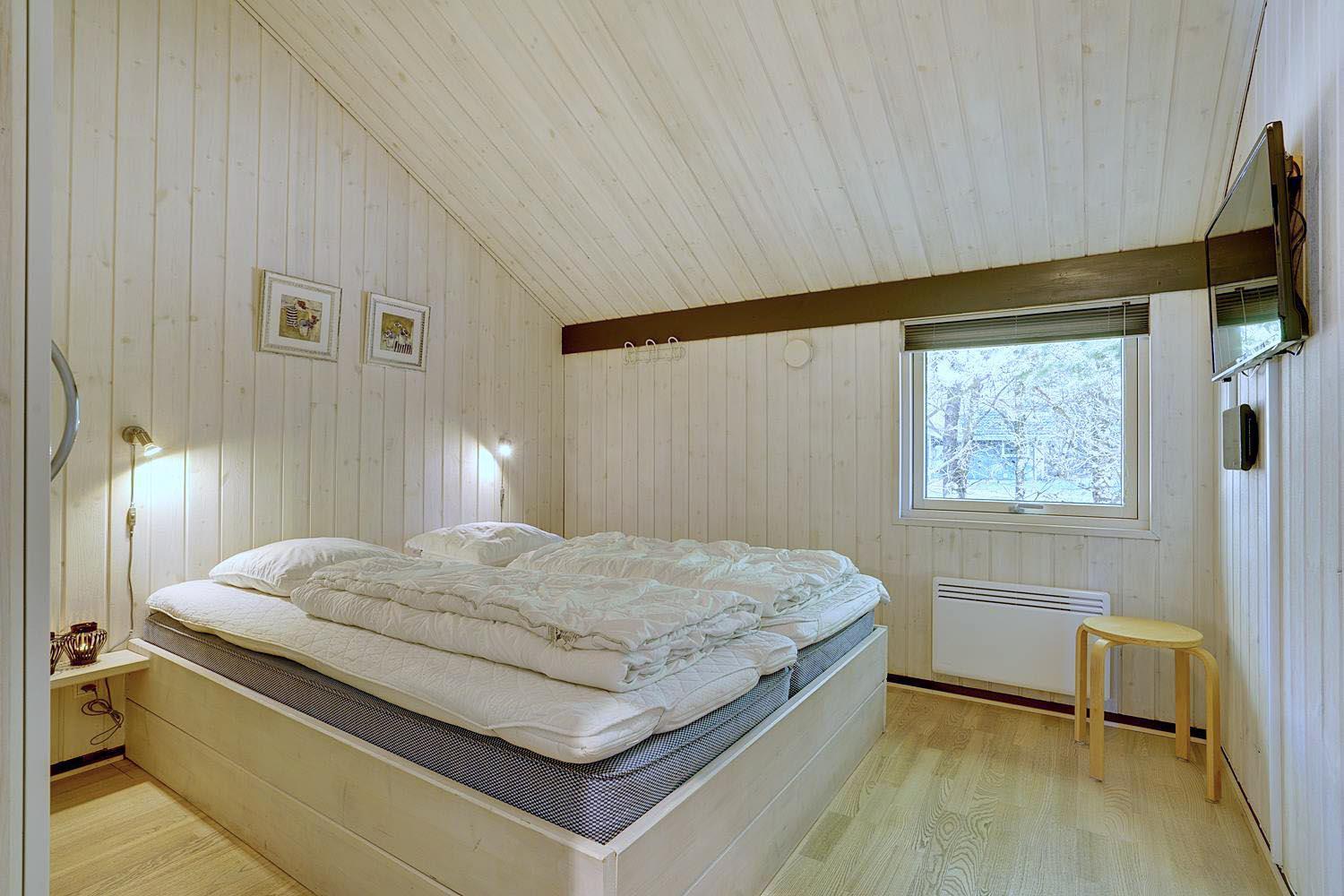 Indendørs dejligt bryggers med vaskemaskine og tørretumbler. 4 gode soverum, 3 med dobbeltsenge og 1 med enkelt senge. På 3 af værelserne er der tv og DVD. Meget rummeligt og velindrettet køkken med separat fryser på 50 liter og opvaskemaskine i åben forbindelse til stue og spiseplads. I stuen finder I brændeovn og et 37' fladskærms TV og WII. 2 badeværelser - det ene med stor standvand spa og sauna. Det andet er handikapvenligt. Desuden er der indrettet kontor og huset har naturligvis WIFI. Huset er meget personligt og velholdt, lyst og venligt med klinkegulve og trægulve.