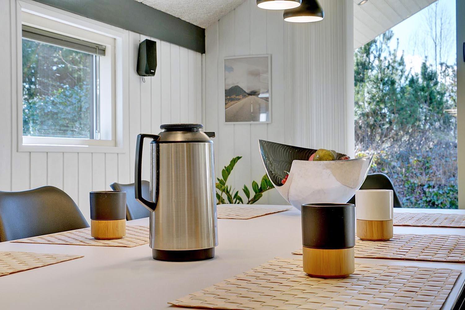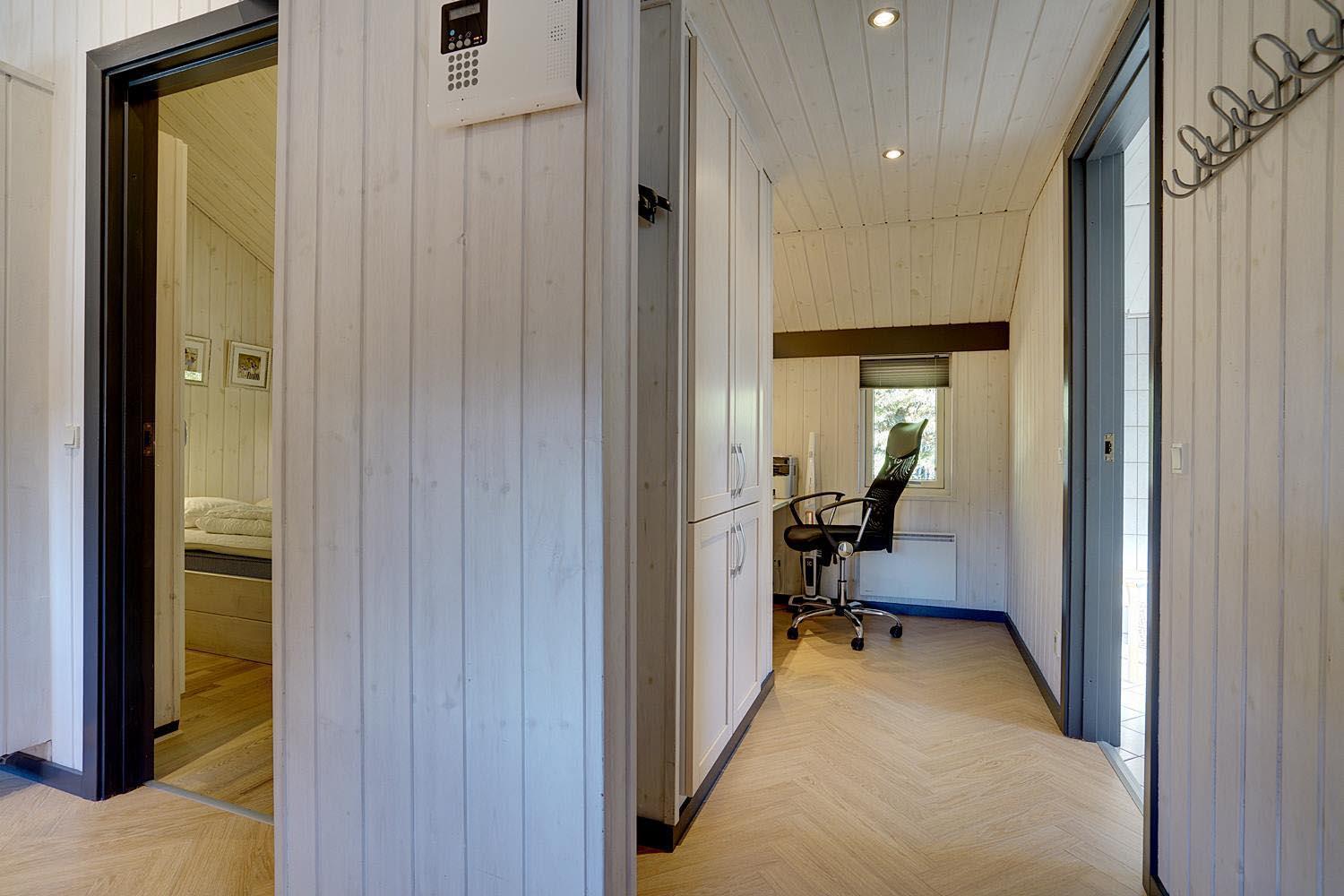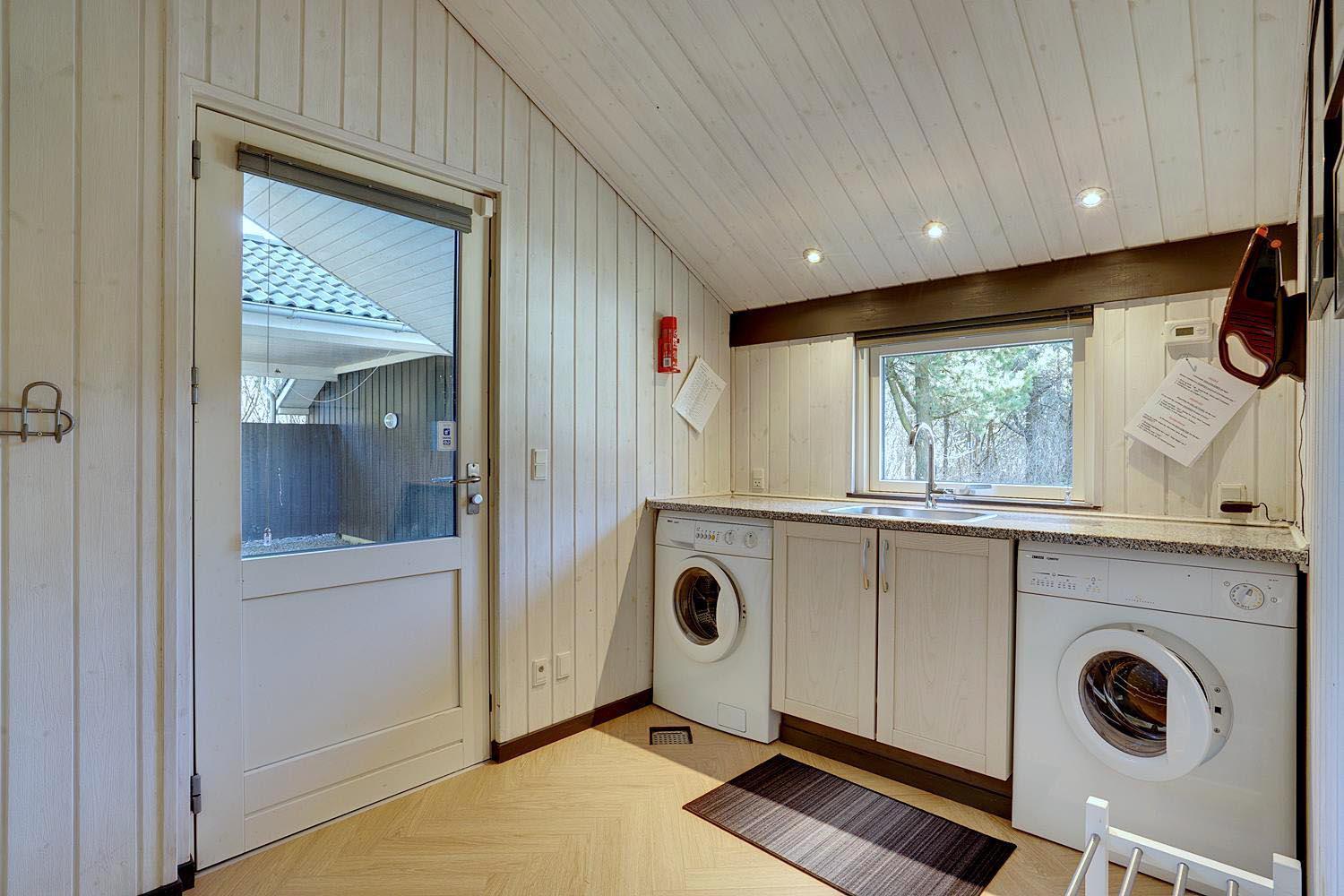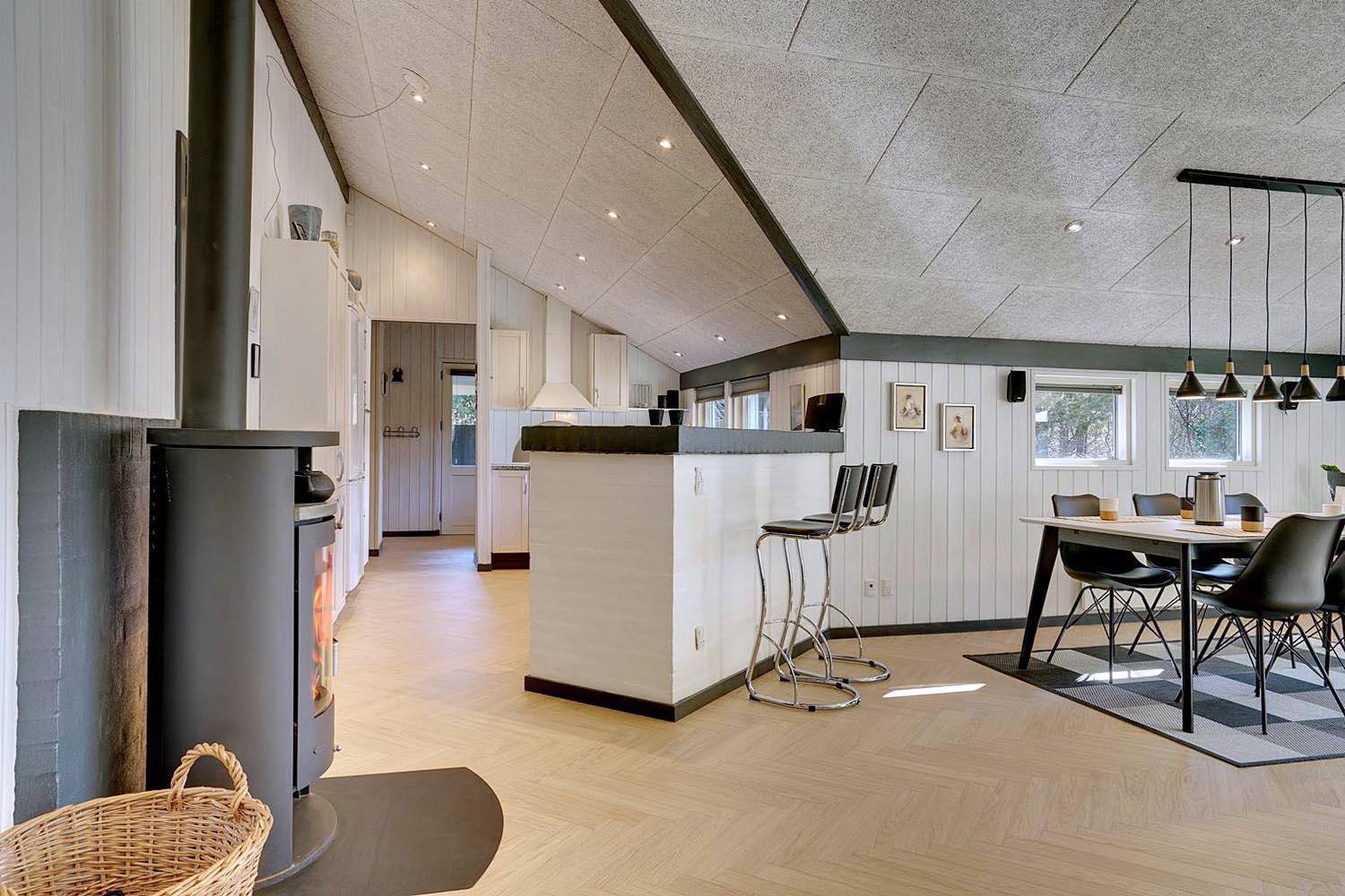 Indendørs dejligt bryggers med vaskemaskine og tørretumbler. 4 gode soverum, 3 med dobbeltsenge og 1 med enkelt senge. På 3 af værelserne er der tv og DVD. Meget rummeligt og velindrettet køkken med separat fryser på 50 liter og opvaskemaskine i åben forbindelse til stue og spiseplads. I stuen finder I brændeovn og et 37' fladskærms TV og WII. 2 badeværelser - det ene med stor standvand spa og sauna. Det andet er handikapvenligt. Desuden er der indrettet kontor og huset har naturligvis WIFI. Huset er meget personligt og velholdt, lyst og venligt med klinkegulve og trægulve.