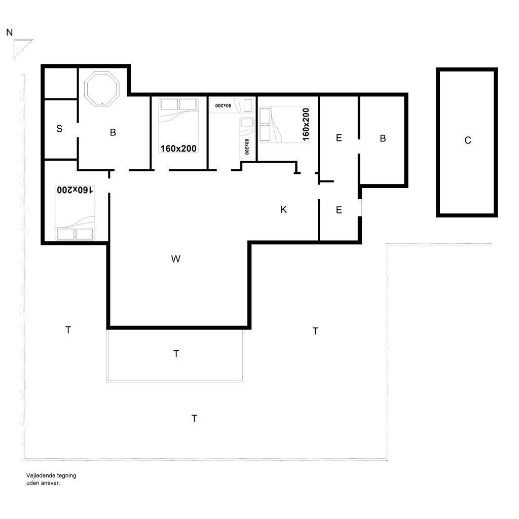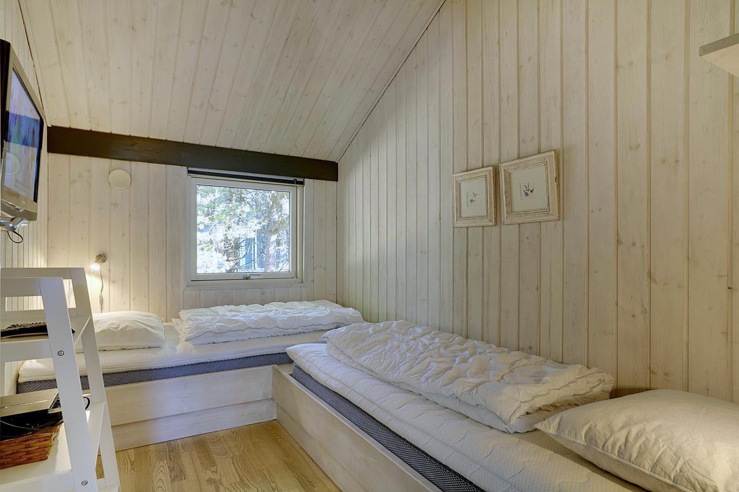 Sengestørrelser: 3 dobbeltsenge 160 x 200 cm + 2 enkeltsenge 80 x 200 cm.