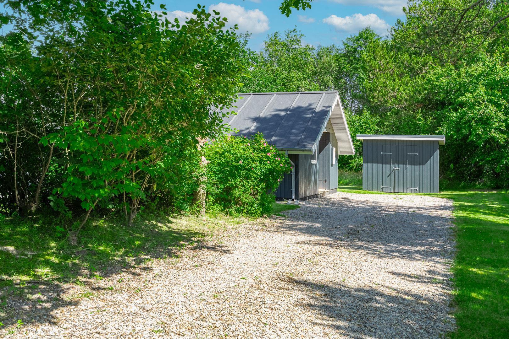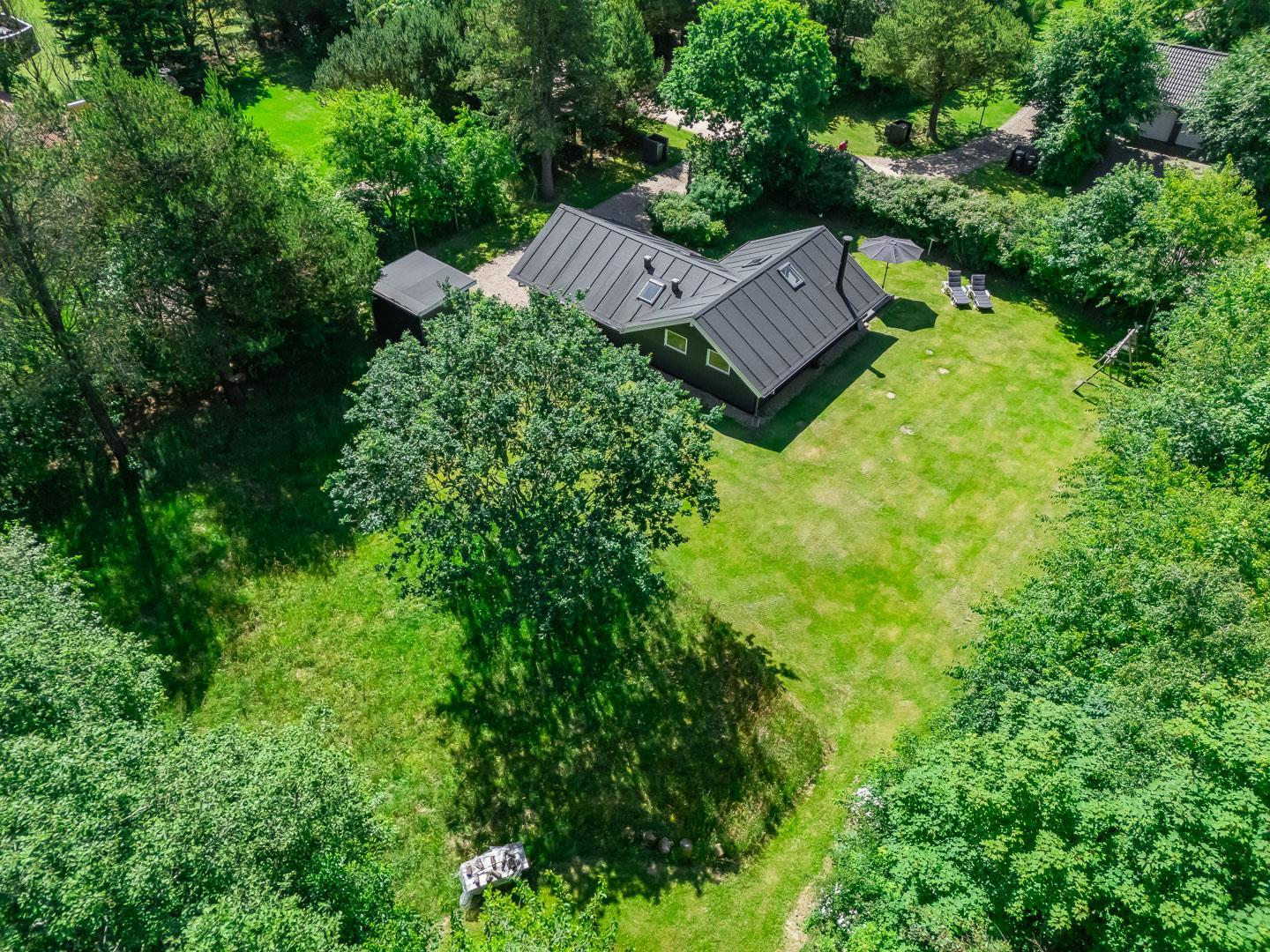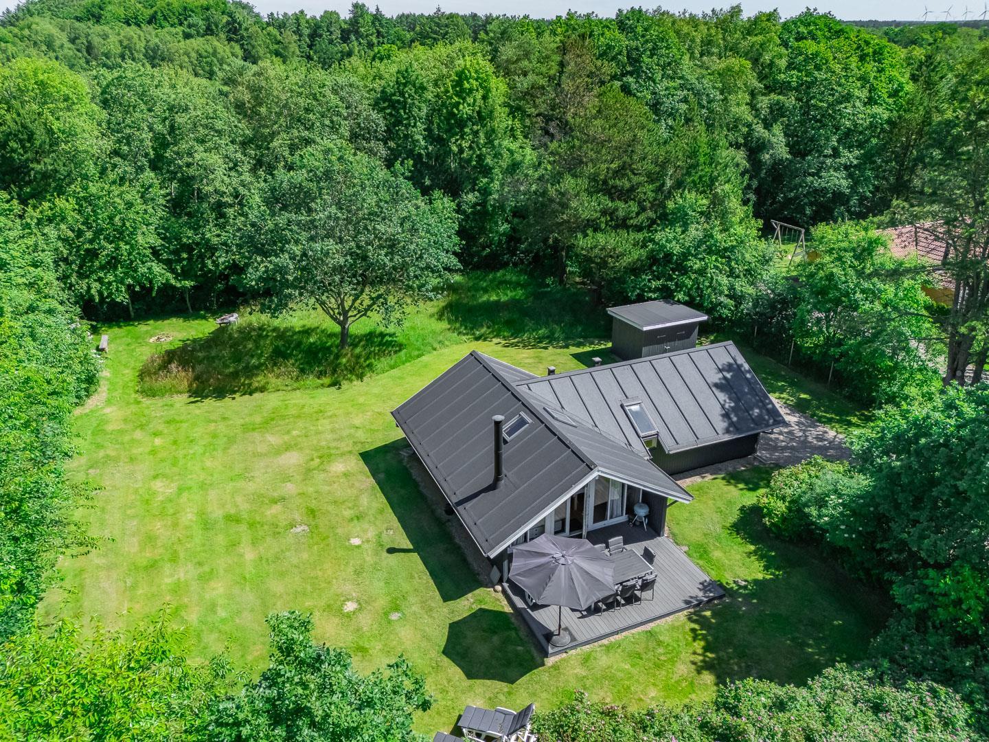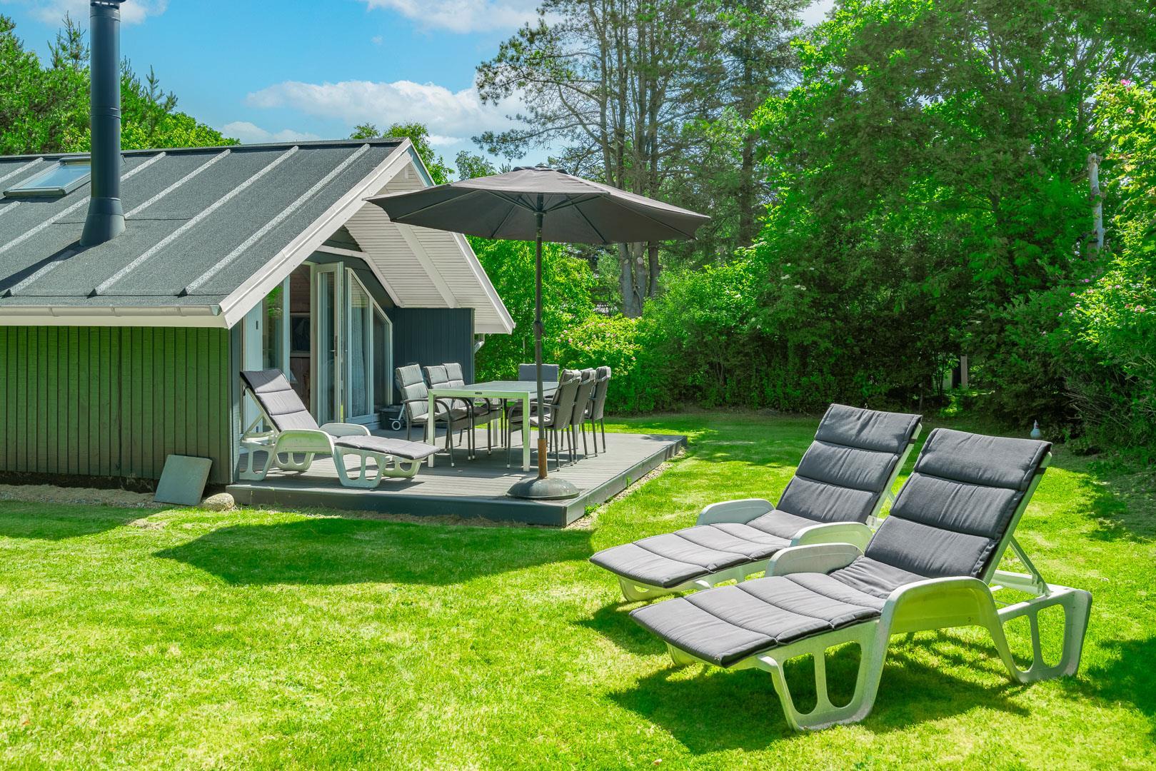 Udendørs venter en dejlig, overdækket terrasse, som kan bruges i al slags vejr. Her kan I starte dagen med morgenmad i den friske luft eller nyde lange sommeraftener – uanset om solen skinner, eller der falder en let regn.