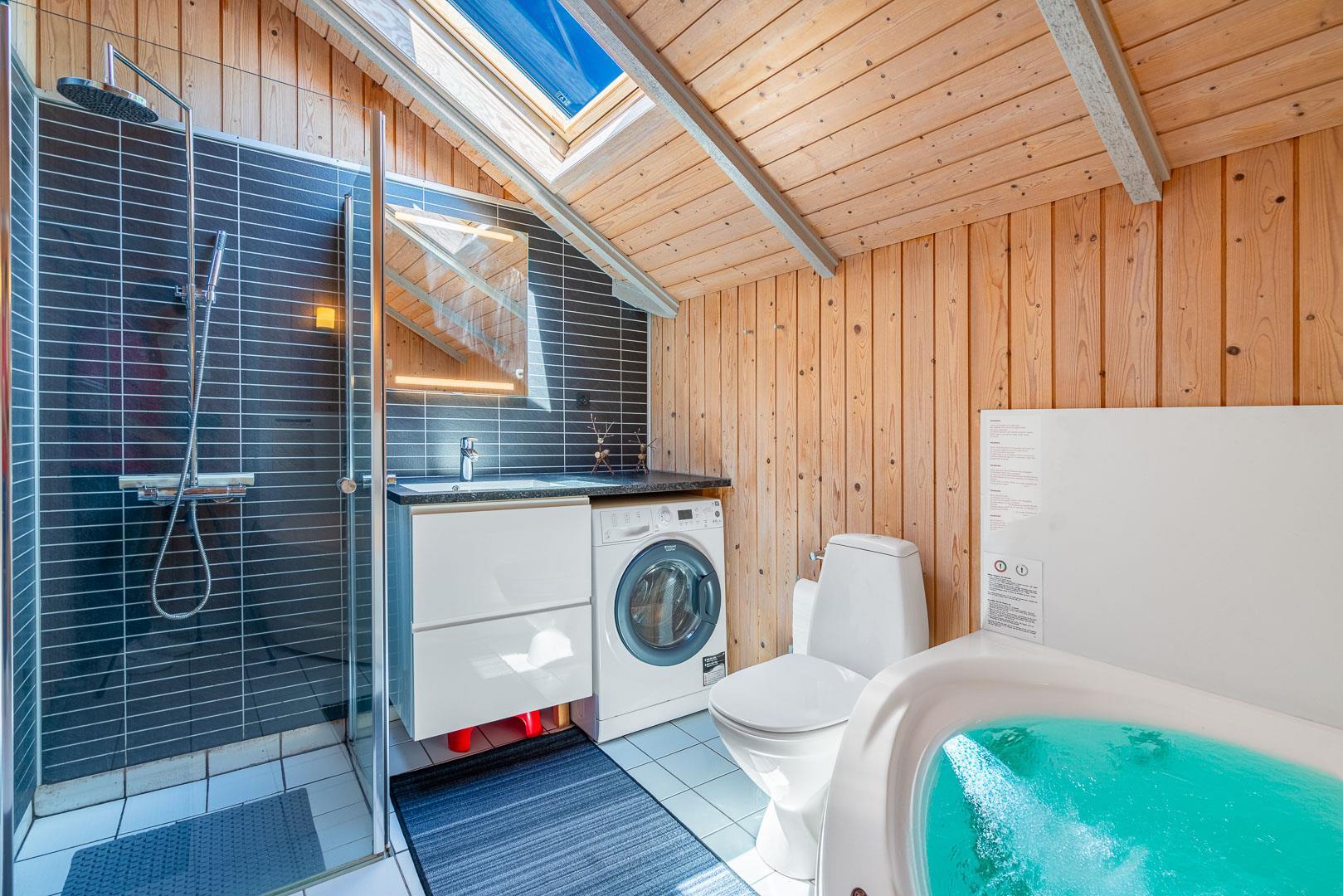 Huset har tre soveværelser med gode muligheder for både fællesskab og privatliv. Efter en lang dag ved stranden eller i naturen kan I nyde husets wellnessafdeling med både sauna og spabad – perfekt til at koble helt af.