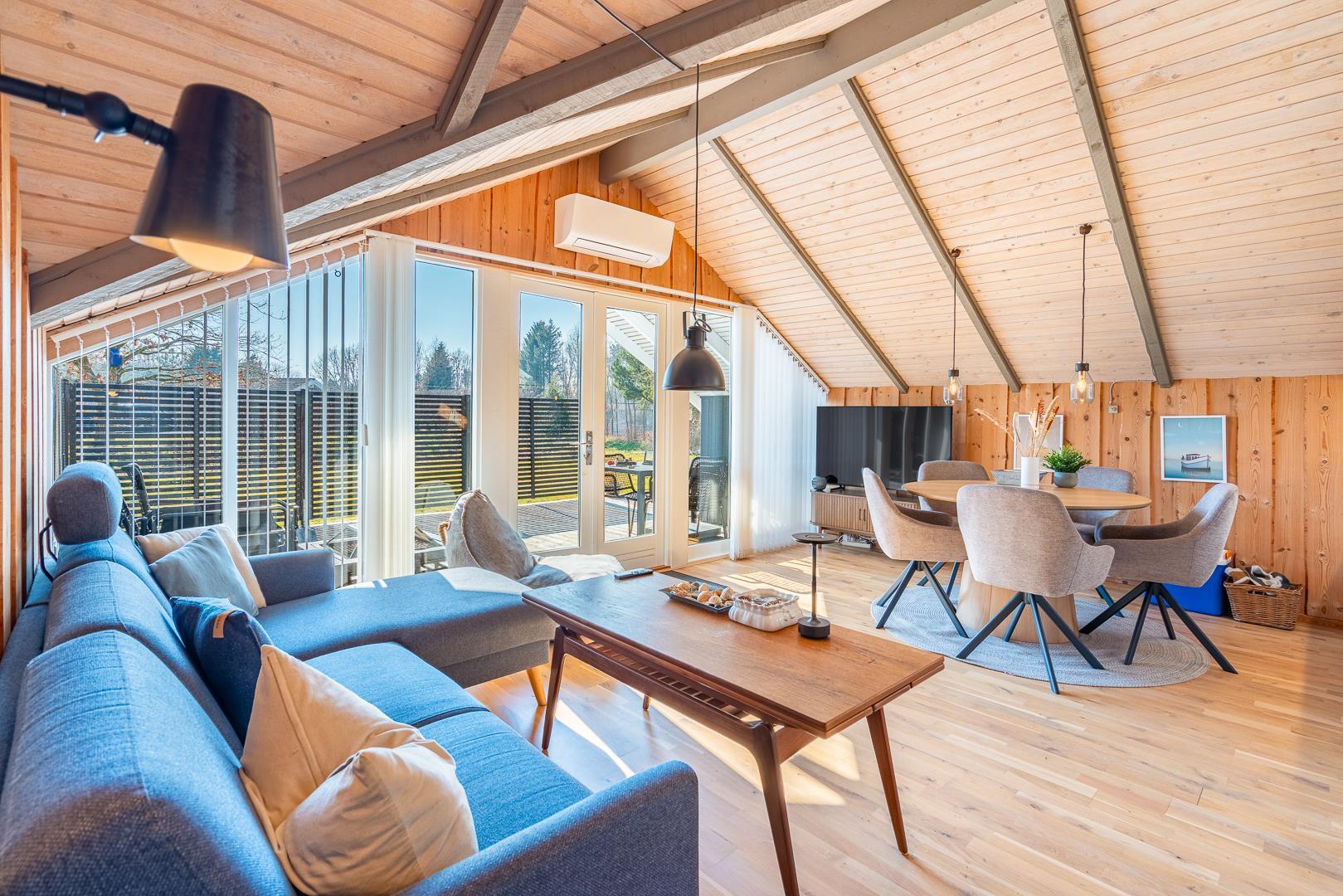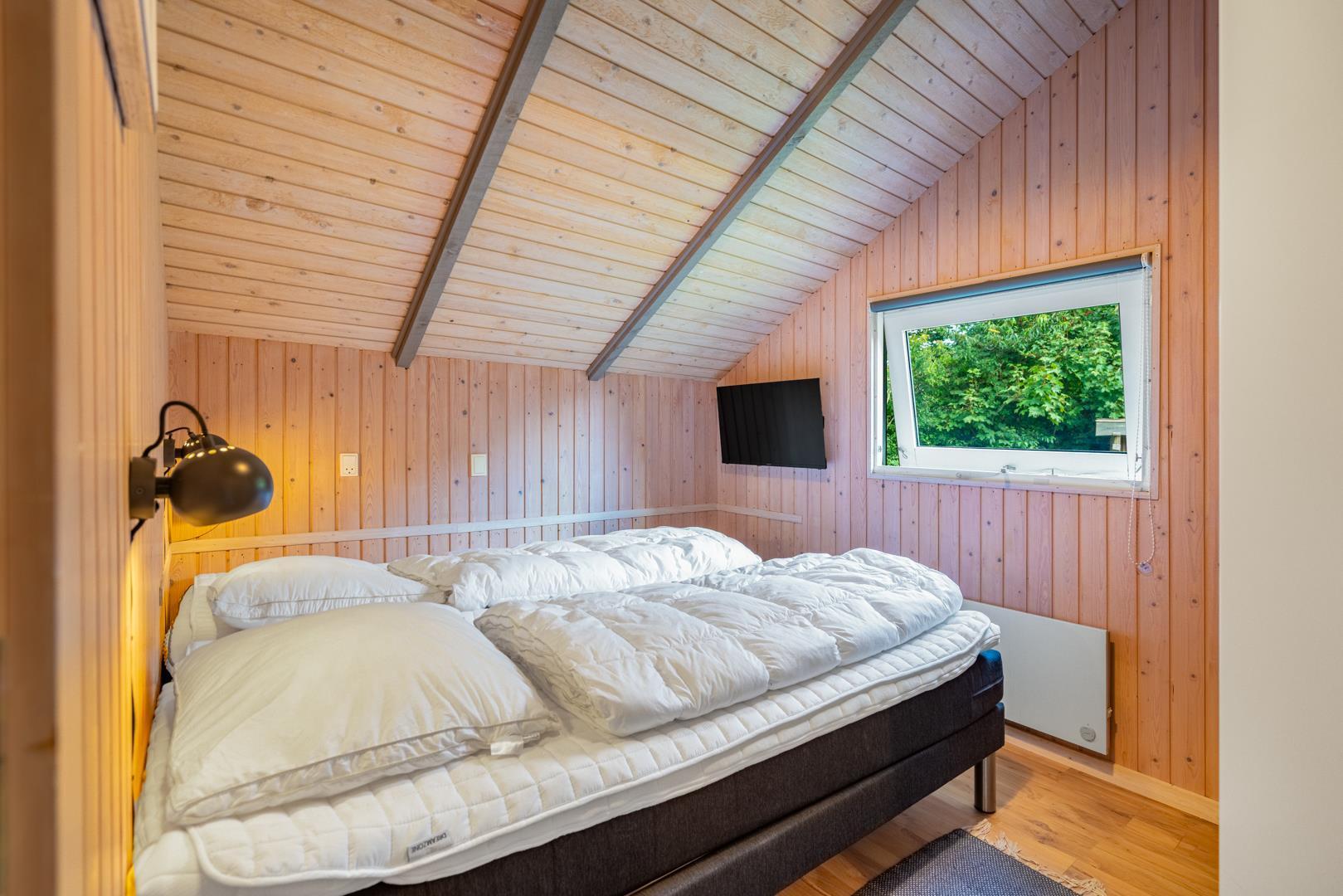 Sommerhuset har to lyse soveværelser – det ene udstyret med en dobbeltseng og det andet med to enkeltsenge, hvilket gør huset velegnet til både familier og par. Sommerhusets hjerte er den hyggelige stue, der er kombineret med det åbne køkken, så I kan nyde samvær og madlavning på samme tid. Stuen er udstyret med smart TV, så der er rig mulighed for både afslapning og underholdning. Køkkenet har desuden en opvaskemaskine og mikroovn for at gøre hverdagen nemmere.