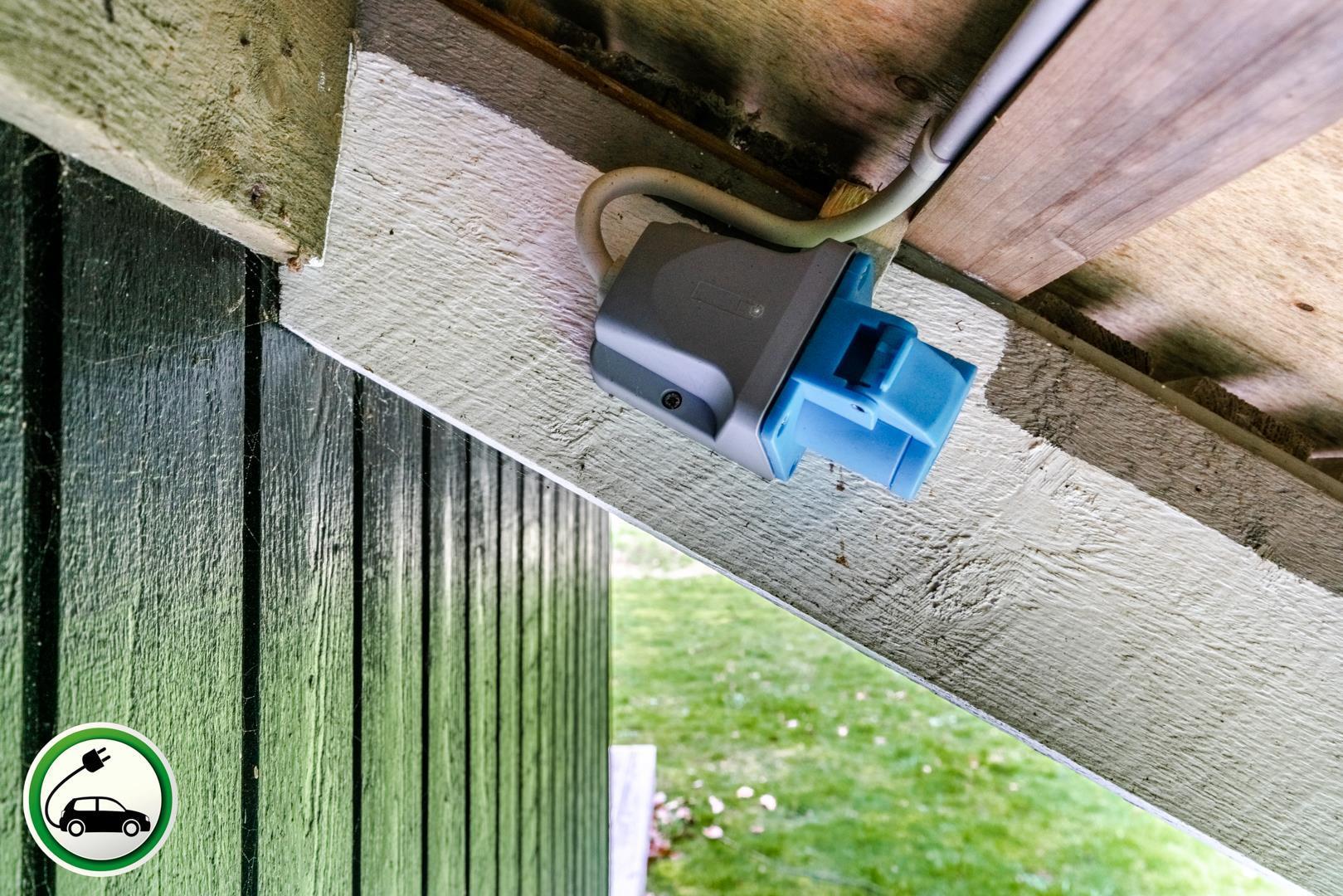 For elbilister er huset praktisk udstyret med en blå CEE-stik med adapter, så opladning af elbil er let tilgængelig.