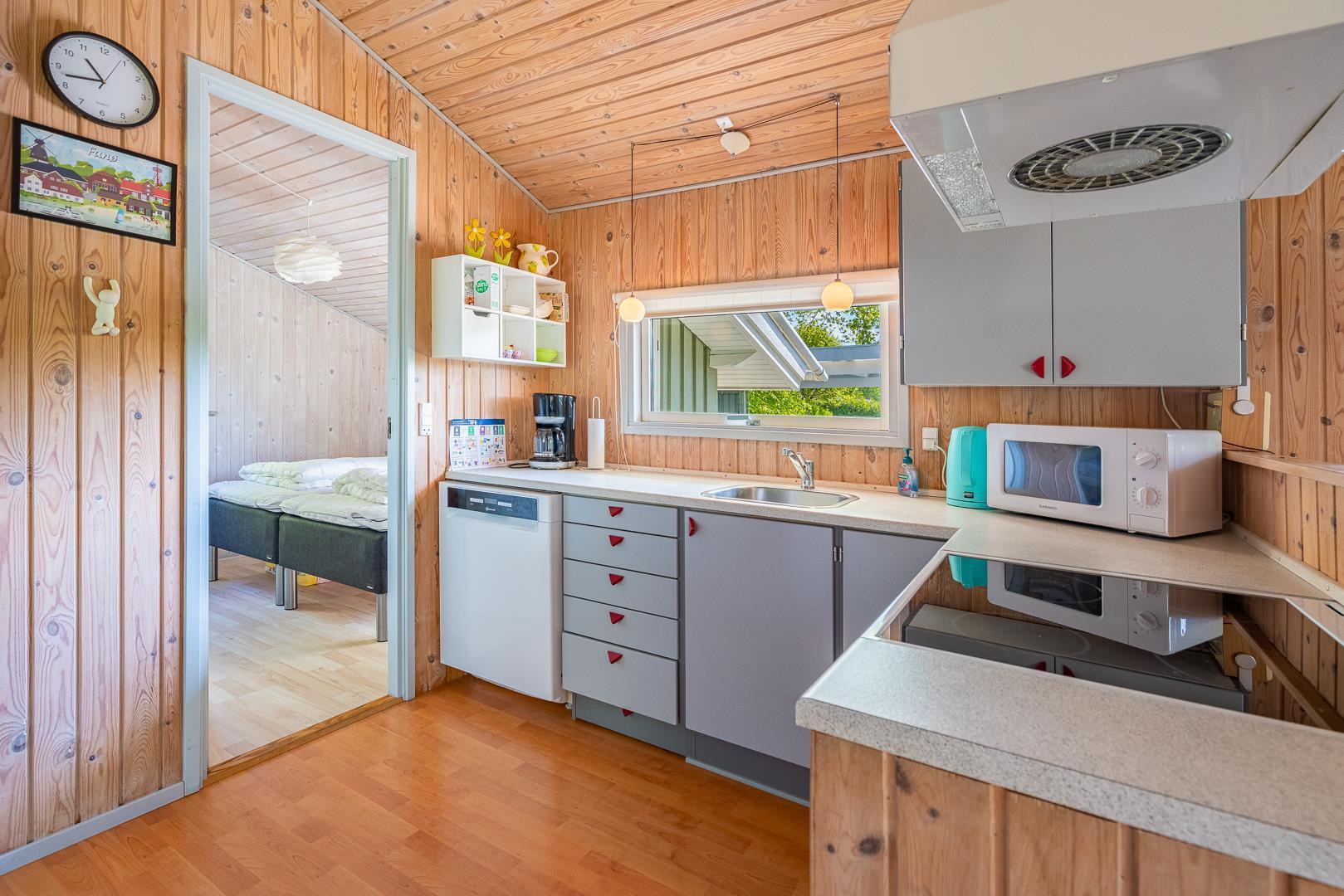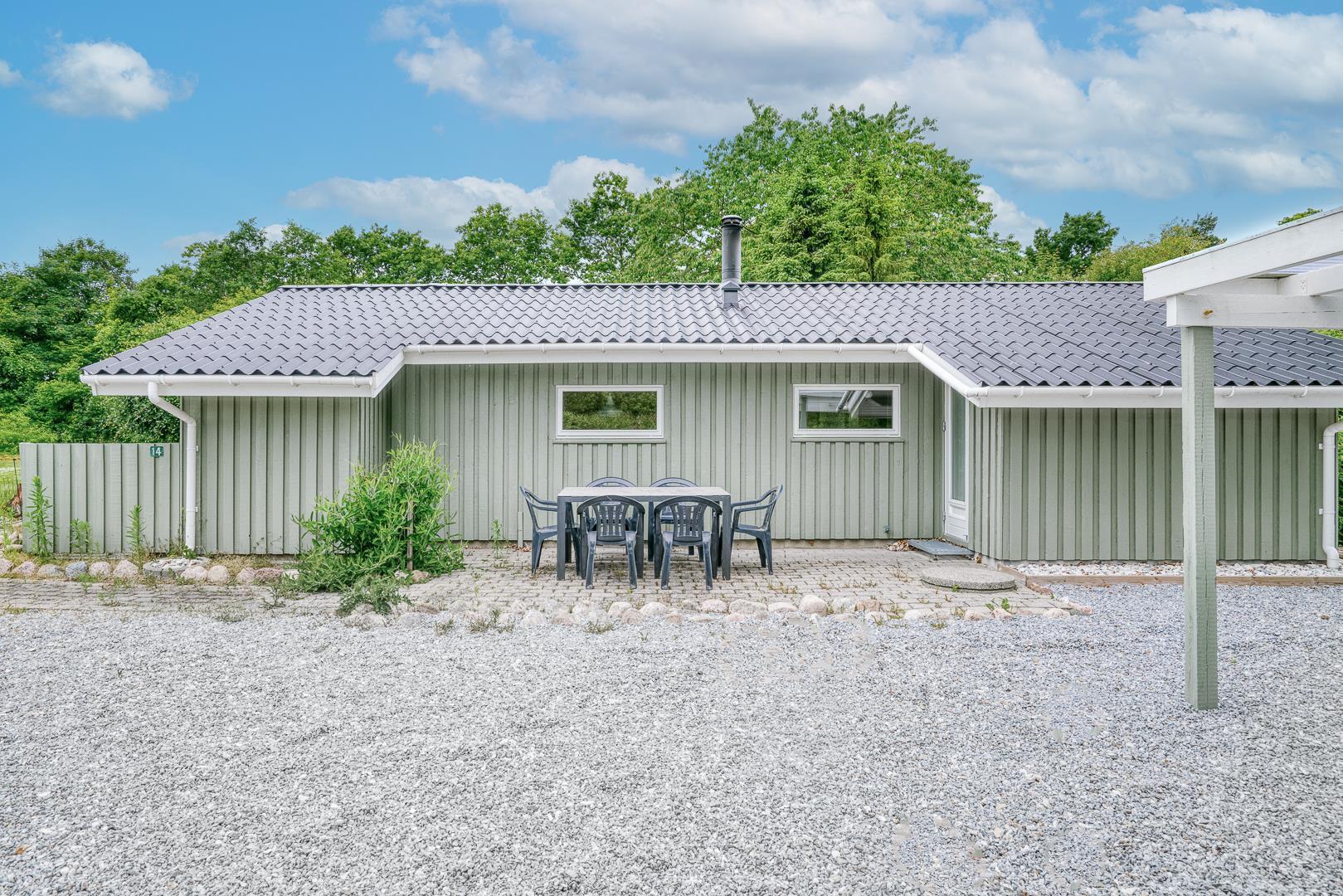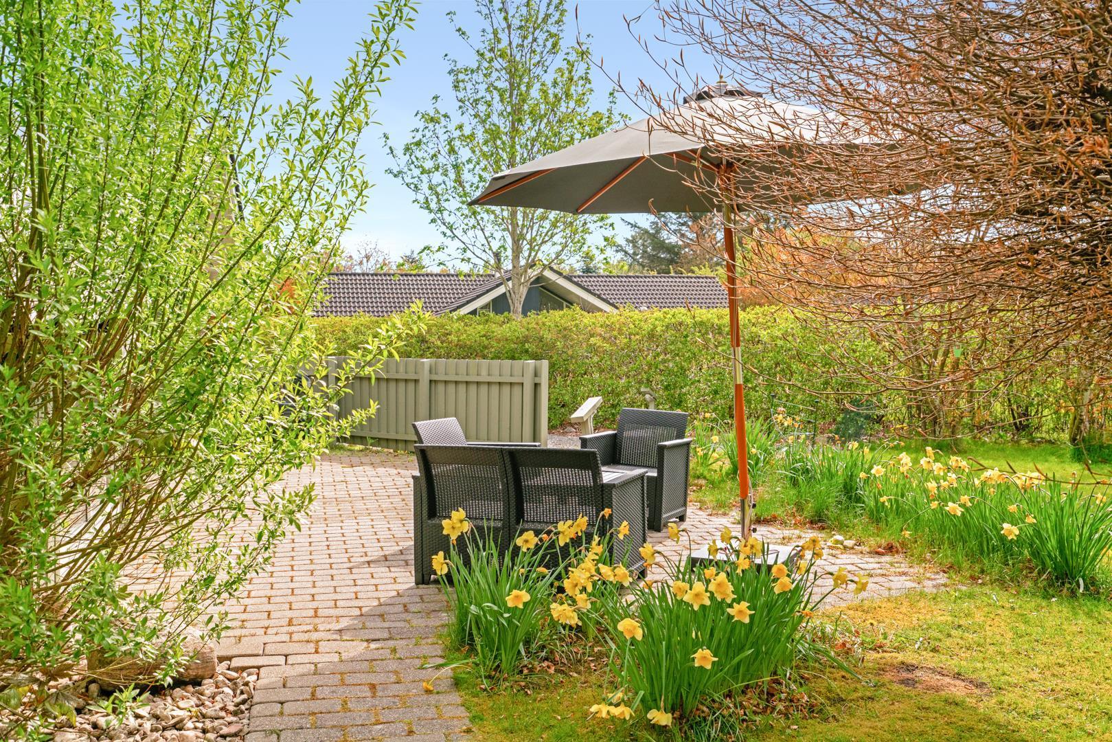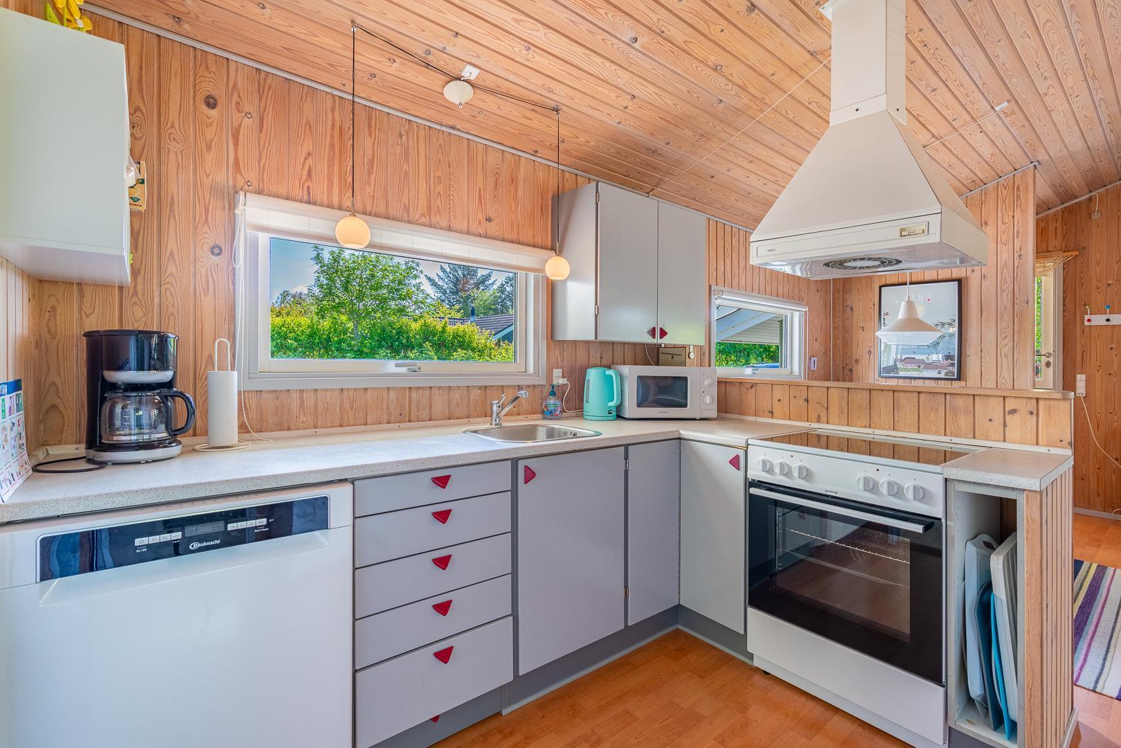 Huset har en delvis overdækket sydvestvendt terrasse, carport med overdækket grillområde og er tæt på områdets aktivitetscenter, der byder på indkøbsmulighed, restaurant og et stort grillområde med klappedyr. Inde er der brændeovn, varmepumpe, moderne køkken og badeværelse med gulvvarme.