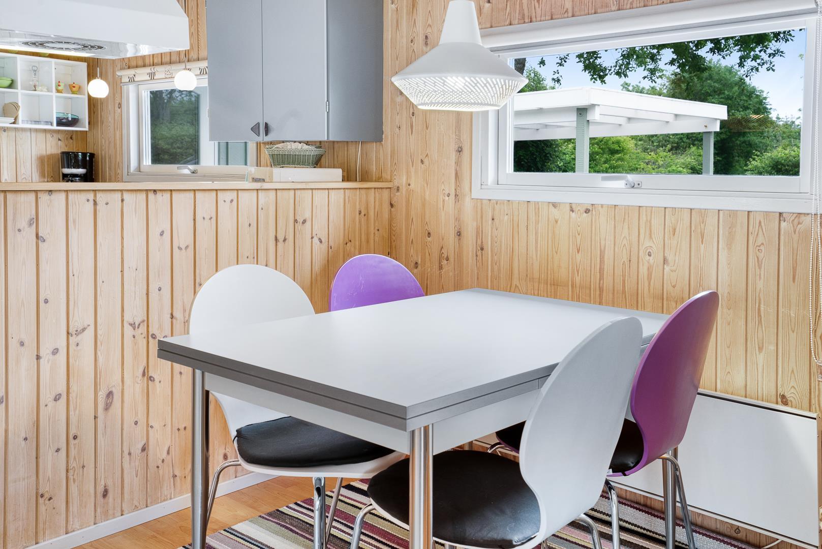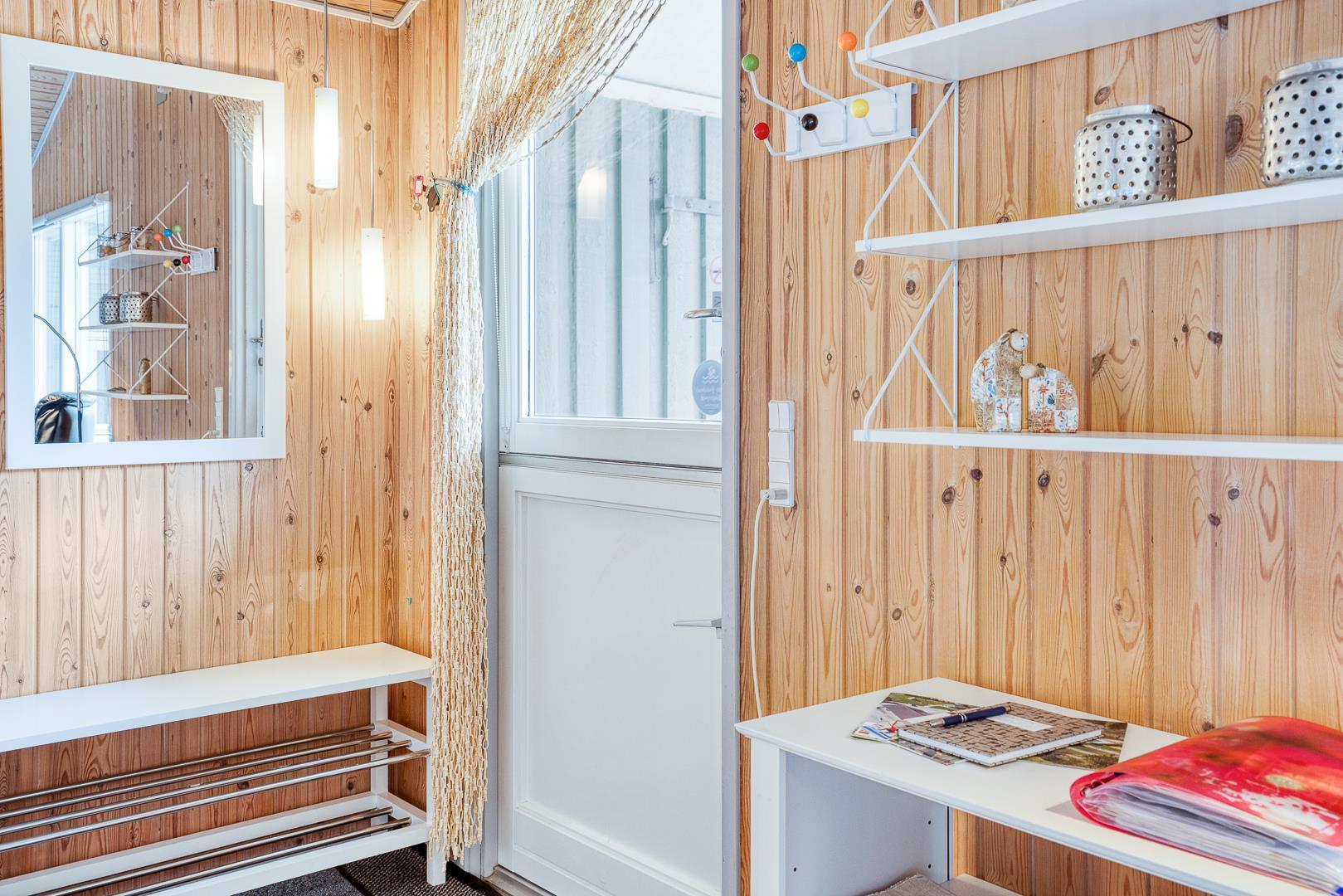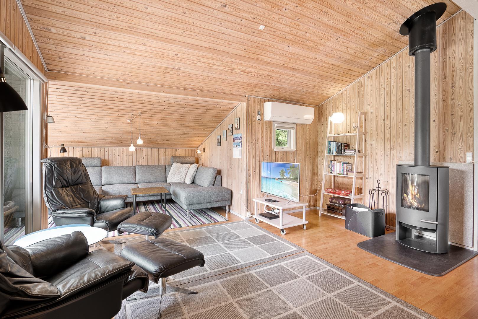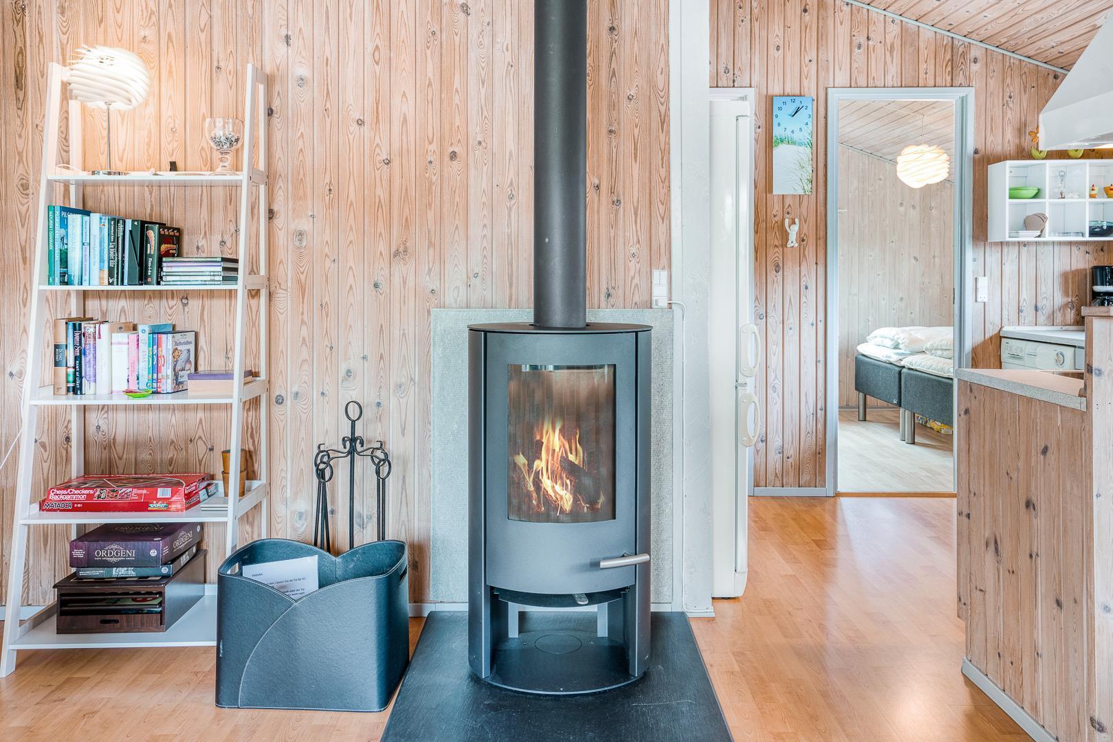 Huset har en delvis overdækket sydvestvendt terrasse, carport med overdækket grillområde og er tæt på områdets aktivitetscenter, der byder på indkøbsmulighed, restaurant og et stort grillområde med klappedyr. Inde er der brændeovn, varmepumpe, moderne køkken og badeværelse med gulvvarme.