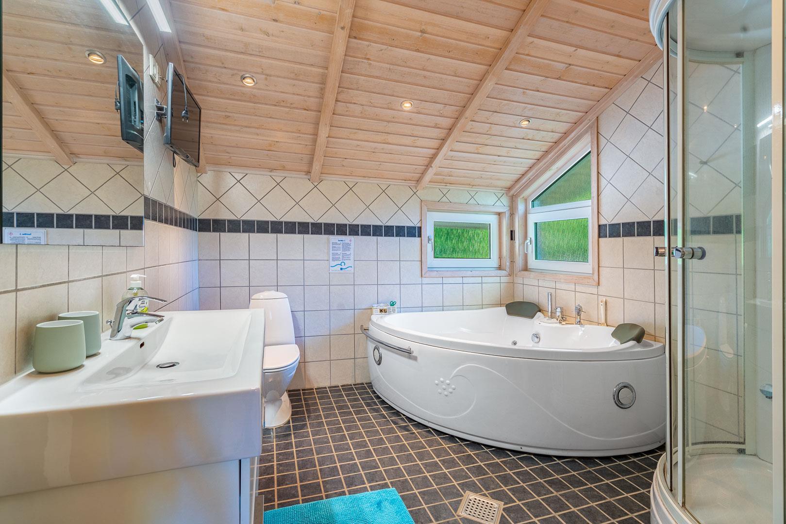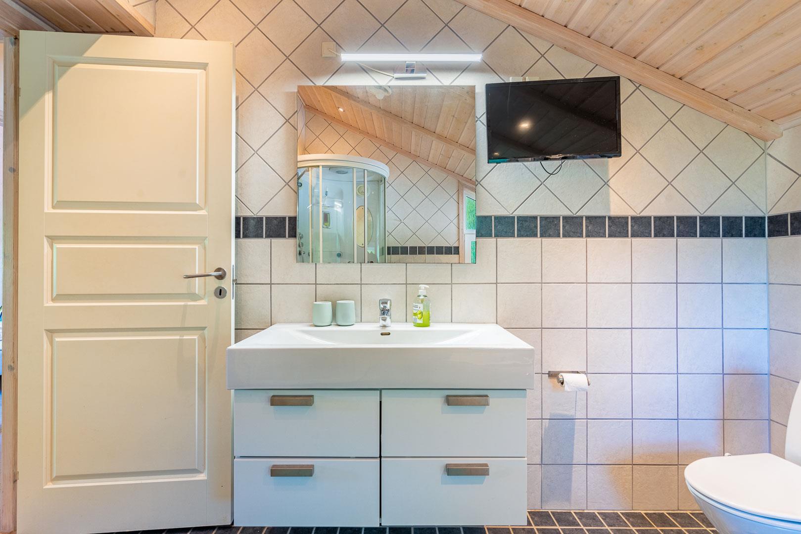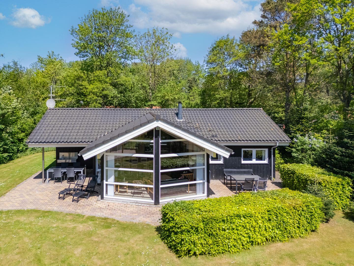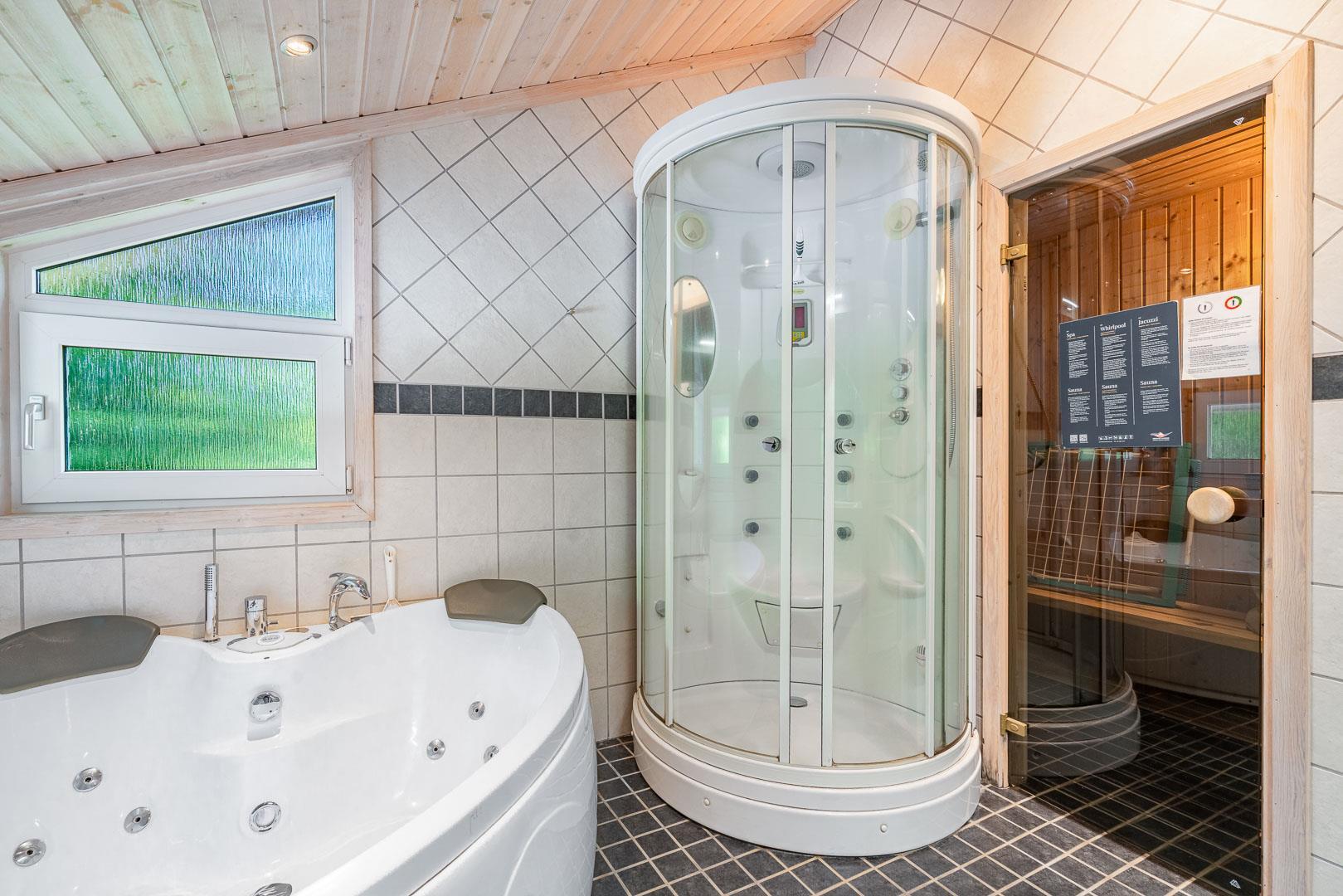 Det moderne køkken er veludstyret med blandt andet opvaskemaskine, ovn og god plads til fælles madlavning. Sommerhuset råder over fire soveværelser og kan rumme op til 8 personer. Derudover findes et ekstra gæstetoilet samt et stort badeværelse med sauna, badekar og gulvvarme, som indbyder til ren wellness.
