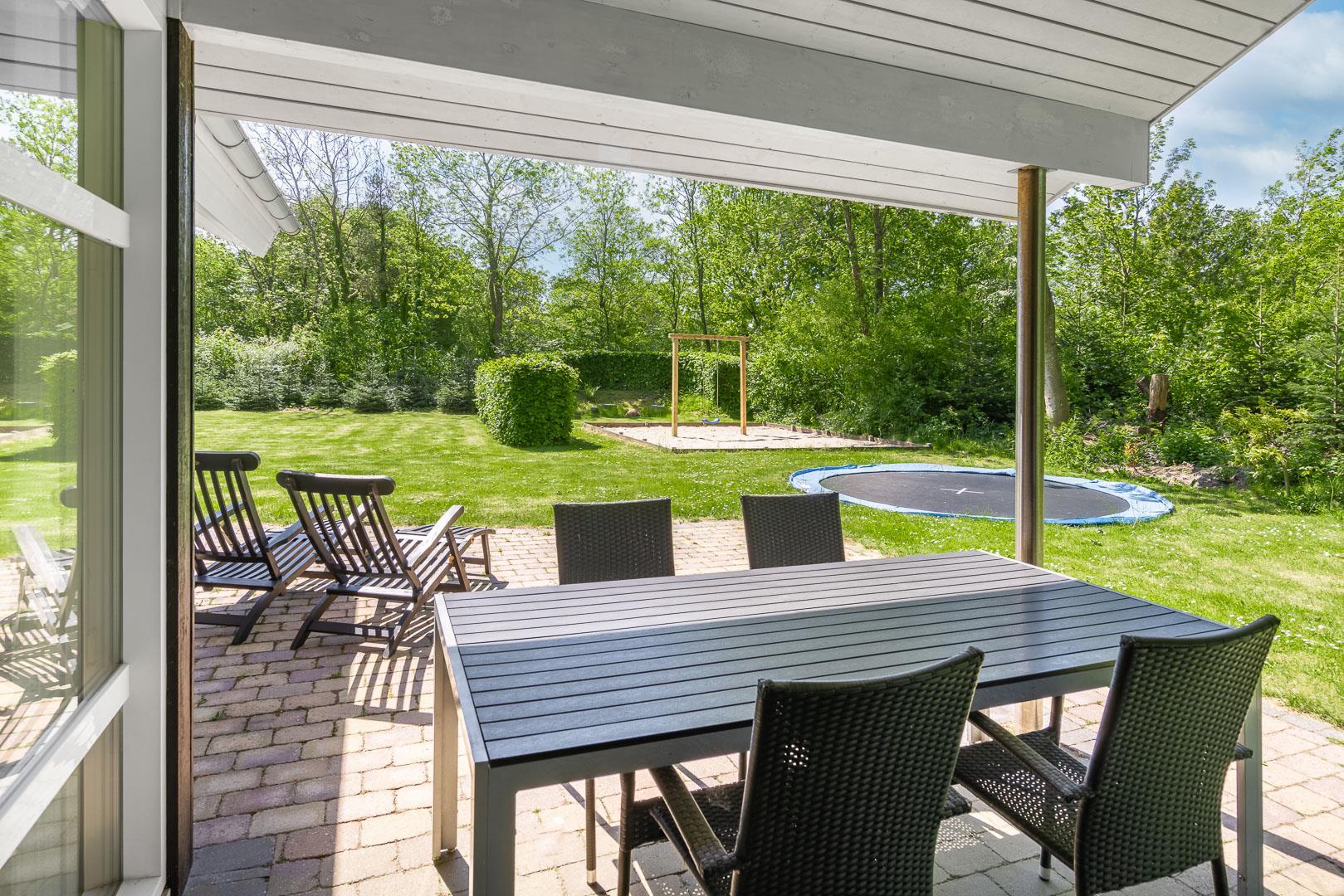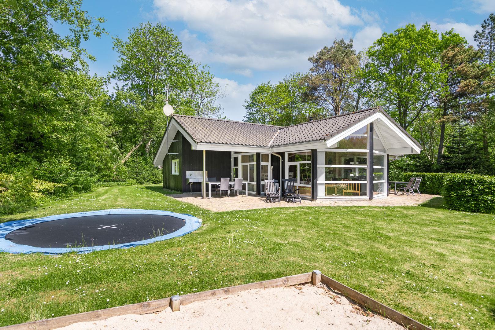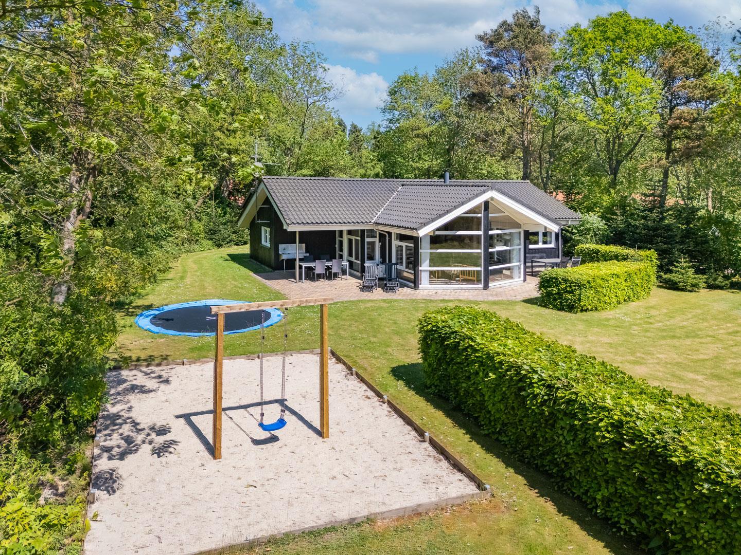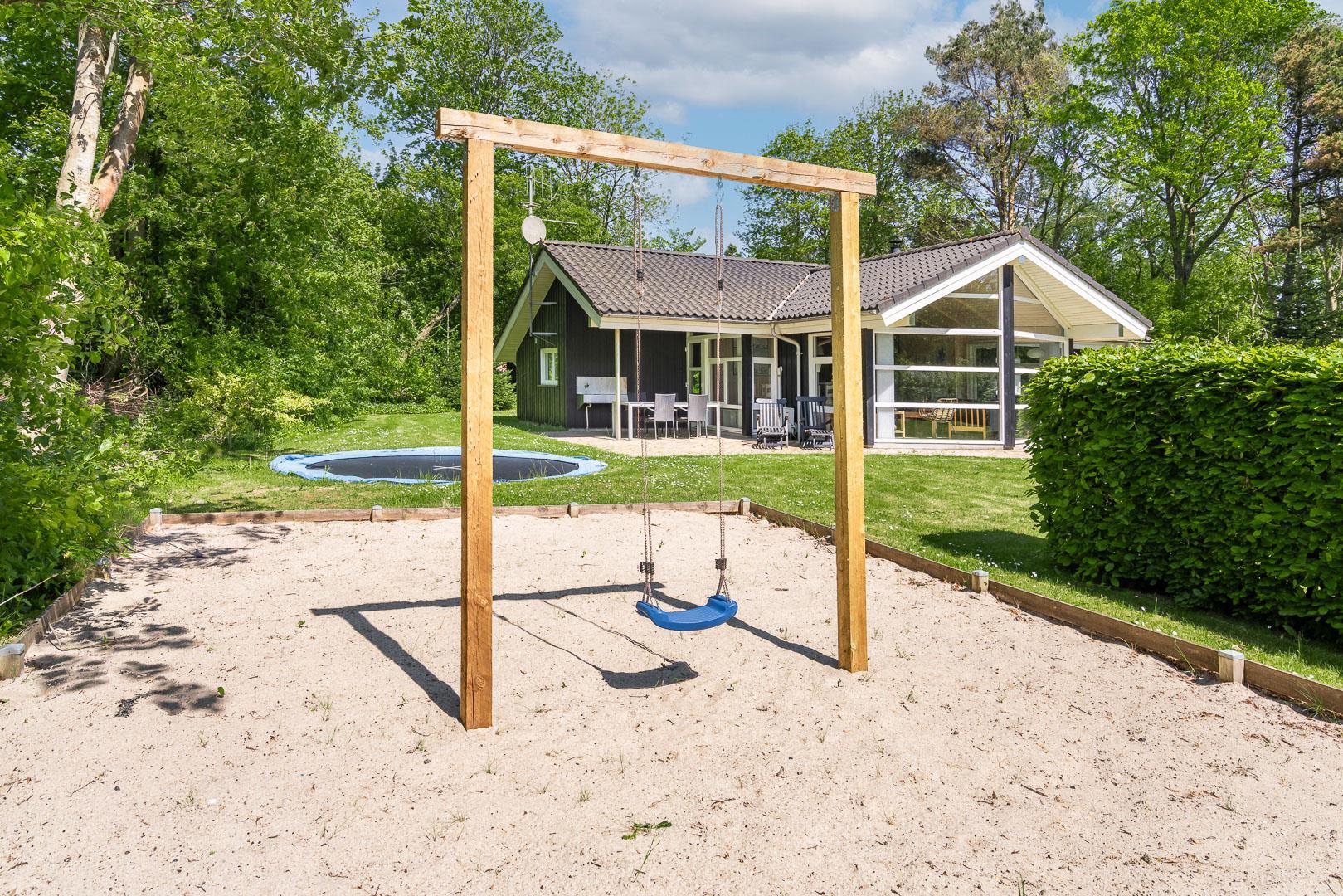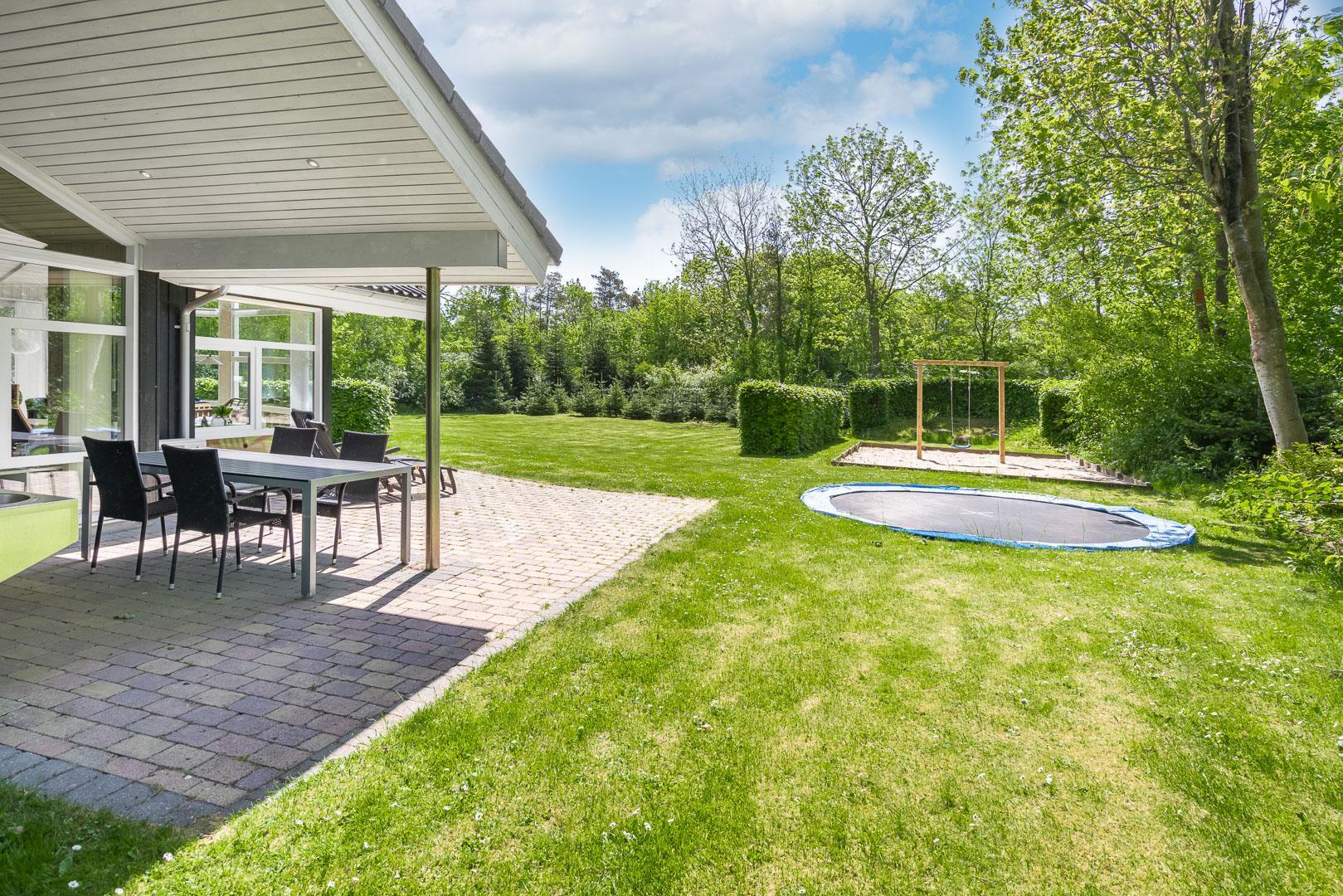 Børnene vil elske haven, hvor der er gynge, sandkasse og trampolin – perfekte rammer for leg og udeliv. Op til to hunde er velkomne, og den store naturgrund giver rig mulighed for både leg og afslappende gåture sammen.