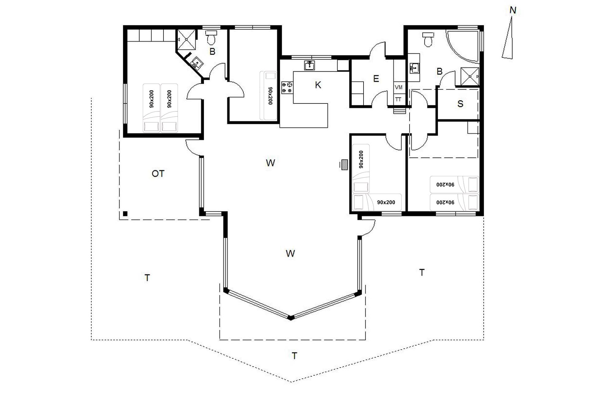 1 køjeseng (90 x 200 cm).