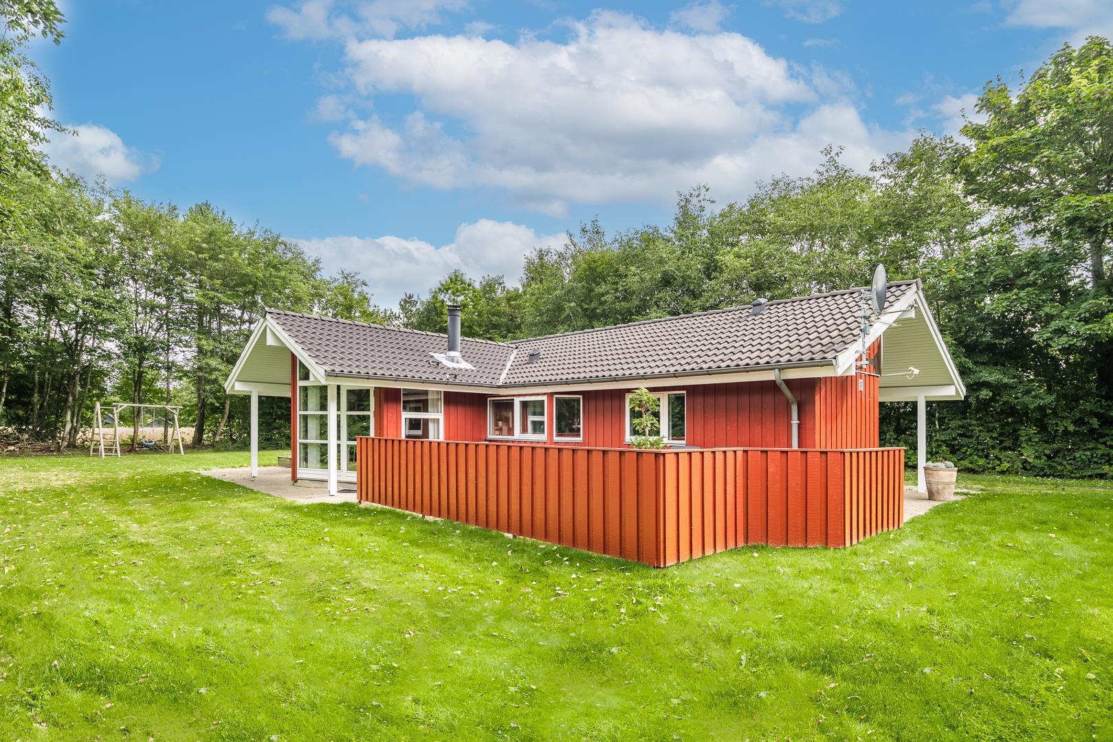 Das Ferienhaus liegt auf einem zurückgezogenen Grundstück in Jegum Ferieland – ideal, wenn du Privatsphäre und Natur liebst. Auf der überdachten Terrasse genießt du dein Frühstück in der Morgensonne oder den Abend beim Grillen mit deinen Liebsten.