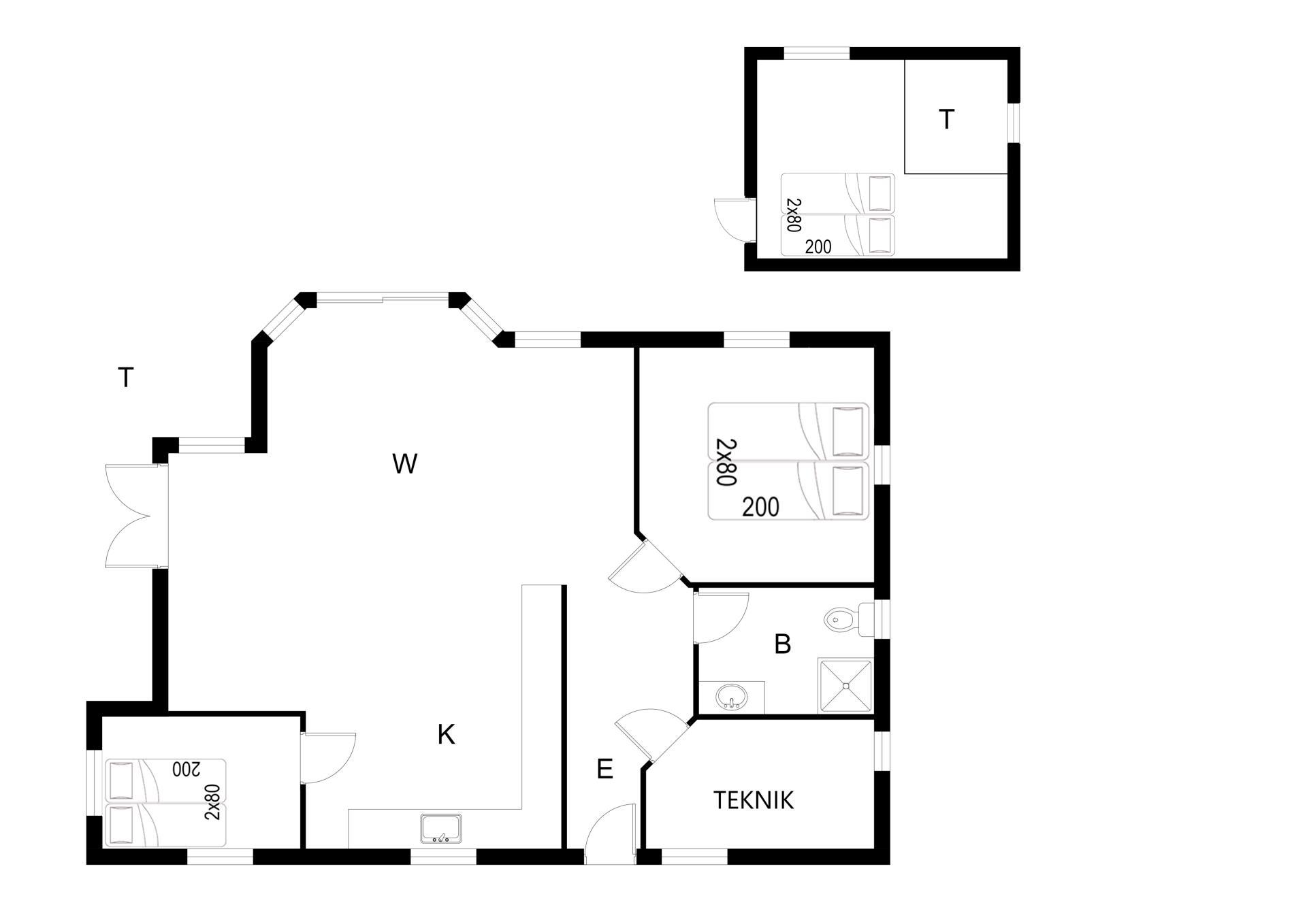 Sengestørrelse: 4 dobbeltsenge med madrasser på 80 x 200 cm.