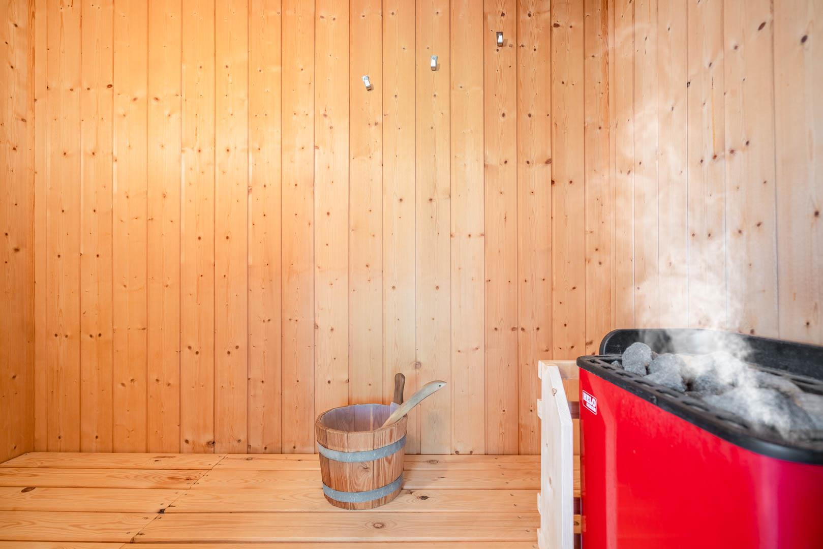 Med spa, sauna, brændeovn, vaskemaskine, tørretumbler og lukket terrasse er alt klar til en afslappende ferie for hele familien – inklusive jeres firbenede venner.