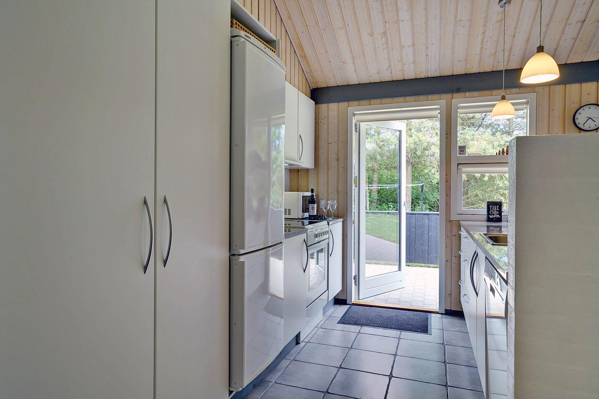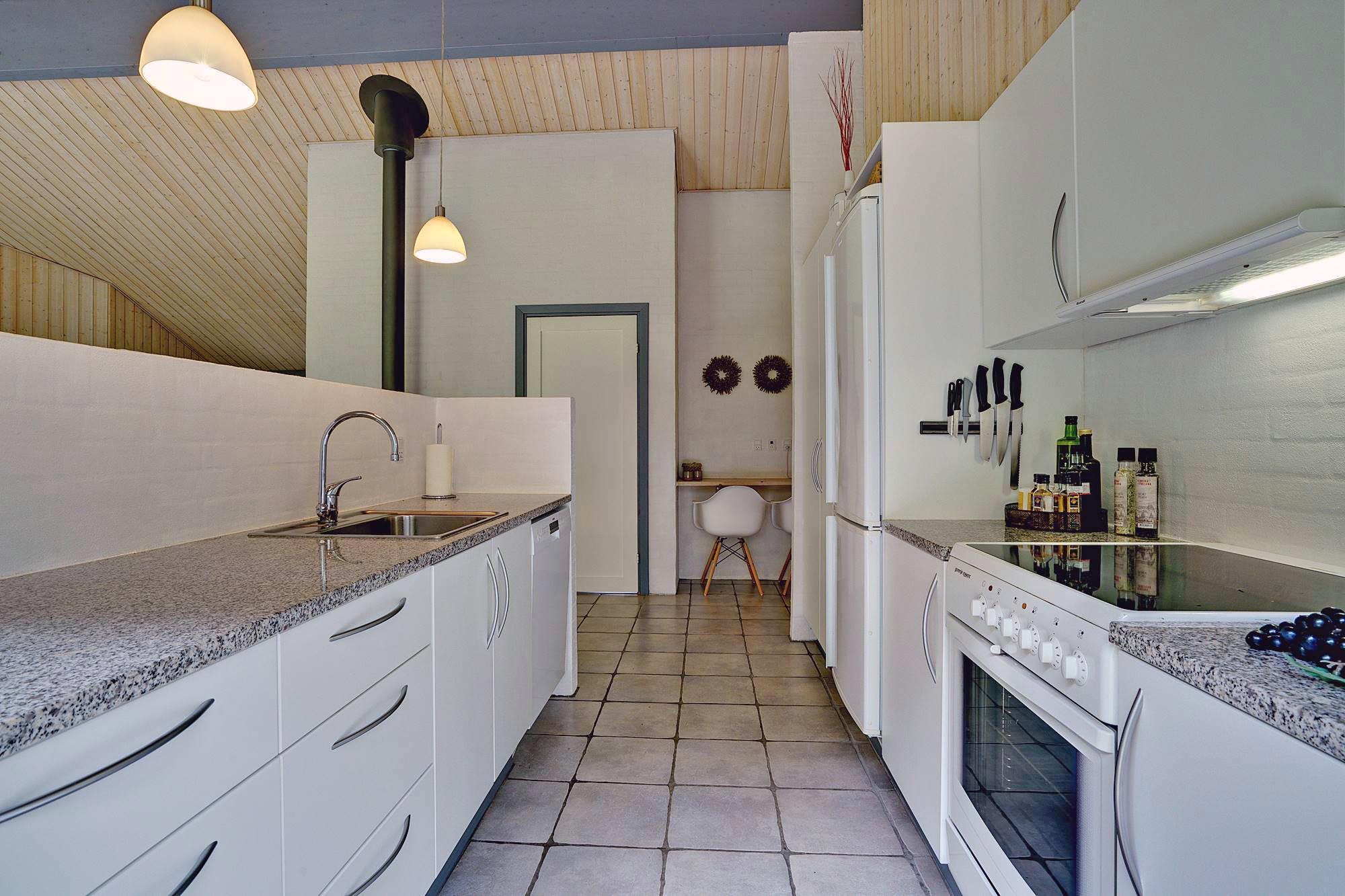 Det åbne køkken er moderne indrettet med opvaskemaskine og alt, hvad I behøver til madlavningen, og herfra er der direkte adgang til spisepladsen, hvor hele familien kan samles.