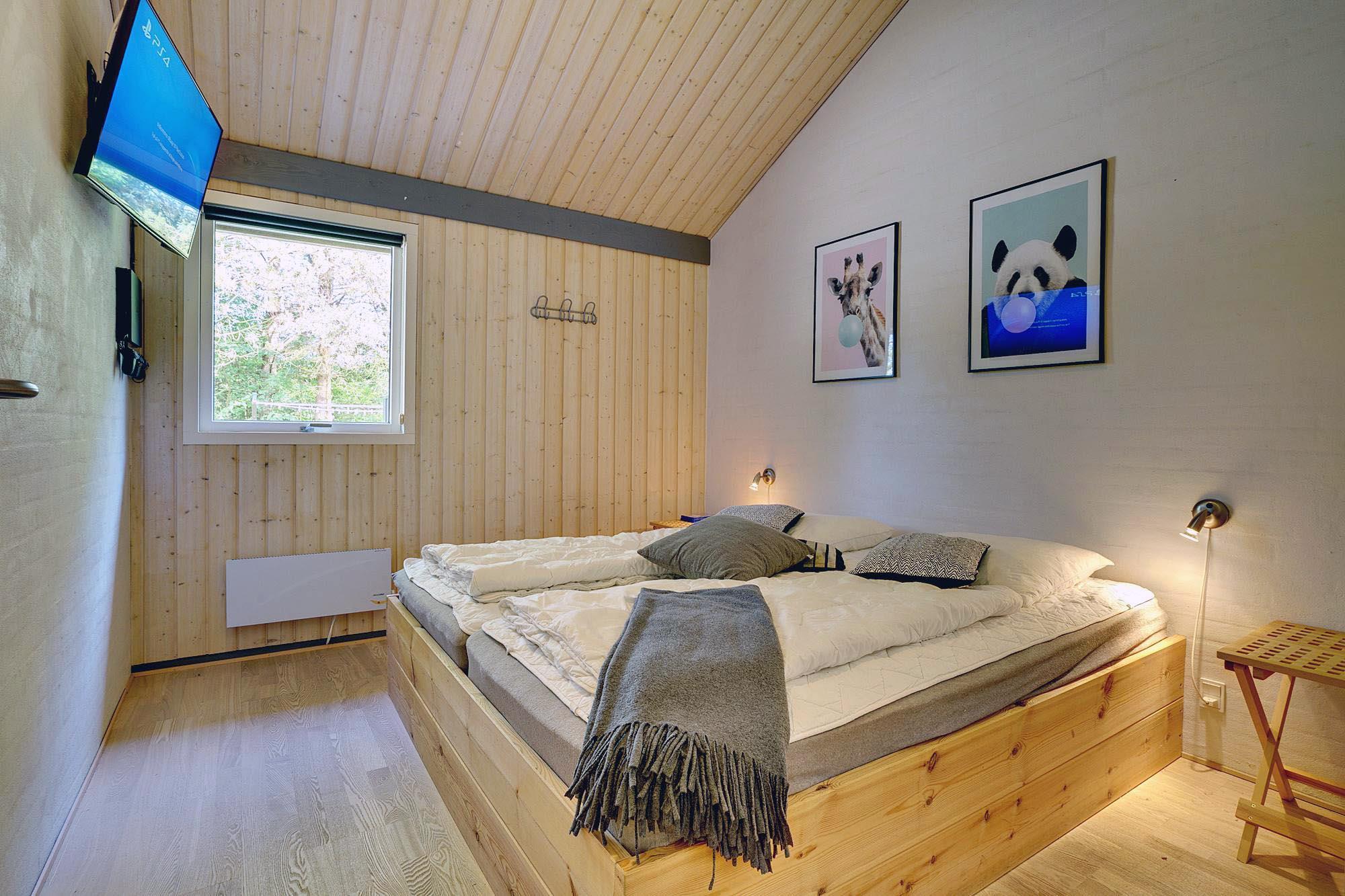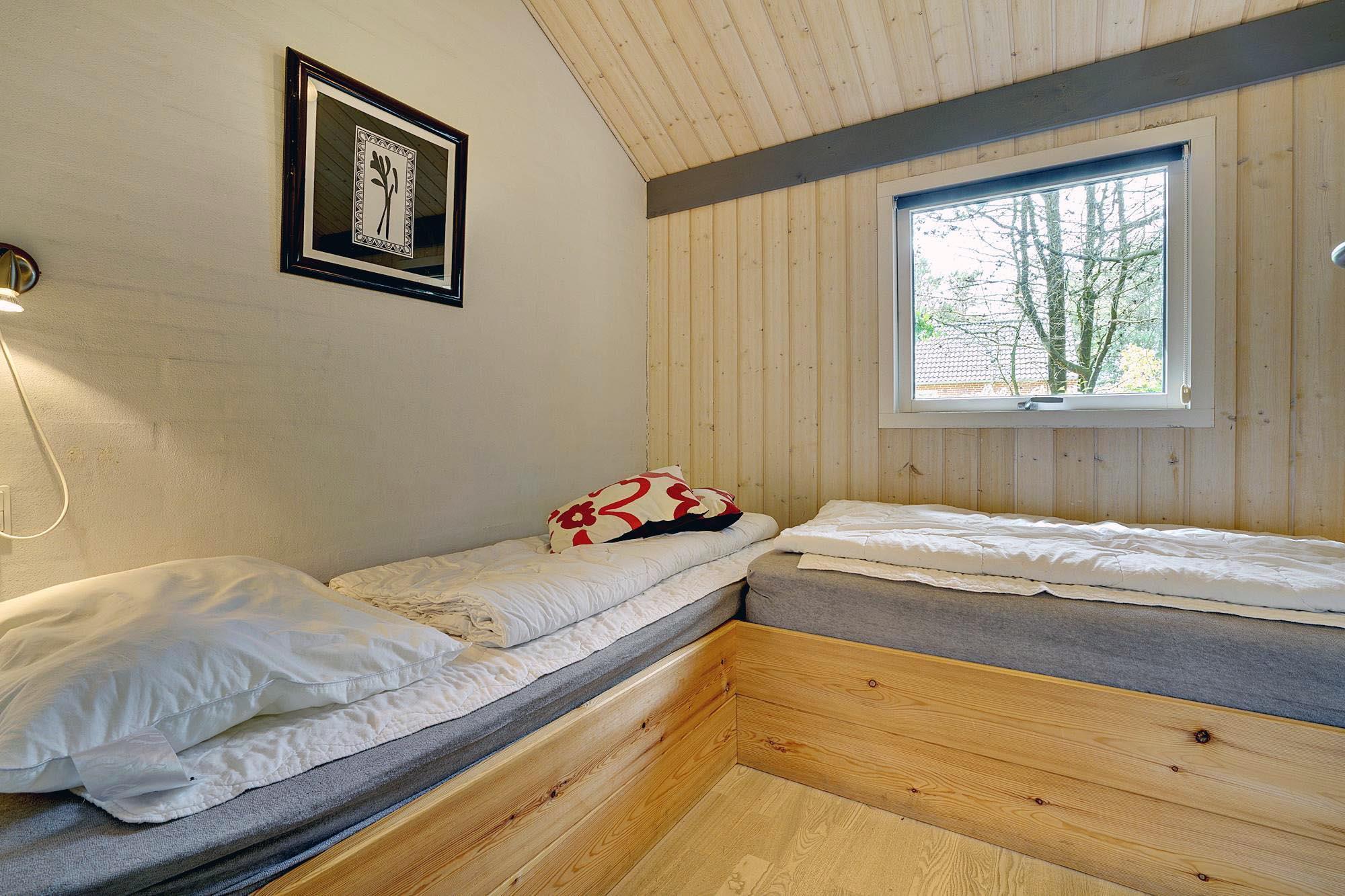 Sommerhuset rummer 4 soveværelser – tre med dobbeltsenge og ét med to enkeltsenge – så der er god plads og privatliv til alle.