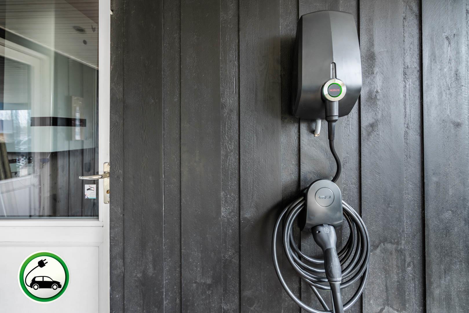 Der er carport til bilen, og kører I elbil, kan I oplade direkte ved huset via en Type-2-ladestander. Komfortabelt og bæredygtigt.