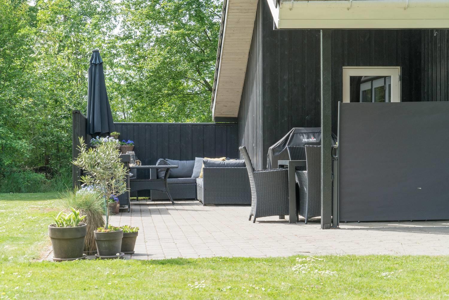 Udendørs byder sommerhuset på en skøn, aflukket have – ideel for familier med børn og hund. Den indhegnede grund giver tryghed, så hunden kan løbe frit, mens børnene leger. Der er både gynge og sandkasse, som hurtigt bliver centrum for mange sjove timer.