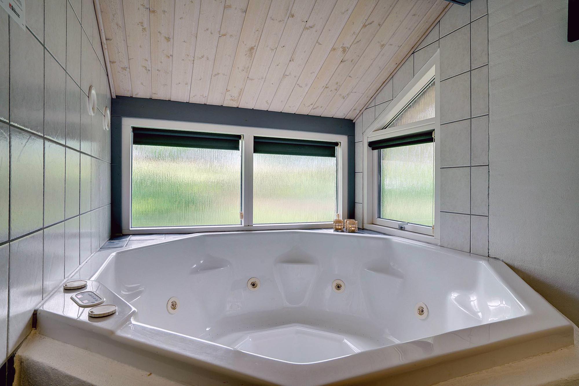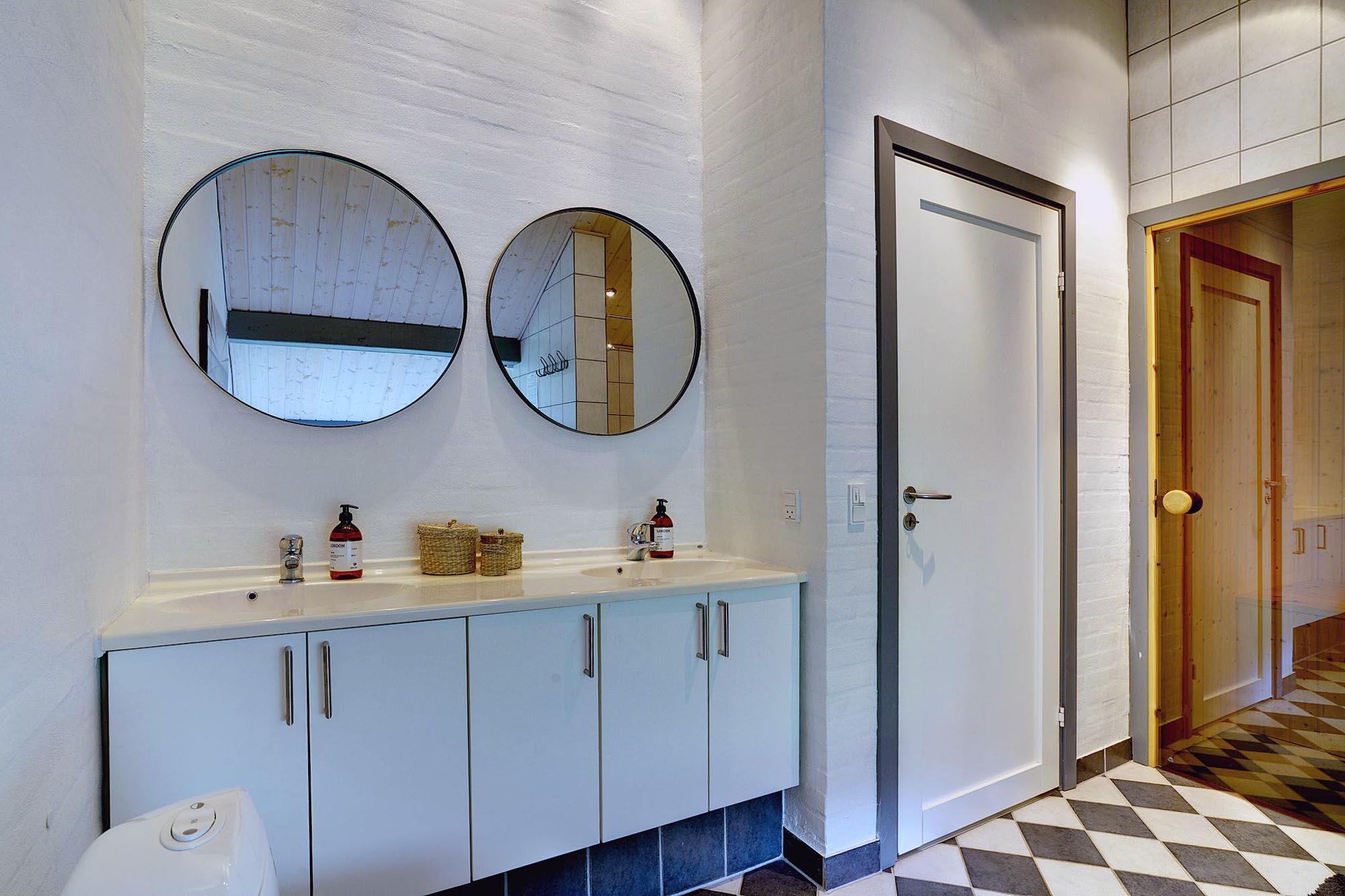 Et ekstra plus er de to badeværelser. I det største kan I slappe af i saunaen eller nyde en tur i spaen, mens gulvvarmen sørger for ekstra komfort.