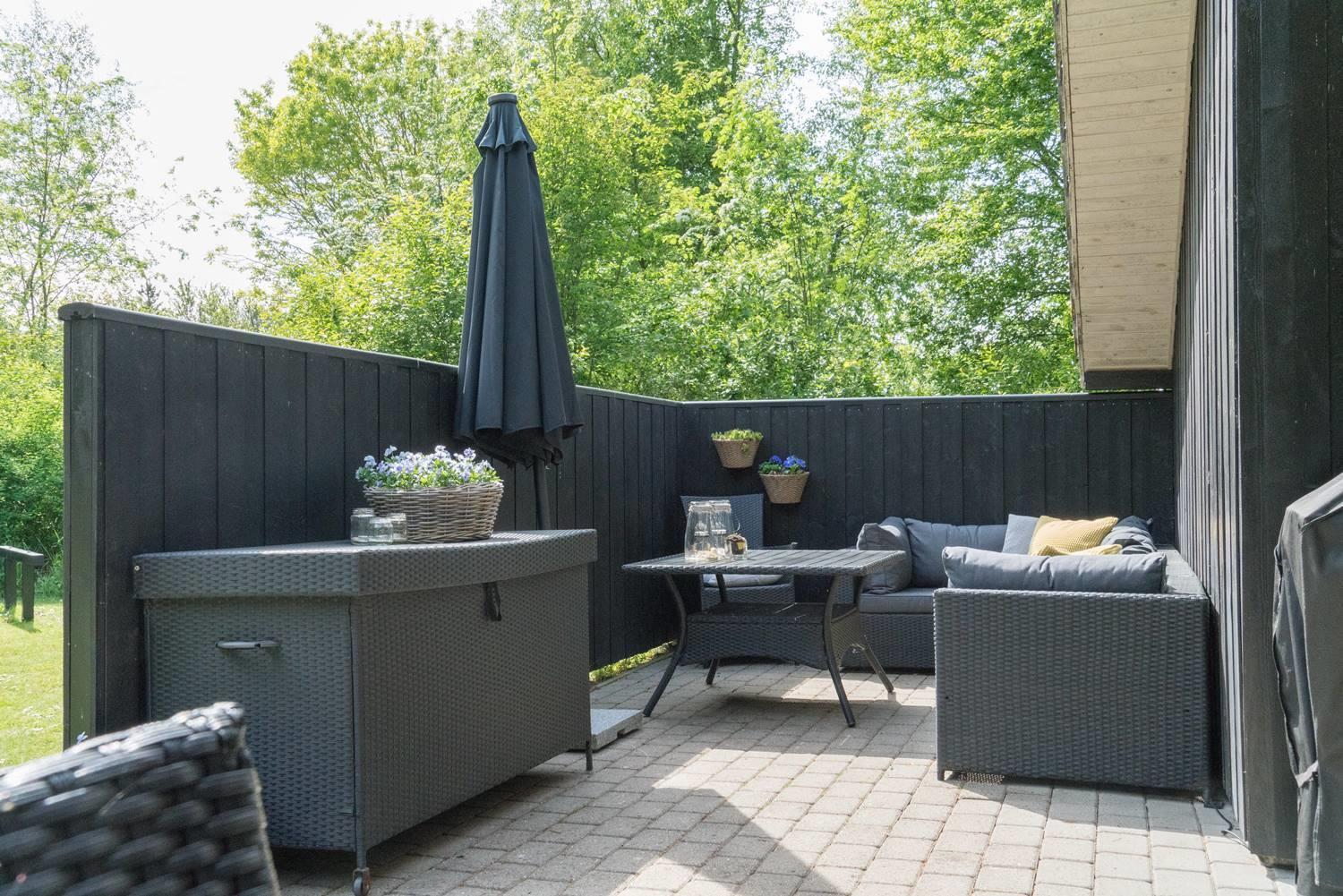 Den overdækkede terrasse inviterer til rolige stunder i det fri – hvad enten det er morgenkaffen i solen eller en hyggelig grillaften.