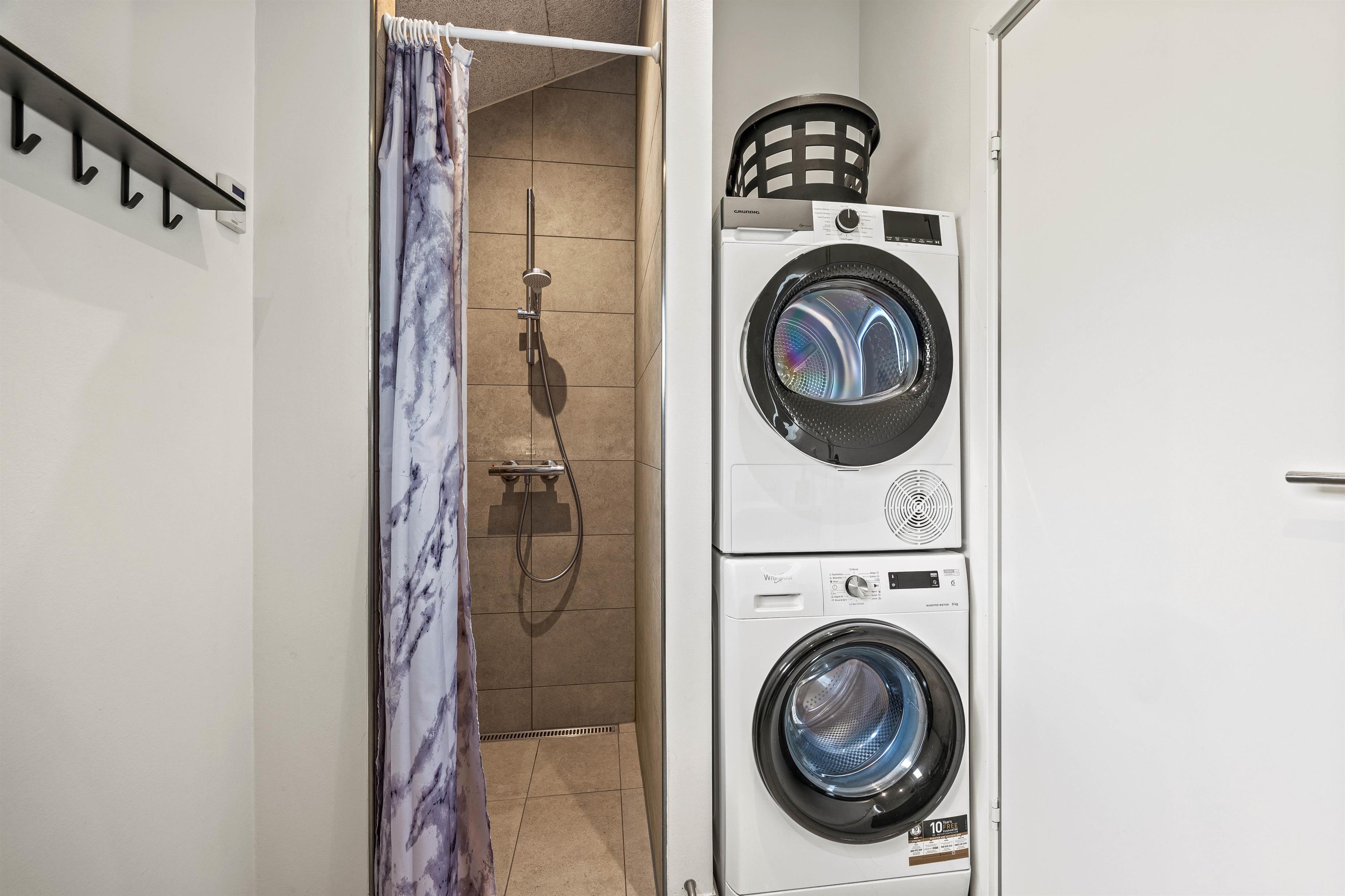 De 8 sovepladser er fordelt på de 4 soveværelser. Alle soveværelser er indrettet med indbyggende skabe til opbevaring og gode senge, så I kan få en god nattesøvn. Her er to badeværelser – begge med gulvvarme – på den måde undgår i kø om morgenen. Som et plus finder I her en vaskesøjle med vaskemaskine og tørretumbler. Her bliver tøjvasken til en leg og I har mulighed for at opfriske håndklæderne under opholdet.