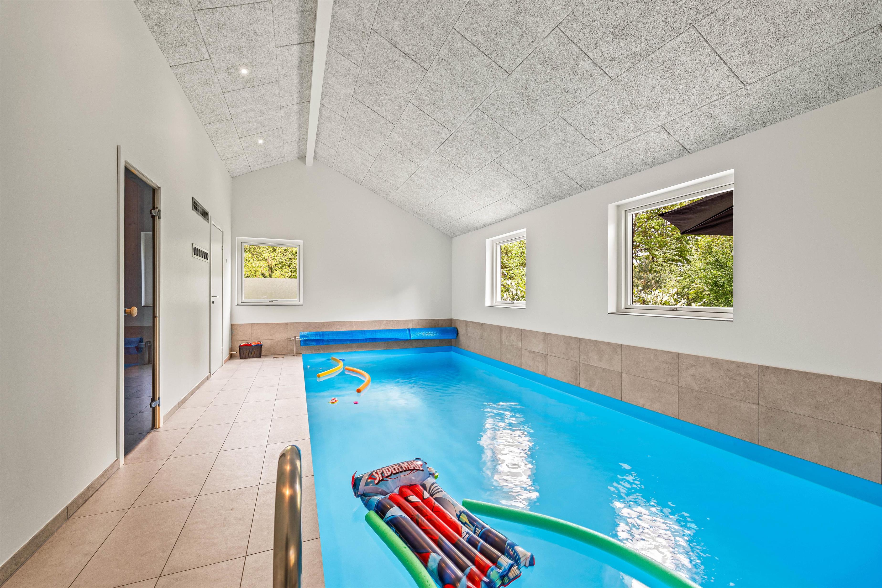 Sommerhuset på 161 m2 i Jegum Ferieland er ikke kun et sted at bo, men også et sted for leg og afslapning. Højdepunktet er poolrummet, der indeholder den 20 m2 store swimmingpool, et boblebad og den varme sauna. Her er der rig mulighed for afslapning, dykning og vandleg – et fantastisk sted uanset vejret. Aktivitetsrummet vil helt sikkert også blive nydt af alle feriegæster uanset alder, da her både er dart, airhockey og en arkademaskine. Her kan I spille om opvasken eller sætte ny high score.