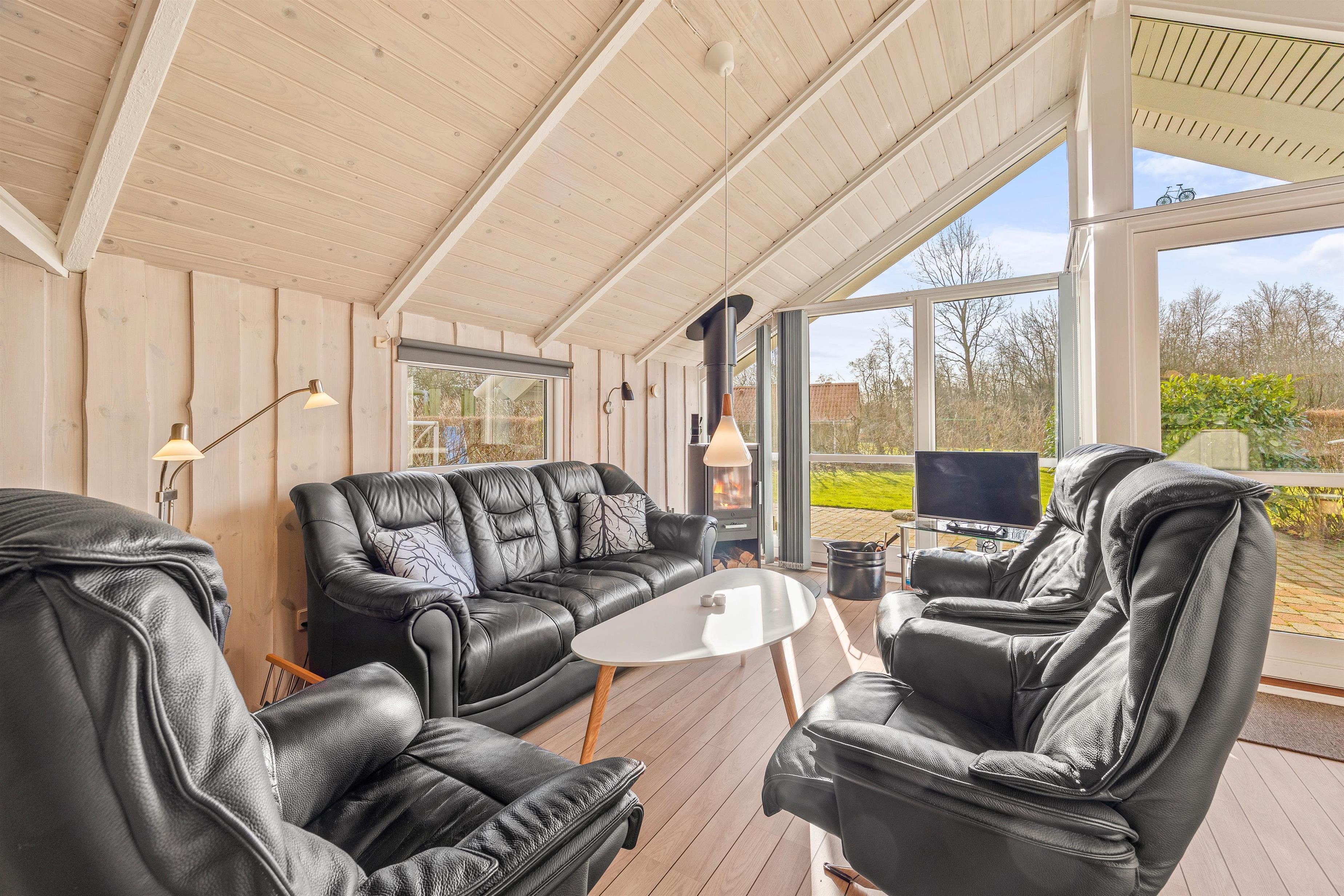 Det dejlige feriehus har en hyggelig opholdsstue, hvor I kan hygge jer i hinandens selskab – måske med et sjovt brætspil. Brændeovnen skaber en særlig hyggelig feriestemning med ildens knitren. I kan også bruge den energibesparende varmepumpe til at holde en behagelig temperatur i sommerhuset.