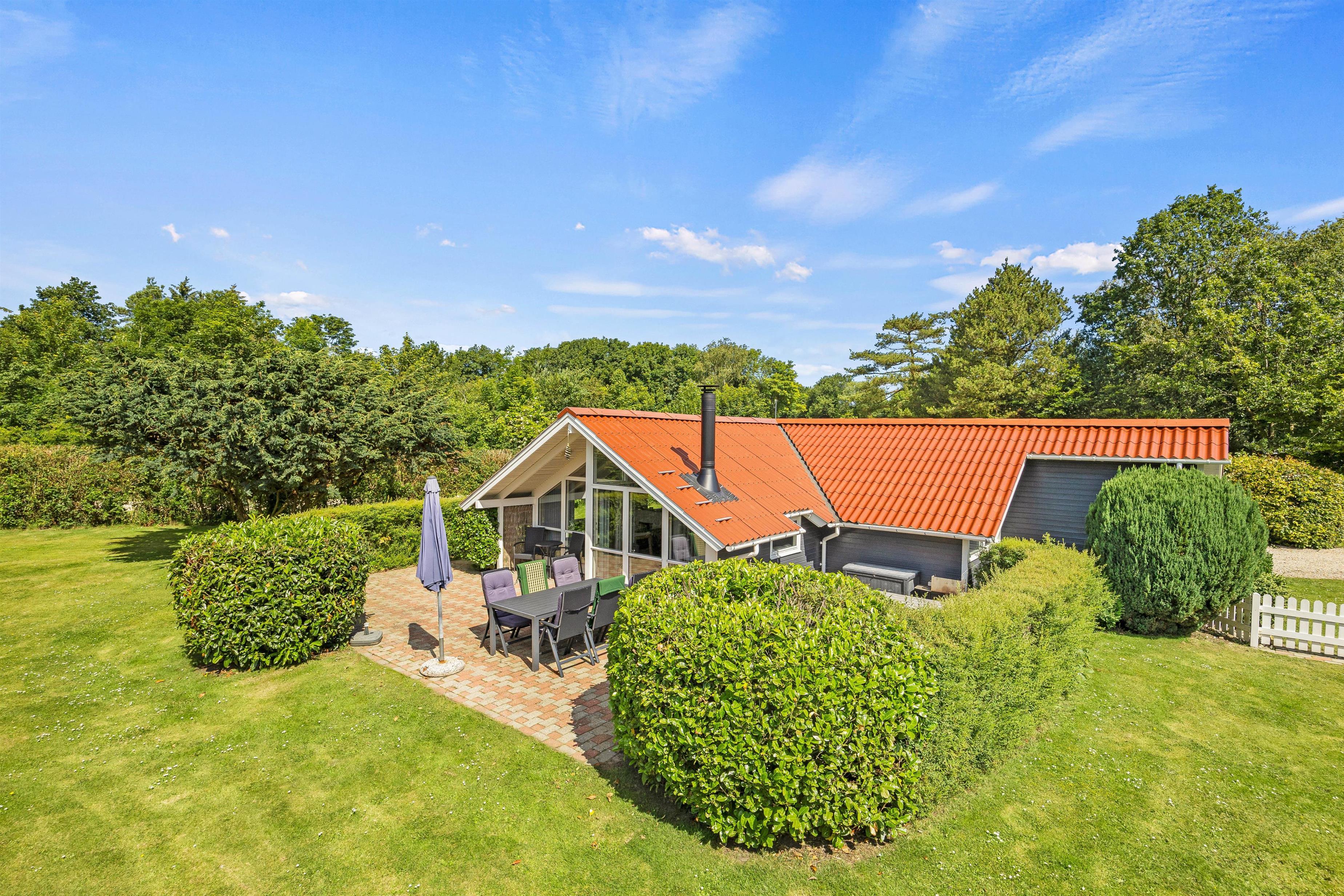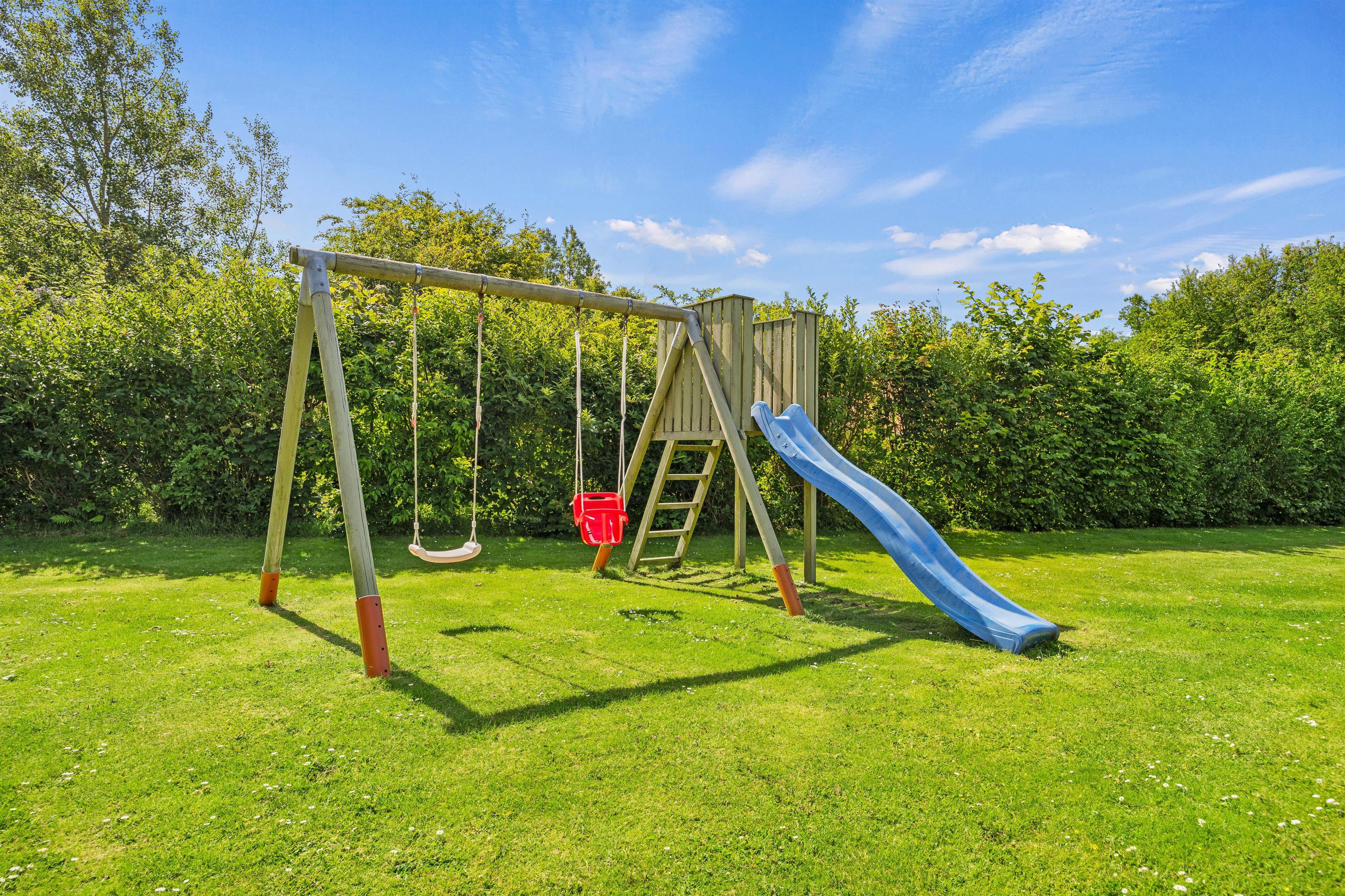 Sommerhuset ligger på en fin plænegrund med god plads til sjov og leg. Til familiens yngste er der en gynge og en sandkasse, hvor de kan tilbringe timevis med kreativ leg og aktivitet. Sommerhusets terrasse er delvist overdækket og afskærmet, hvilket giver jer mulighed for at nyde udelivet i al slags vejr. Her står havemøbler, liggestole og grill klar til jer, så I kan indrette den perfekte afslapningszone.
