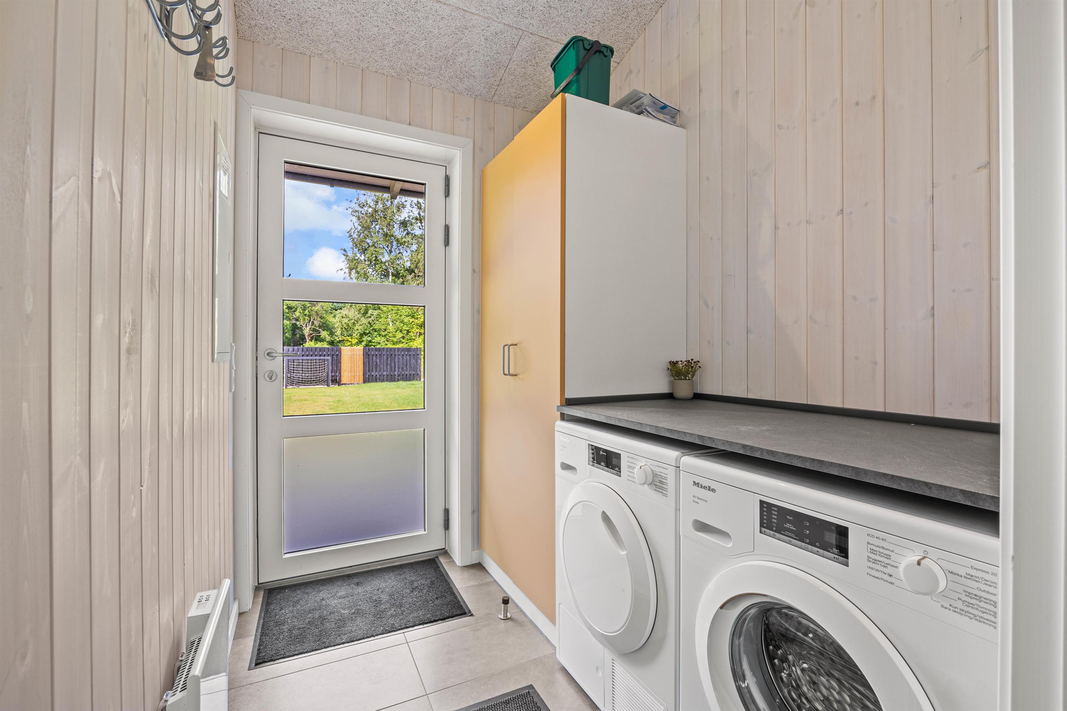 For at gøre jeres ophold så nemt og behageligt som muligt, er sommerhuset i Jegum Ferieland udstyret med alle de moderne faciliteter, I kunne få brug for. En opvaskemaskine og vaskefaciliteter, inklusive både vaskemaskine og tørretumbler, er til rådighed, så I kan bruge tiden på at nyde ferien frem for huslige pligter. Elbilsejere vil sætte pris på det tilgængelige ladestik, som sikrer nem opladning af køretøjet. Med en indkøbsafstand på kun 100 meter til kiosken i Centerbygningen kan I nemt få fat i hverdagens fornødenheder og indtage dagens måltider i de naturskønne omgivelser.