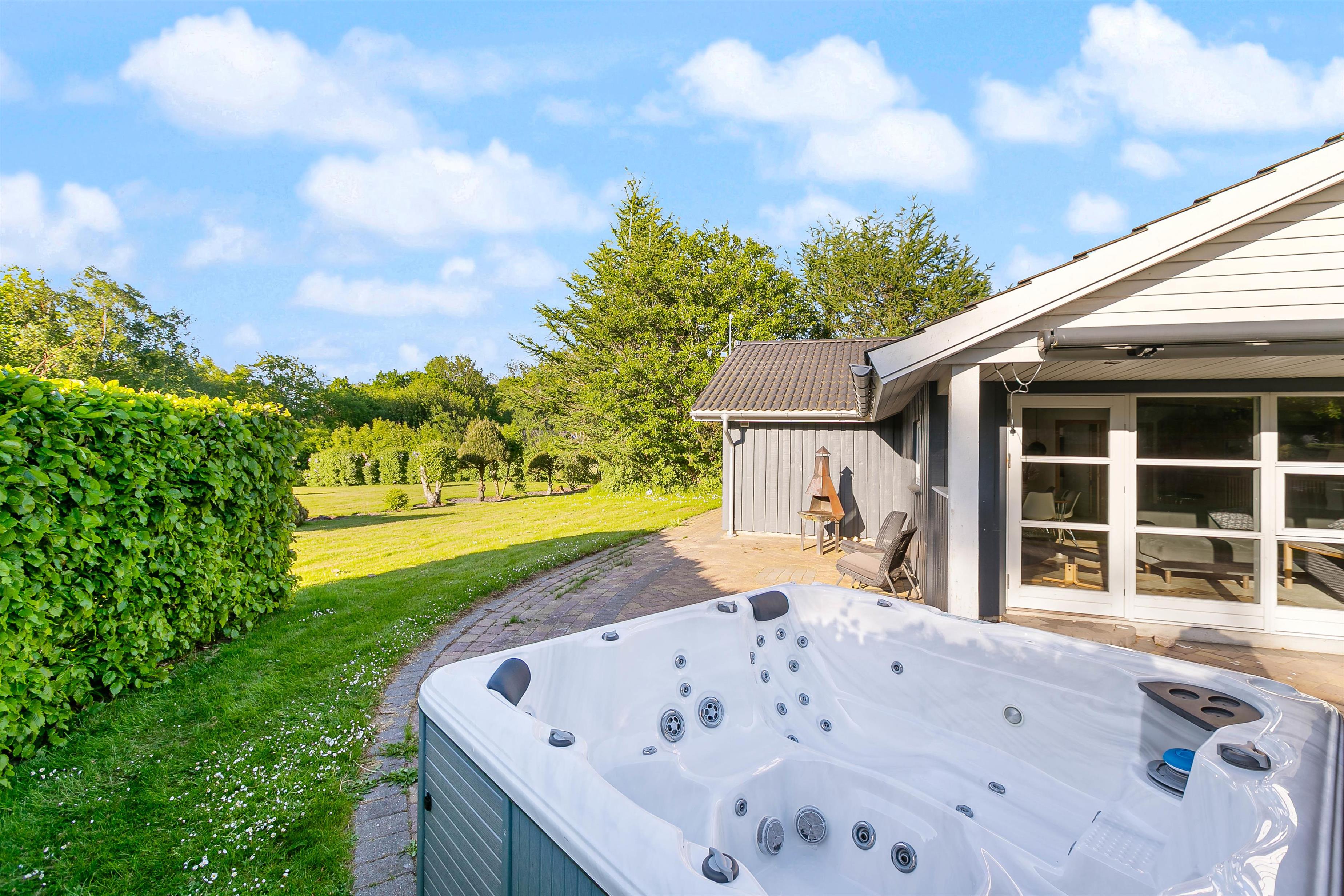 Når børnene er lagt i seng, kan de voksne hoppe i den udendørs spa og give slip på al stress, mens I nyder et koldt glas vin eller øl under stjernehimlen. Så bliver ferien ikke meget bedre.