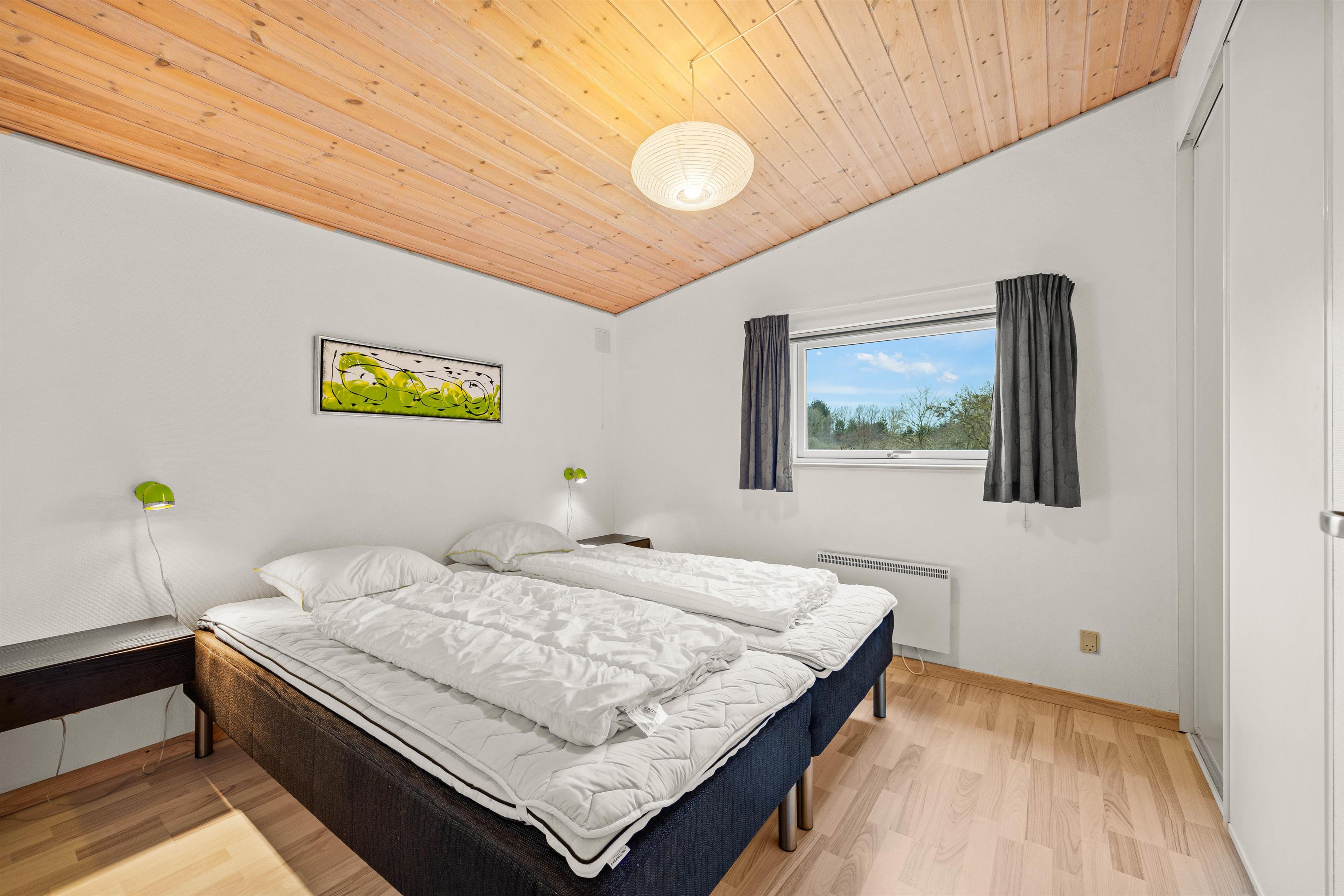 I dette hyggelige sommerhus, som gennemgik en stor renovering i 2020, står ferien på ren afslapning og nærvær med dem, du holder af. Op til 8 feriegæster kan nyde et velfortjent afbræk fra hverdagen i rolige omgivelser. Der er 3 soverum med dobbeltseng i dem alle, samt en alkove, som I kan tilgå fra stuen. Et af værelserne har også en ekstra enkeltseng. Mellem alle værelserne er der badeværelser med gulvvarme, hvoraf det ene er udstyret med både sauna og spabad, så I rigtig kan blive varmet igennem og komme ned i gear.