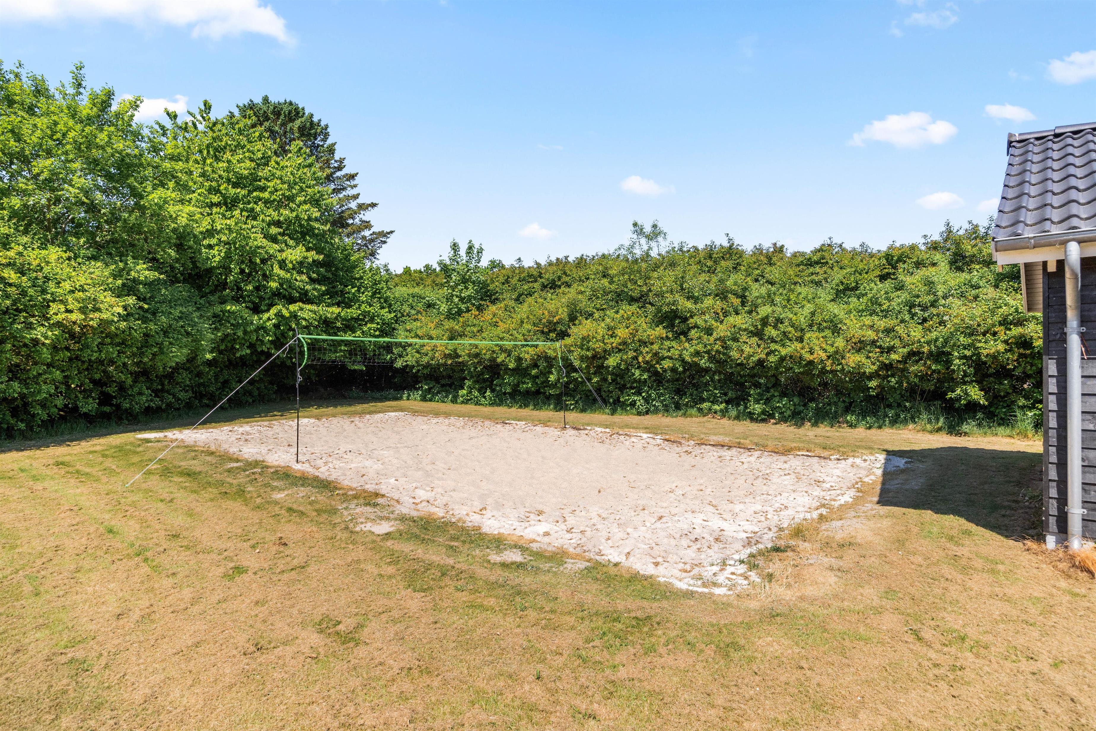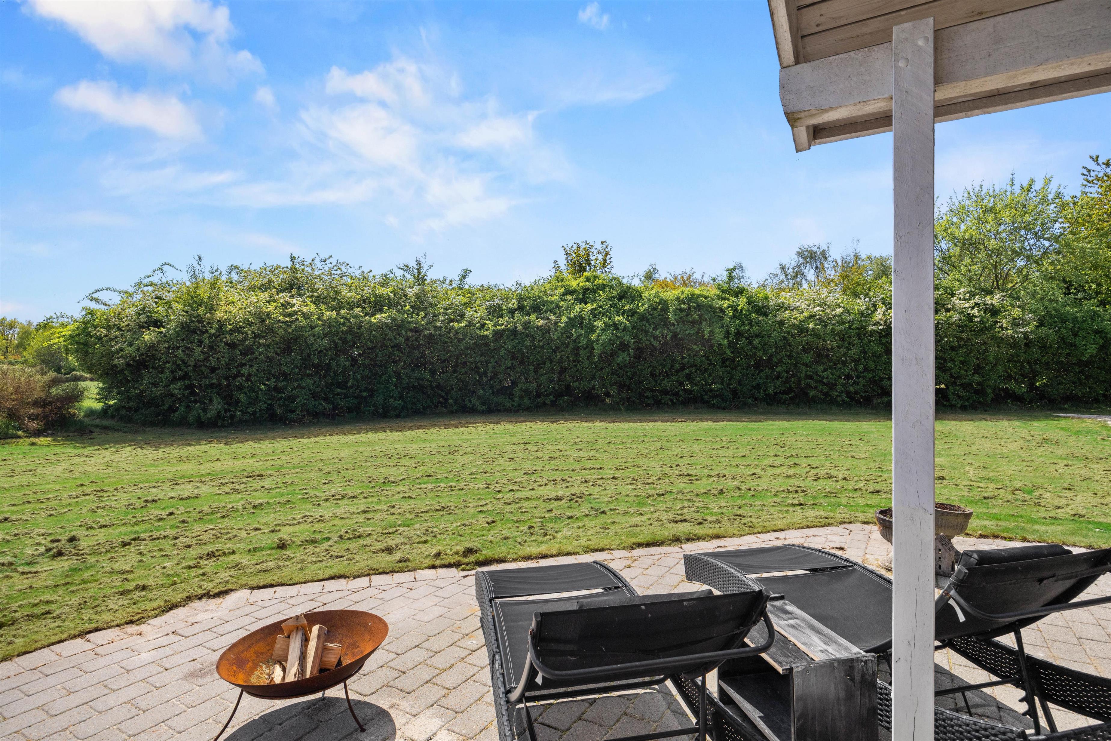 Carporten, der har direkte forbindelse til huset, sørger for, at bilen er beskyttet mod vejrets luner, og i redskabsrummet finder I plads til opbevaring af alt fra cykler til strandudstyr. Dette udemiljø skaber en skøn ramme for aktiviteter og afslapning, som gør ferien i sommerhuset til noget ganske særligt.