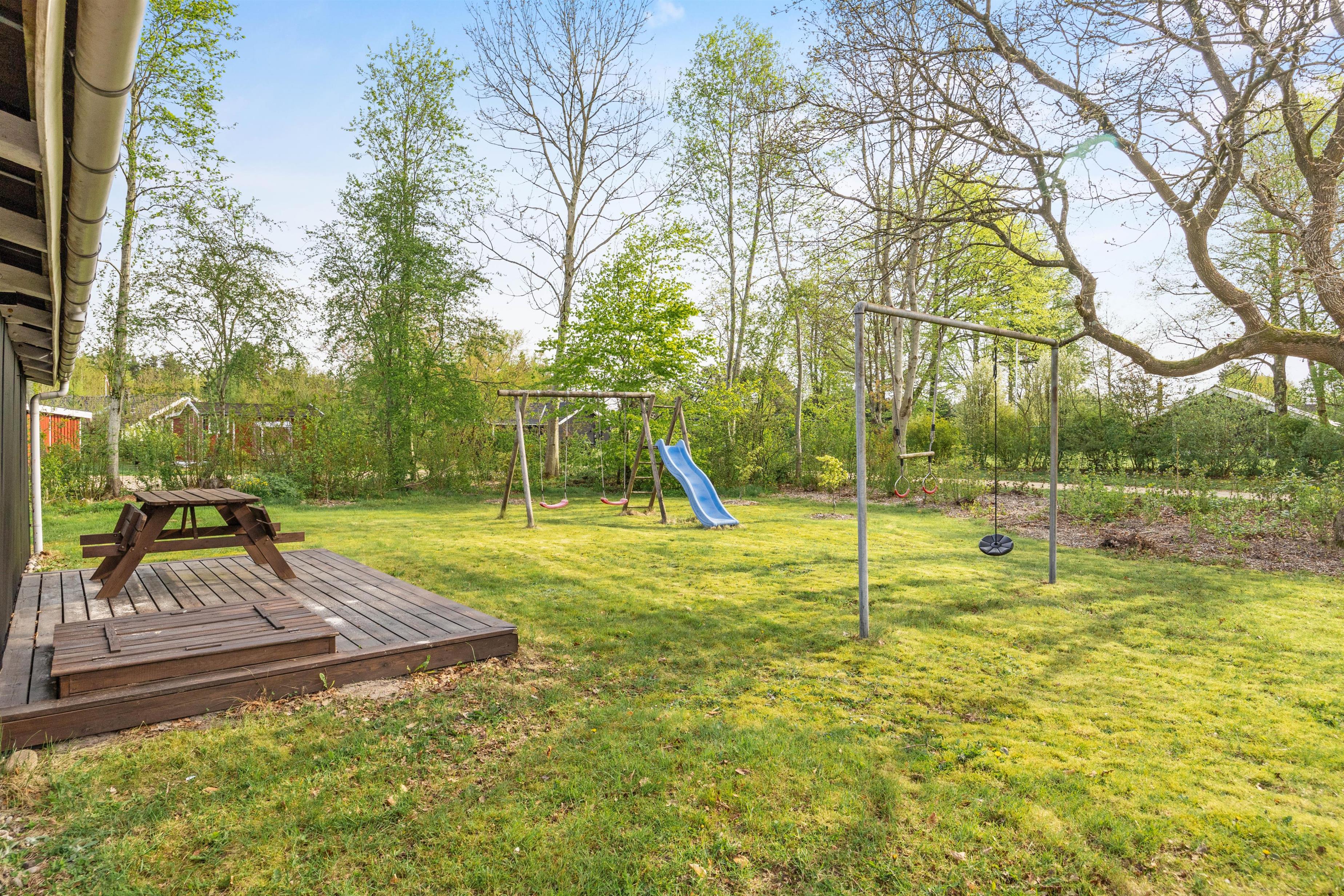 Ferieboligen er placeret på en rummelig 1700 kvadratmeter stor plænegrund, omkranset af træer, der indbyder til diverse leg og boldspil under solens stråler. Til udendørs hygge og afslapning er sommerhuset fuldt udstyret med en grill, komfortable havemøbler, en solvogn og en parasol, så I kan nyde det danske sommervejr.