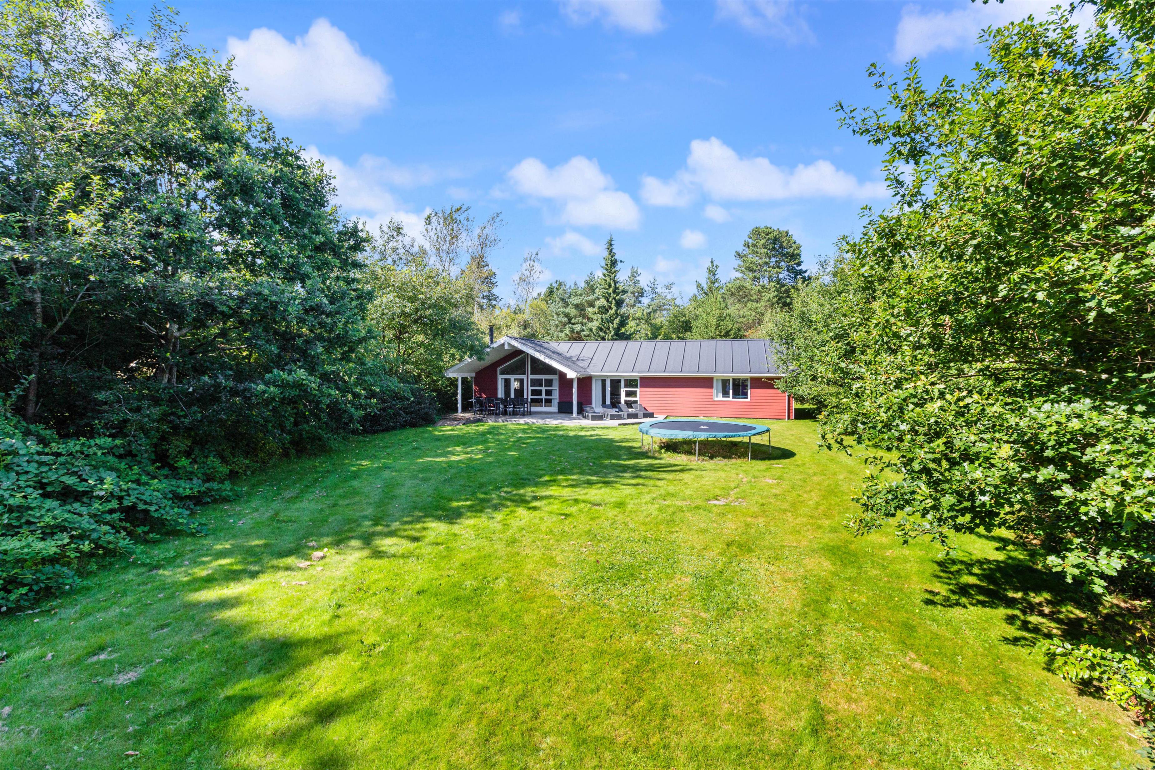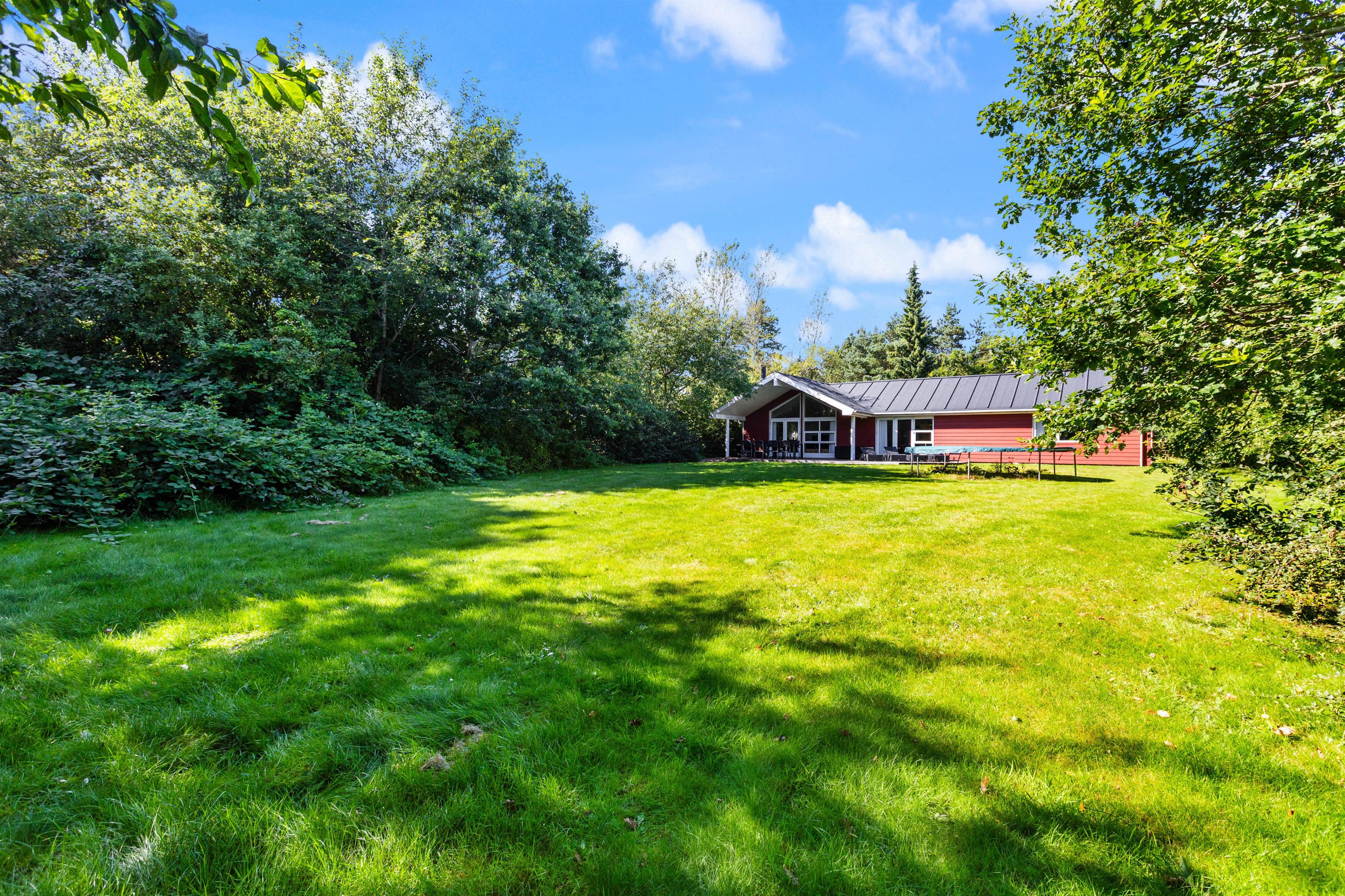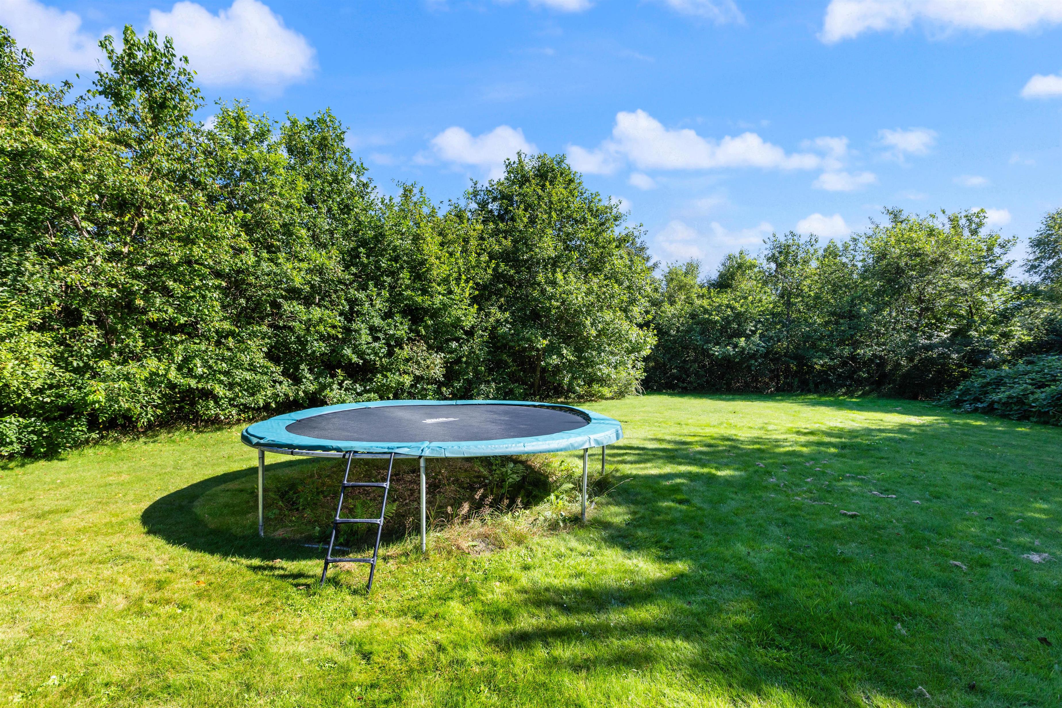 For børnene byder haven på masser af underholdning med en trampolin og en sandkasse, der inviterer til kreativ leg. Den store plænegrund giver rig mulighed for spil og leg for både børn og voksne, så hele familien kan nyde de mange udendørs aktiviteter sammen.